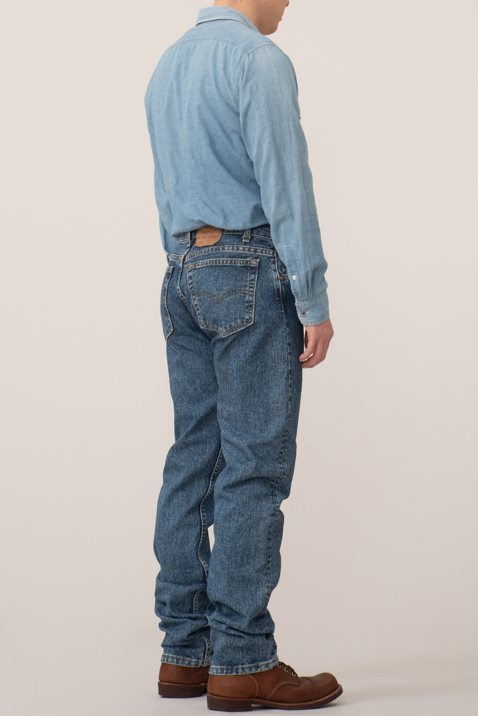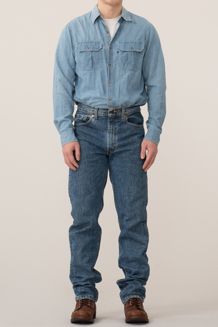 - 90 년대 생산 된 505 미제 팬츠입니다. 약간 돌청 느낌 나듯 스톤 워시가 전체적으로 가미 된 제품입니다. 레드탭이 제거 되었는데, 그것 말곤 전체적으로 깔끔한 컨디션이에요.