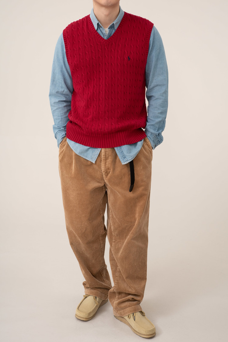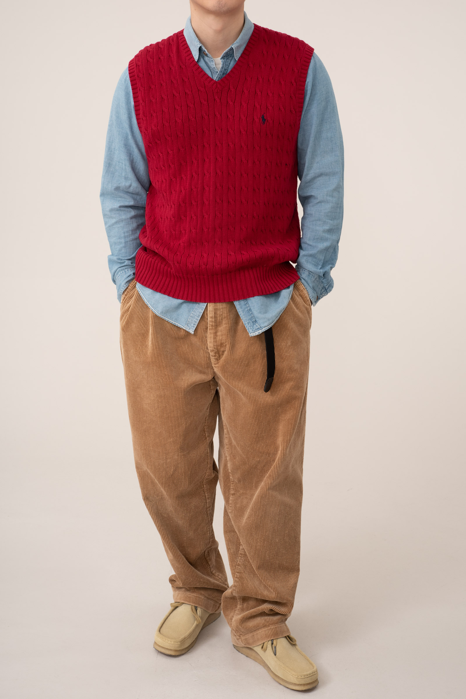 - 폴로 랄프로렌의 빨간색 코튼 브이넥 베스트입니다. 물빠짐과 사용감이 있으며 포니 로고 아래로 원단이 살짝 풀린 부분이 있습니다. 수선하여 발송하겠으나 티는 날거에요.