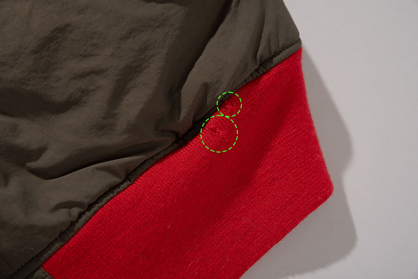 - 오른팔 손목 살짝 위로 원단의 작은 대미지와 소매와 허리 시보리의 크고 작게 수선 된 부분이 있습니다. 100 정도 입는 분이 착용하시면 사이즈 딱 좋겠네요.