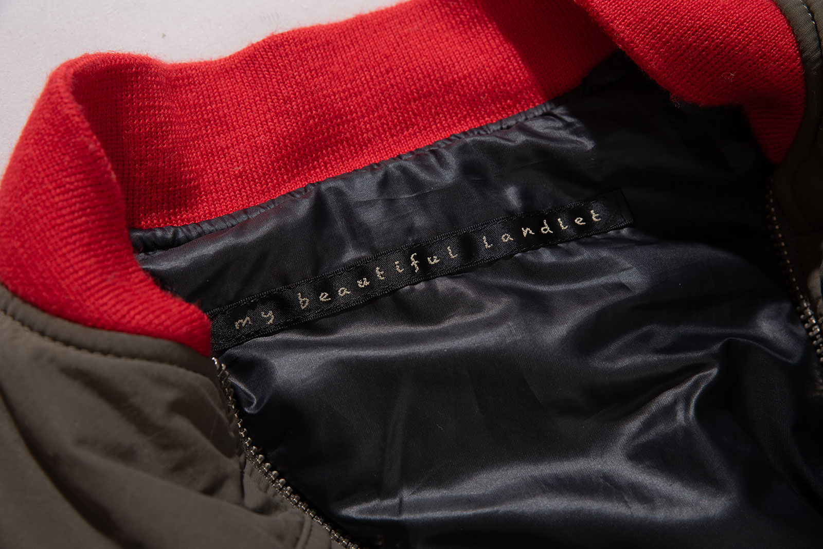 - 오사카에서 시작 된 일본 디자이너 브랜드 마이 뷰티풀 랜들렛의 16AW MA-1 재킷입니다. 발매가 120 만원대의 제품으로, 소재와 텍스쳐가 상당히 고급스러운 제품입니다. 국내엔 거의 듣보급입니다만.. 신박한 디자인과 재미있는 소재의 매칭으로 일본 내에선 많은 매니아를 거느린 인지도 높은 브랜드입니다.