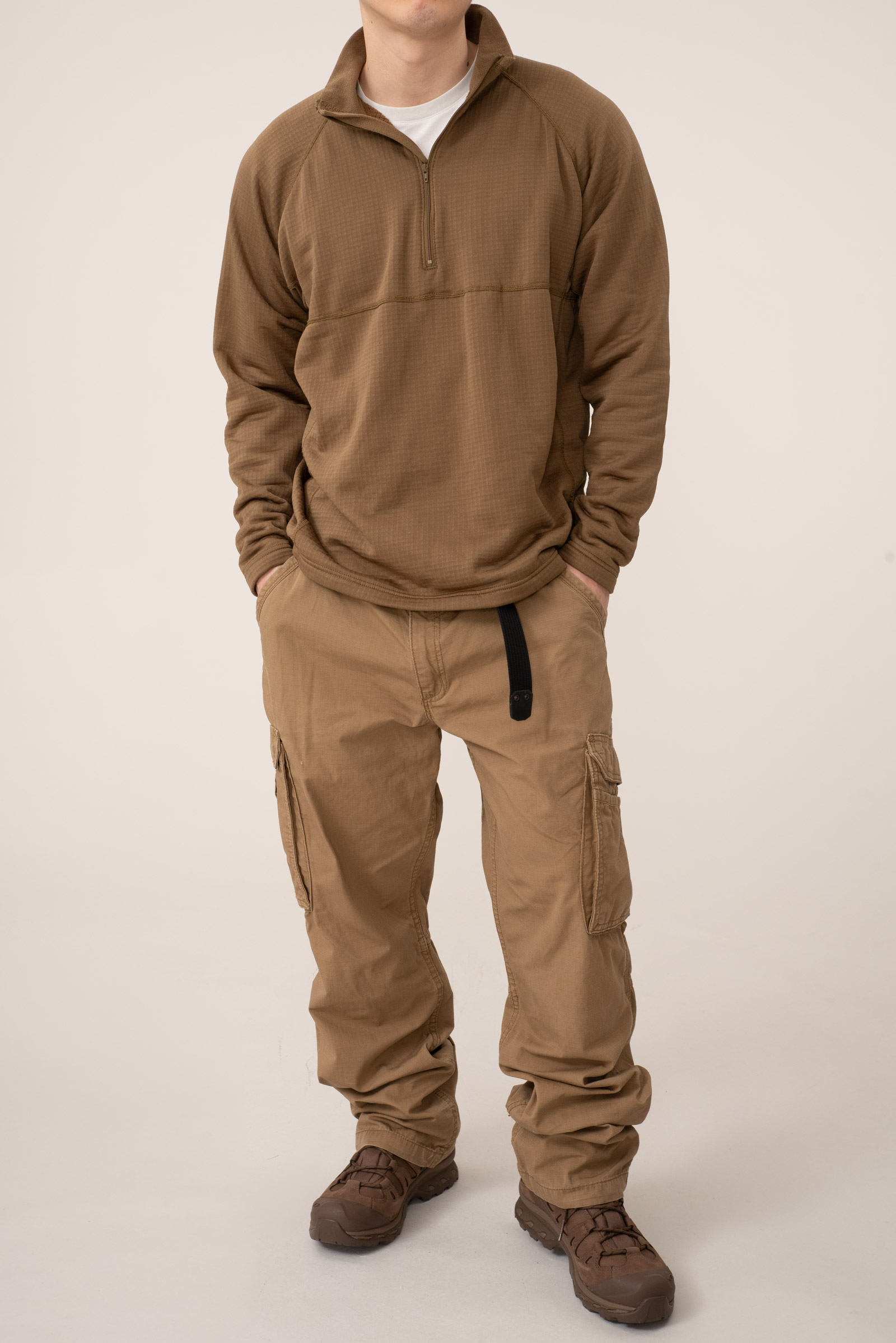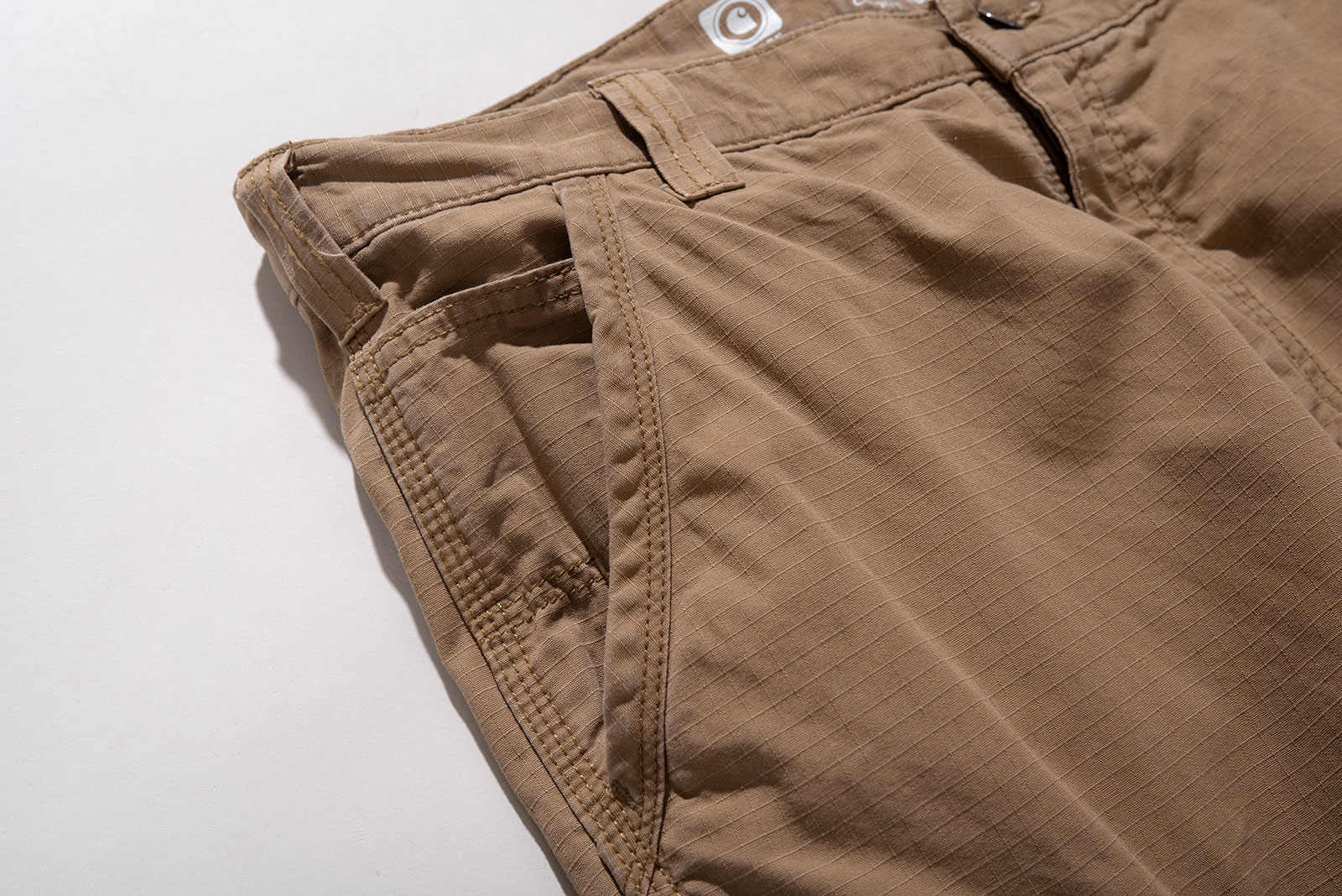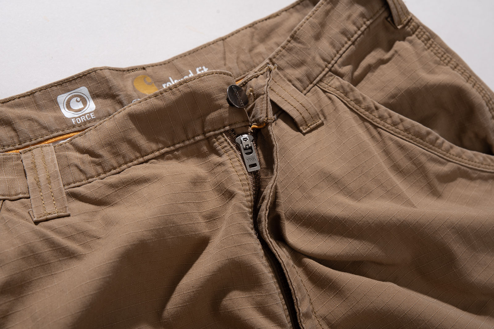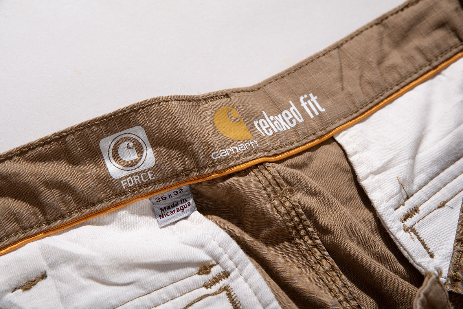 - 칼하트의 코요테 컬러 포스 전술 팬츠입니다. 가볍고 내구성좋은 립스탑 원단으로 제작된 제품입니다. 전반적으로 오염이 자잘하게 있습니다. 사이즈도 상당히 박력있죠.