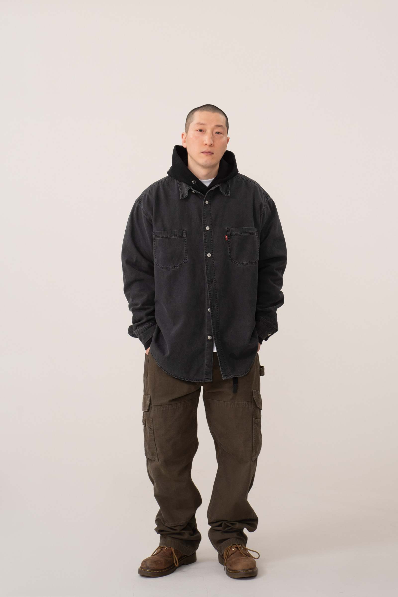 기재 사이즈가 나와 맞다 하여도 모델과 같은 실루엣이 연출되진 않습니다.