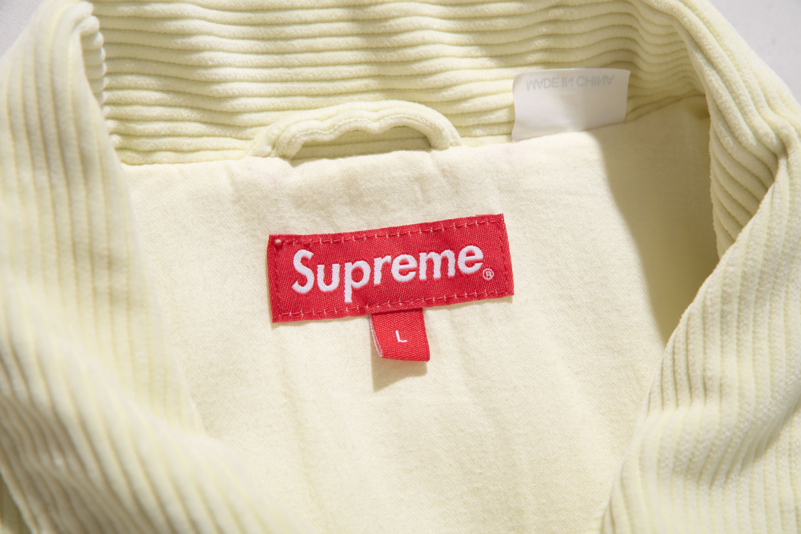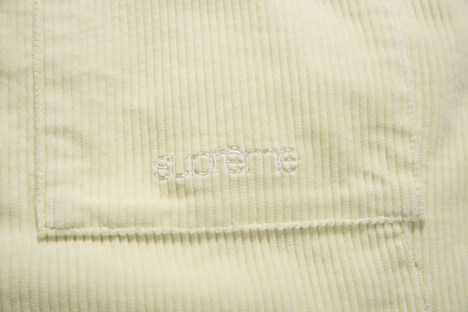 - 21fw 슈프림 코듀로이 집 재킷입니다. 무채색 사이에서 자체발광 할 수 있는 아주 튀는 제품입니다. 전체적으로 깔끔한 컨디션으로 입고 되었습니다. 표기 라지로, 국내 105 정도의 사이즈 감입니다. 실측 비교 후 구매부탁드려요~