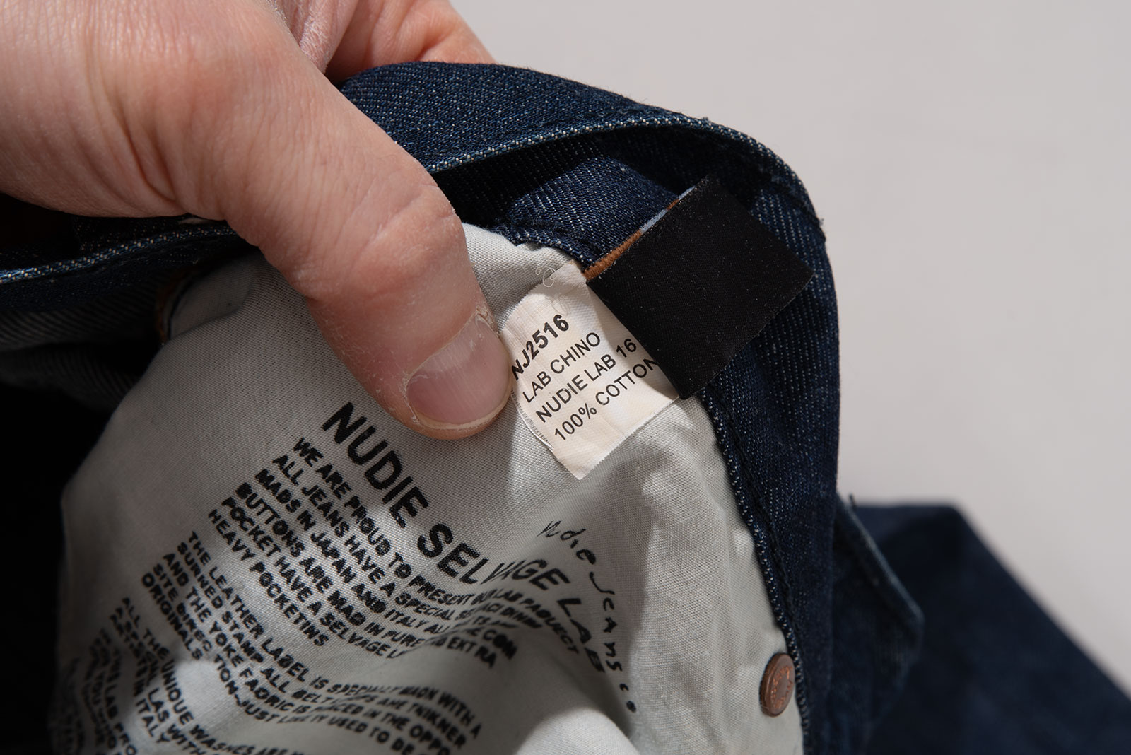 - 리바이스에 LVC가 있다면, 누디진엔 셀비지 랩이 있습니다. 샘플로만 만나볼 수 있는 누디진의 하이앤드 시리즈로, LAB에서 제작되는 데님은 셀비지 원단을 기본으로 합니다. 일반적인 생산 구조를 따르지 않아 모델 하나하나에서 짙은 개성과 실험 정신을 느낄 수 있습니다.