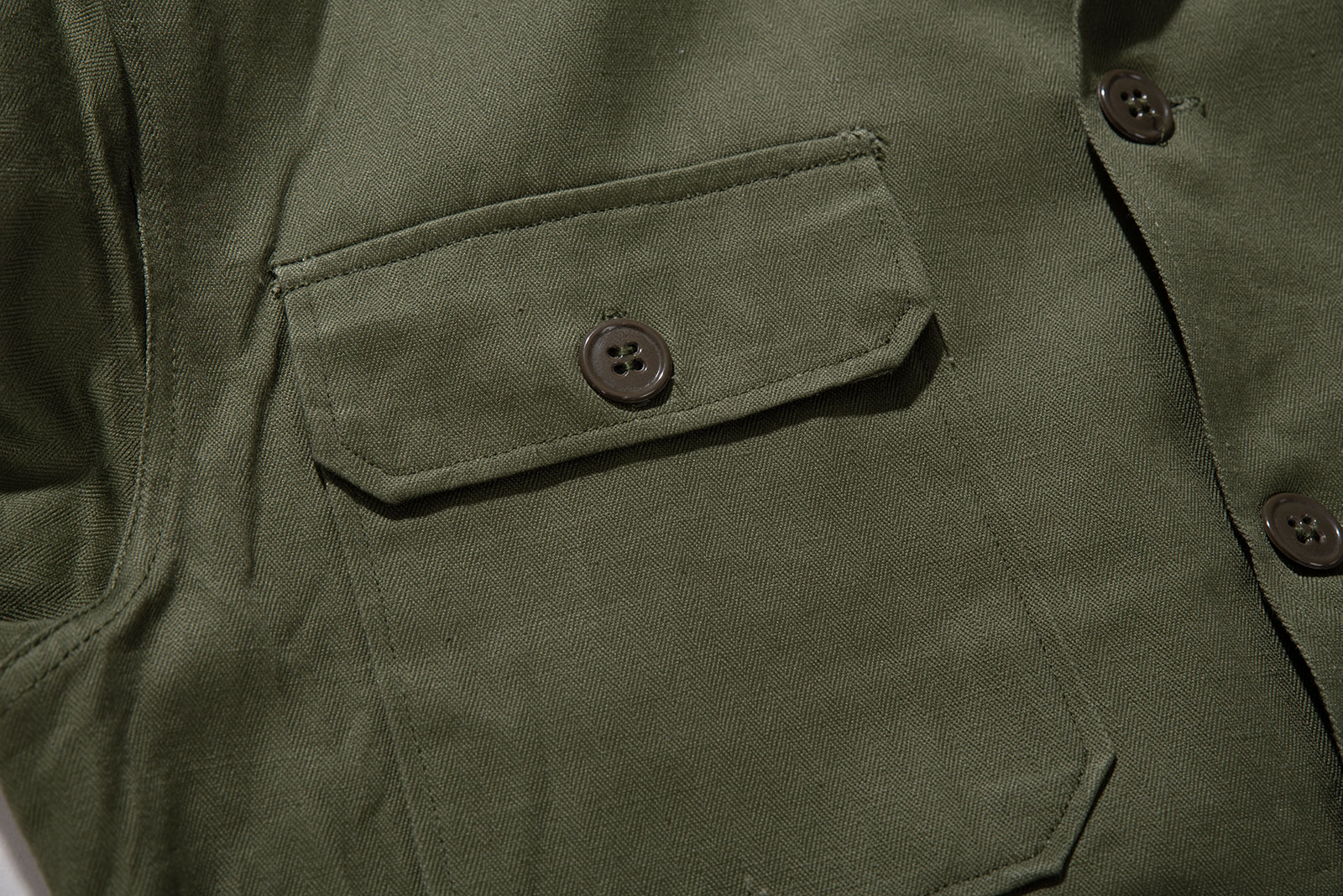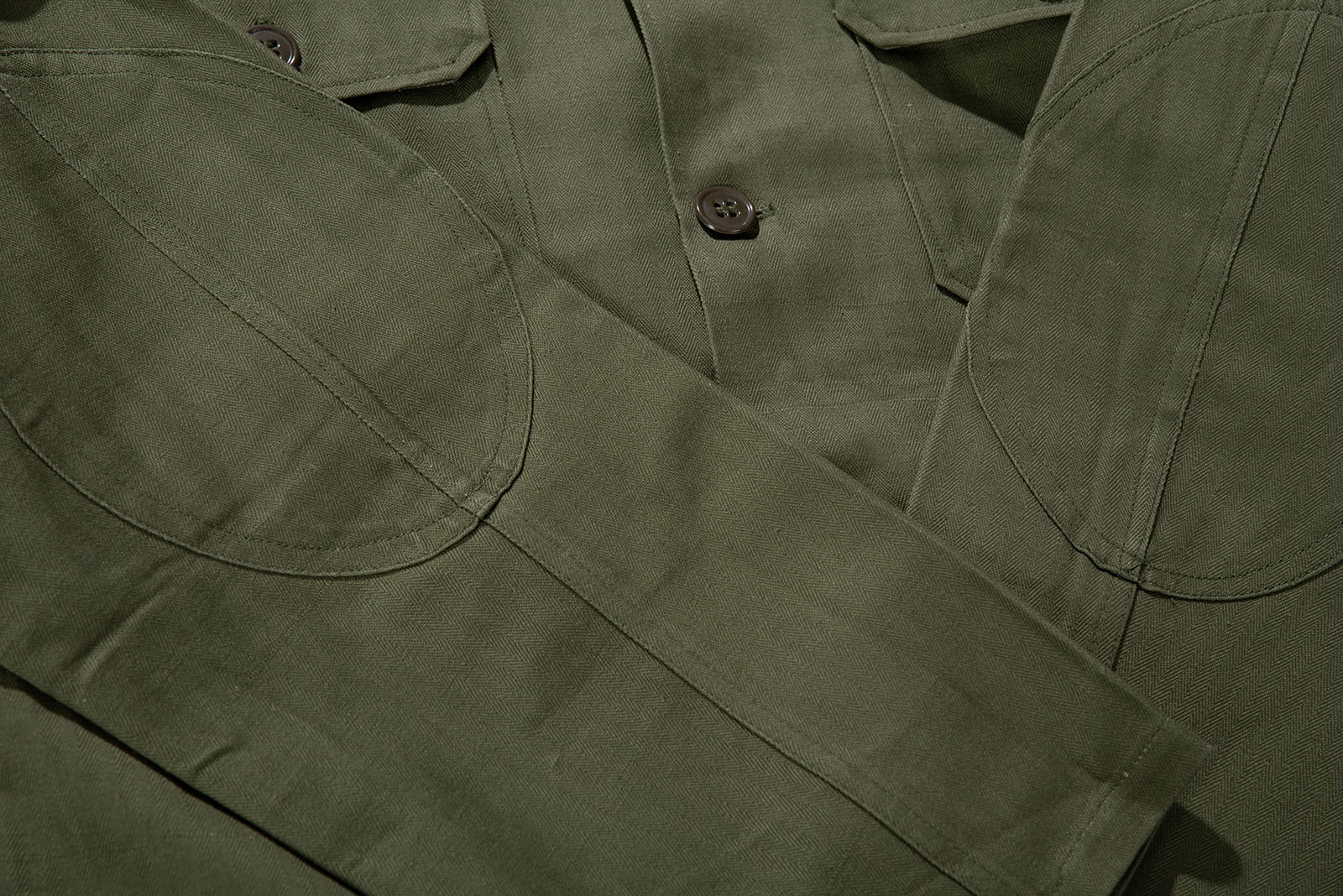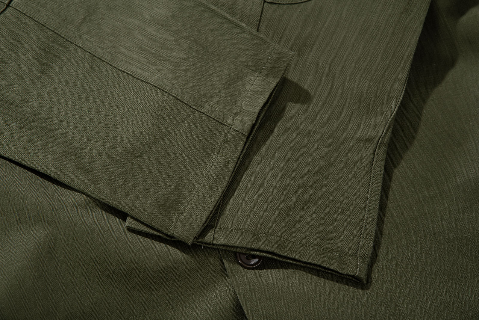 - 70 년대 육군/경찰용 HBT 재킷입니다. 어깨 견장이 없으며 팔꿈치 덧댐처리 된 제품으로, 해당 디자인 중에선 레어에 속하는 개체입니다. 데드스톡 컨디션으로 입고 되었습니다. 100-105 정도의 사이즈 감입니다.