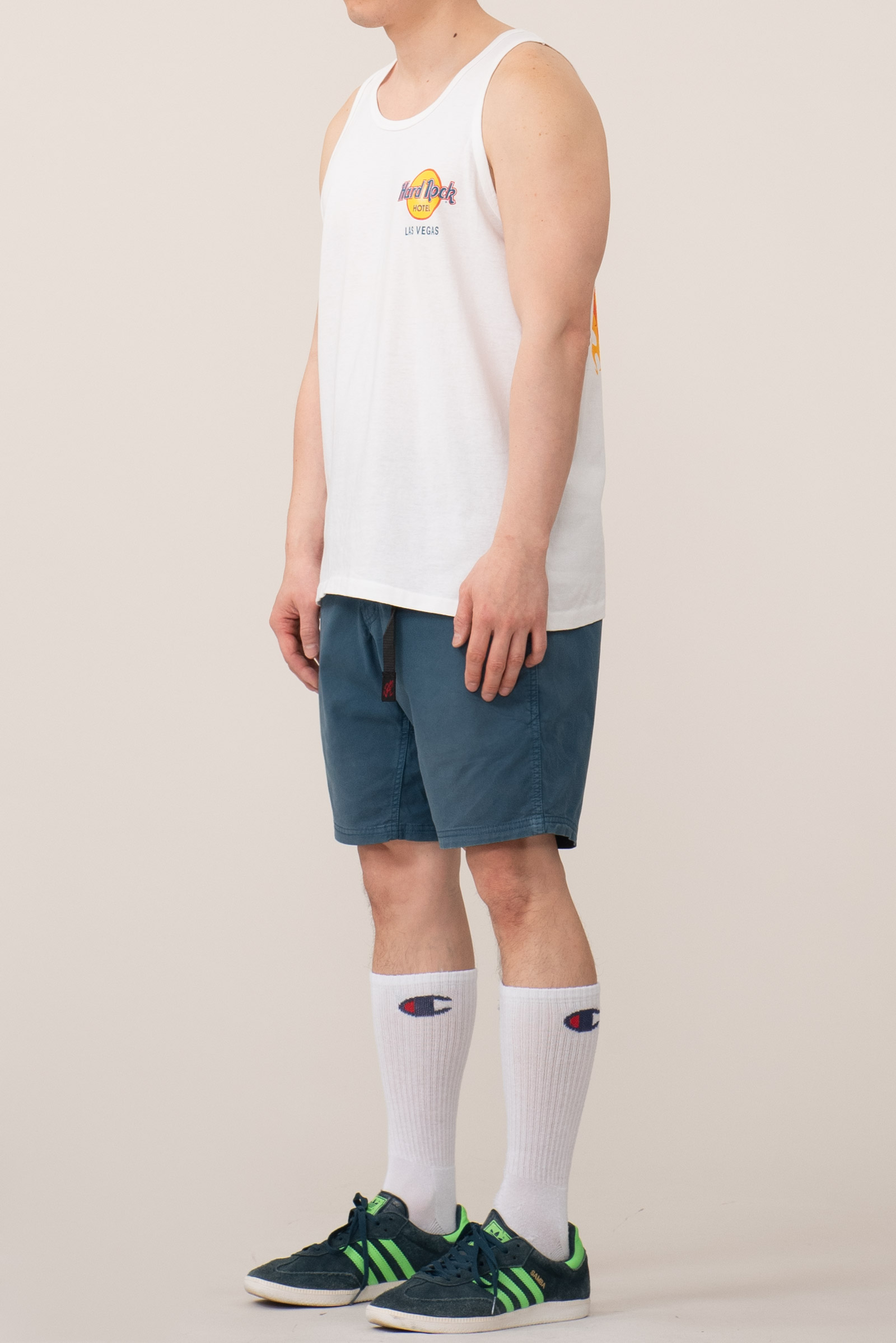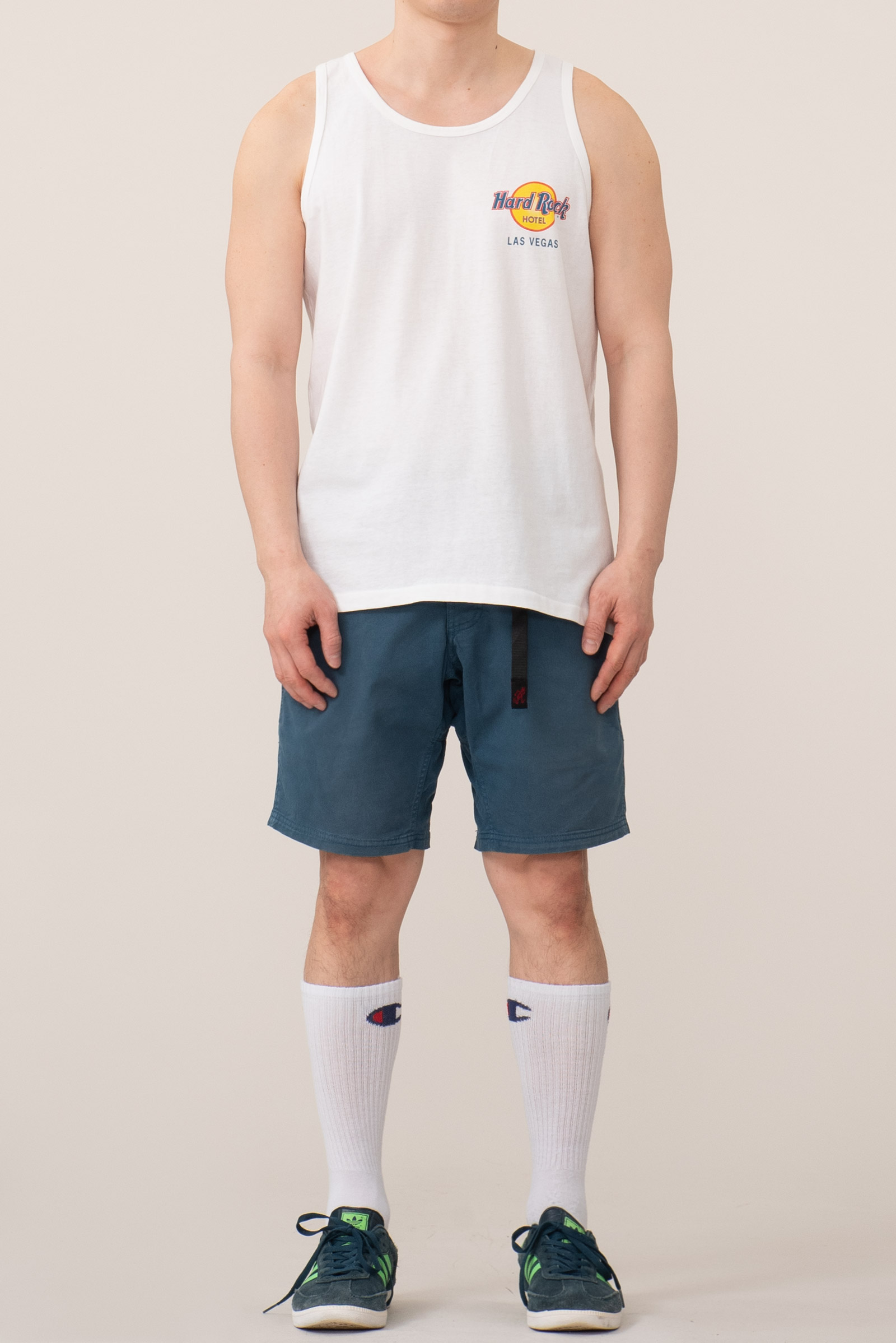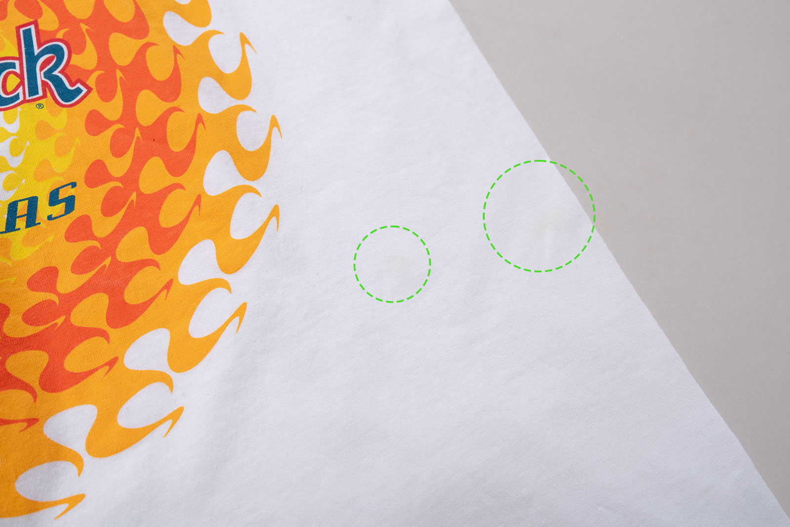 - 90 년대 제작 된 하드락 호텔 라스 베가스 민소매입니다. 전체적으로 깔끔한데, 등판 프린팅 옆으로 노란 오염이 있습니다.