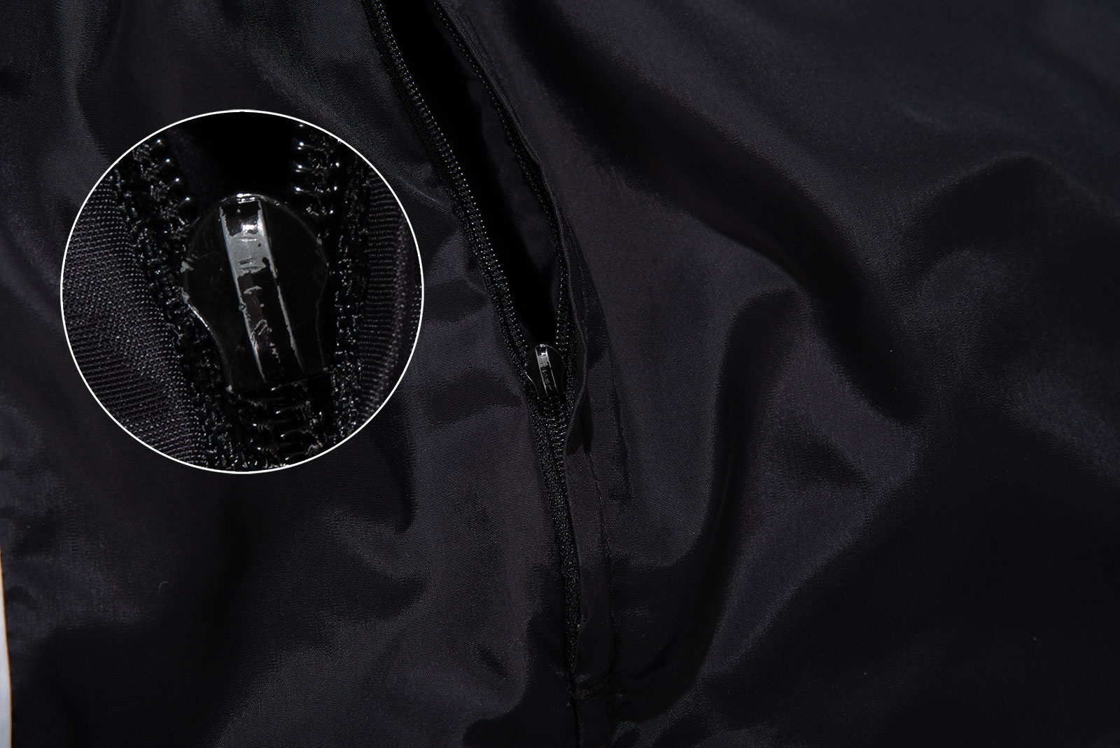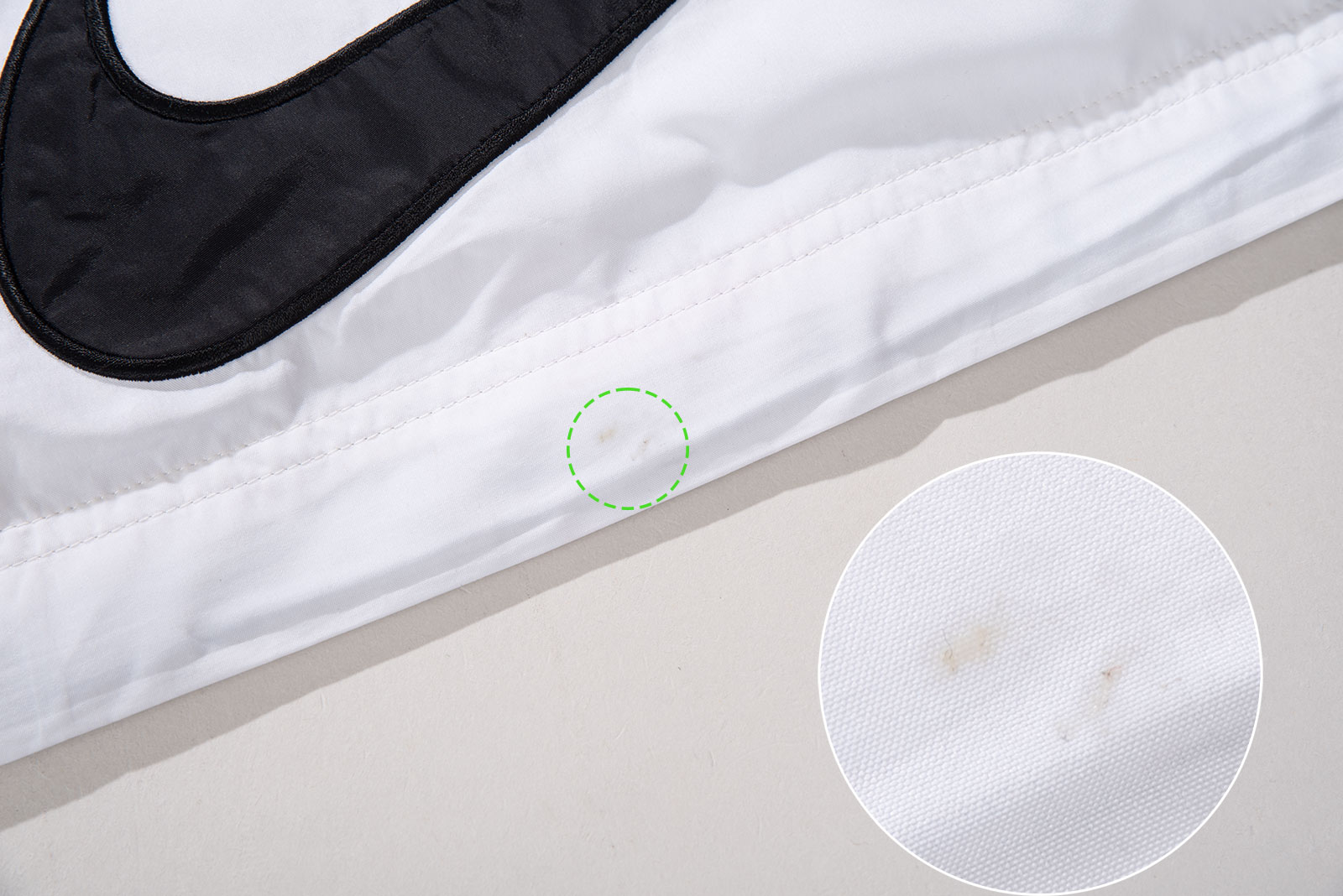 - 왼쪽 주머니 지퍼 고리가 탈락되었습니다. 지퍼는 잘 올라갑니다. 후면 나이키 스우시 밑으로 껌이 붙어 있었는데, 이것 제거하려고 세탁소에 맡겼습니다. 제거는 되었는데 흔적은 남아 있어요. 아무튼 자잘한 하자가 있습니다.