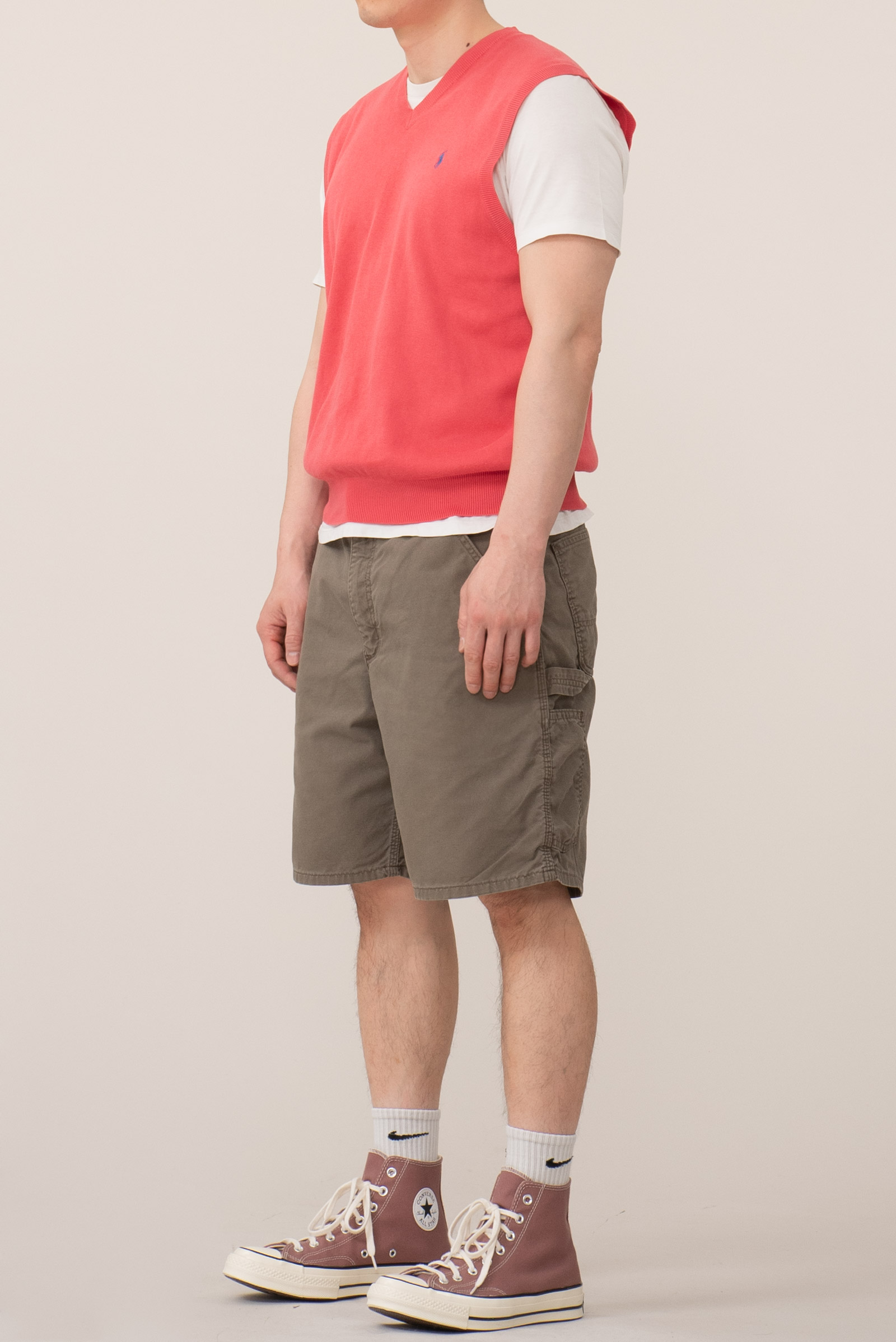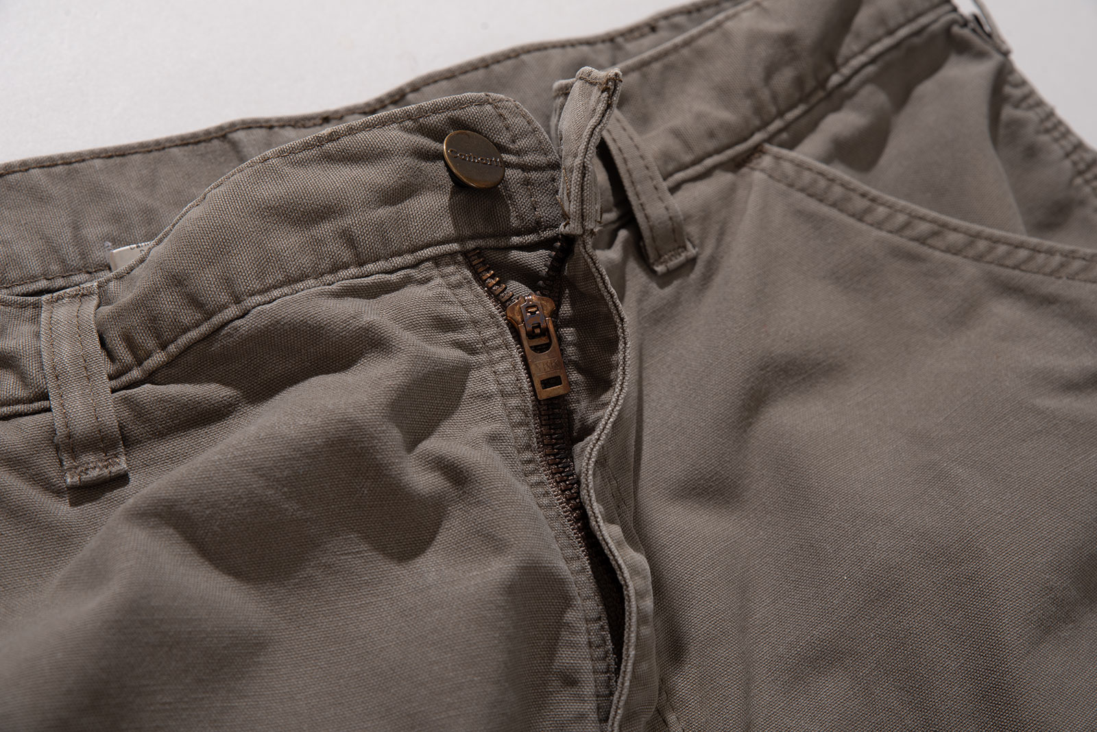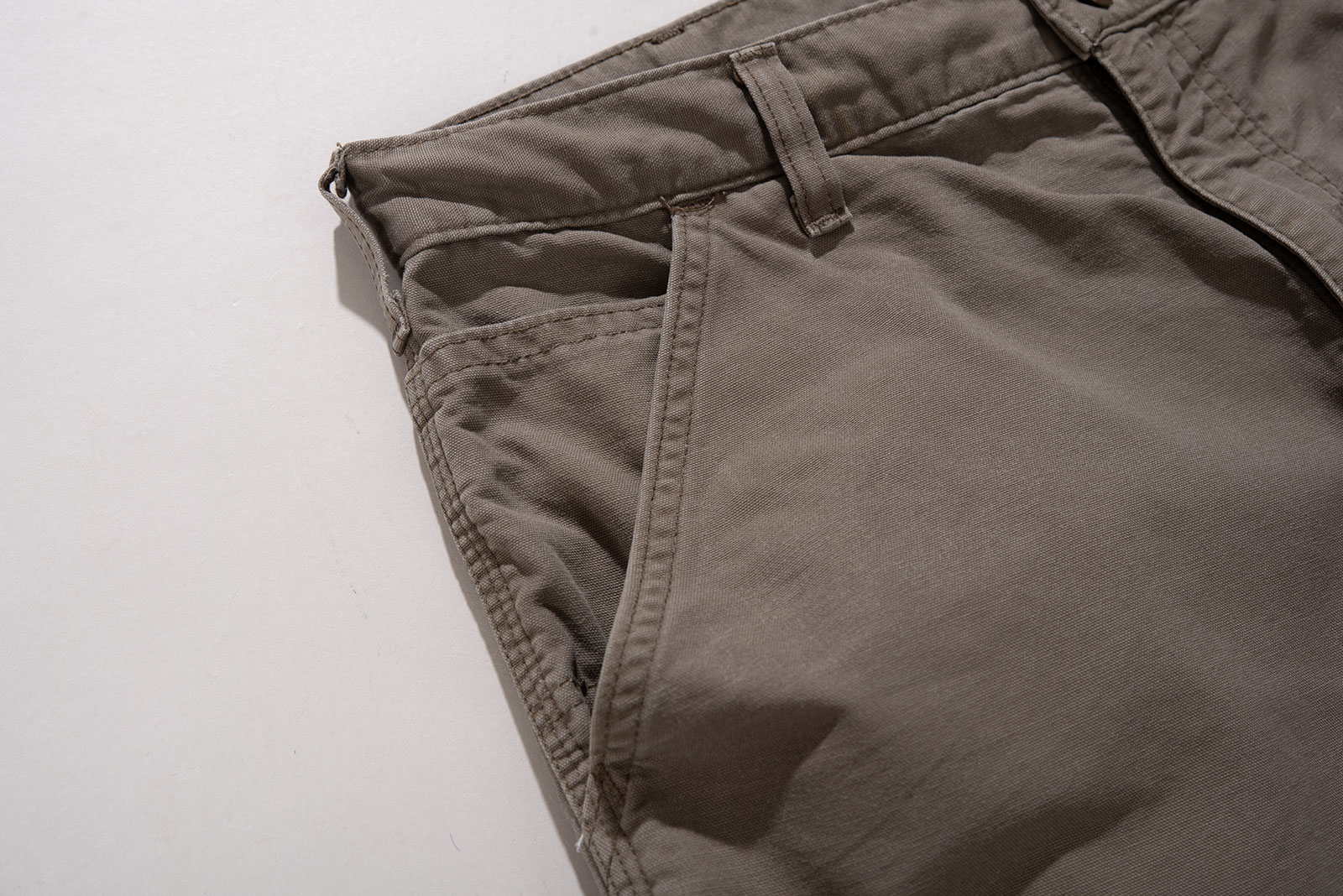 - 칼하트 B144 LBR 입니다. 편안한 두께감의 제품이라 만만하게 입기 좋은 바지에요. 색상도 편안하죠. ㅎㅎ 전체적으로 사용감이 있습니다. 32 입는 분이라면 골반에 좀 걸쳐서가 될 것 같고..표기 사이즈나 실측 처럼 33 입는 분이라면, 배에 꼭 맞지 싶어요. 반바지는 좀 내려 입어야 이뿌지 않습니까? 아무튼 이런 점 고려하여 실측 확인해주시면 좋겠습니다.