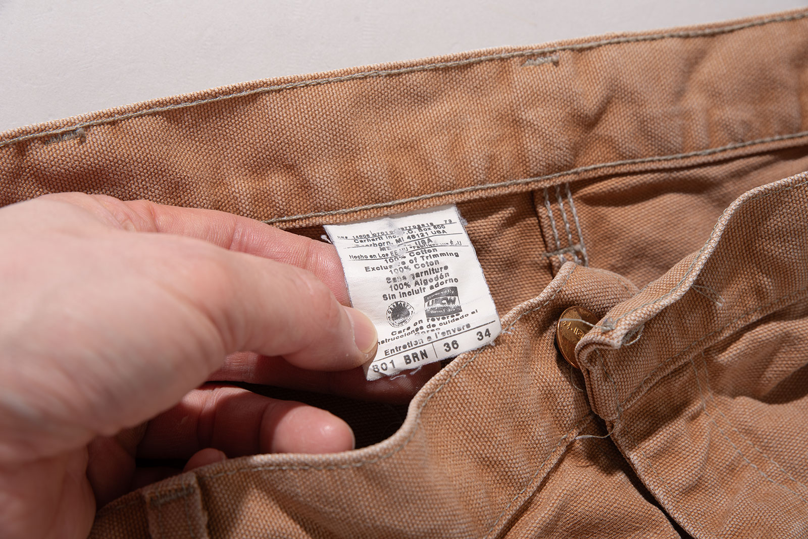 - 칼하트 B01 BRN Made in U.S.A UFCW 더블니입니다. 가장 기본이 되는 컬러이죠. 무난하게 어디든 쉽게 매치할 수 있는 제품이기도 합니다.