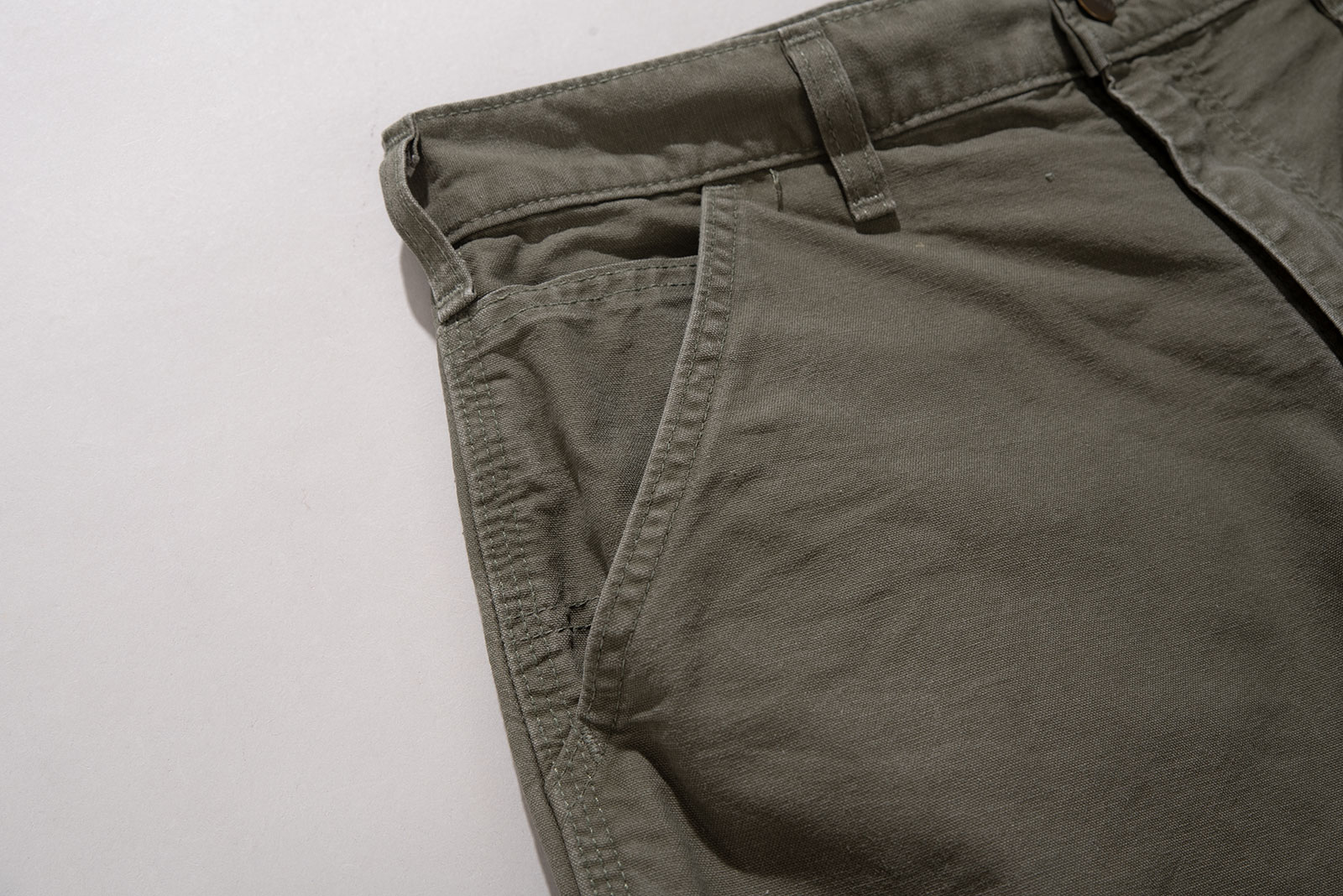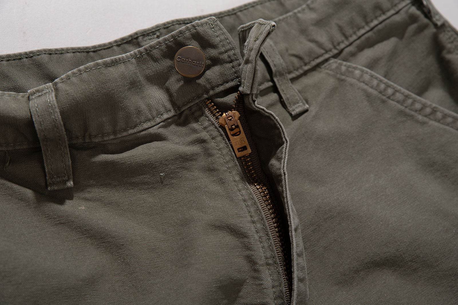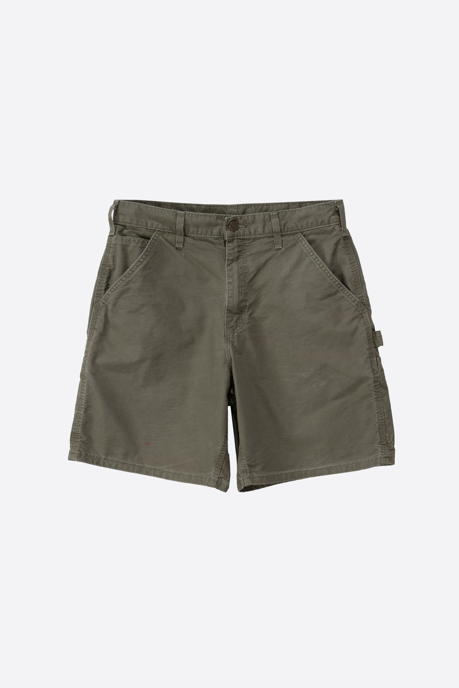 - 색감과 핏이 매력적인 칼하트 워크 쇼츠입니다. 전반적으로 사용감이 있고 큼지막한 오염도 있습니다. 감안하고 구매부탁드립니다.
