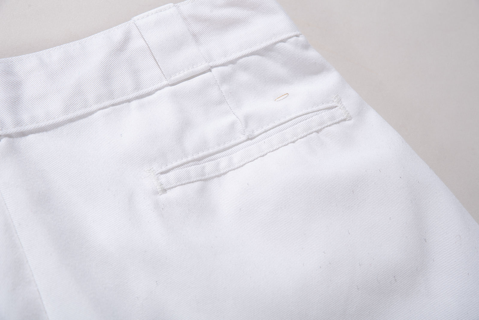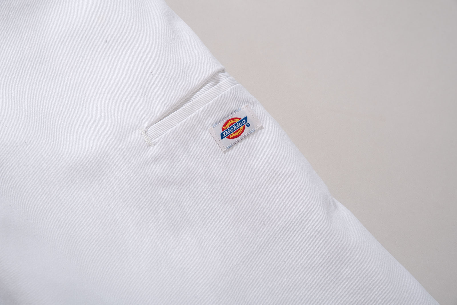- 디키즈의 워크 쇼츠입니다. 재미있게 코디하기 좋은 화이트 컬러로 입고 되었습니다. 색 특성 상 오염이 좀 도드라집니다. 32-33 정도의 사이즈 감이에요.