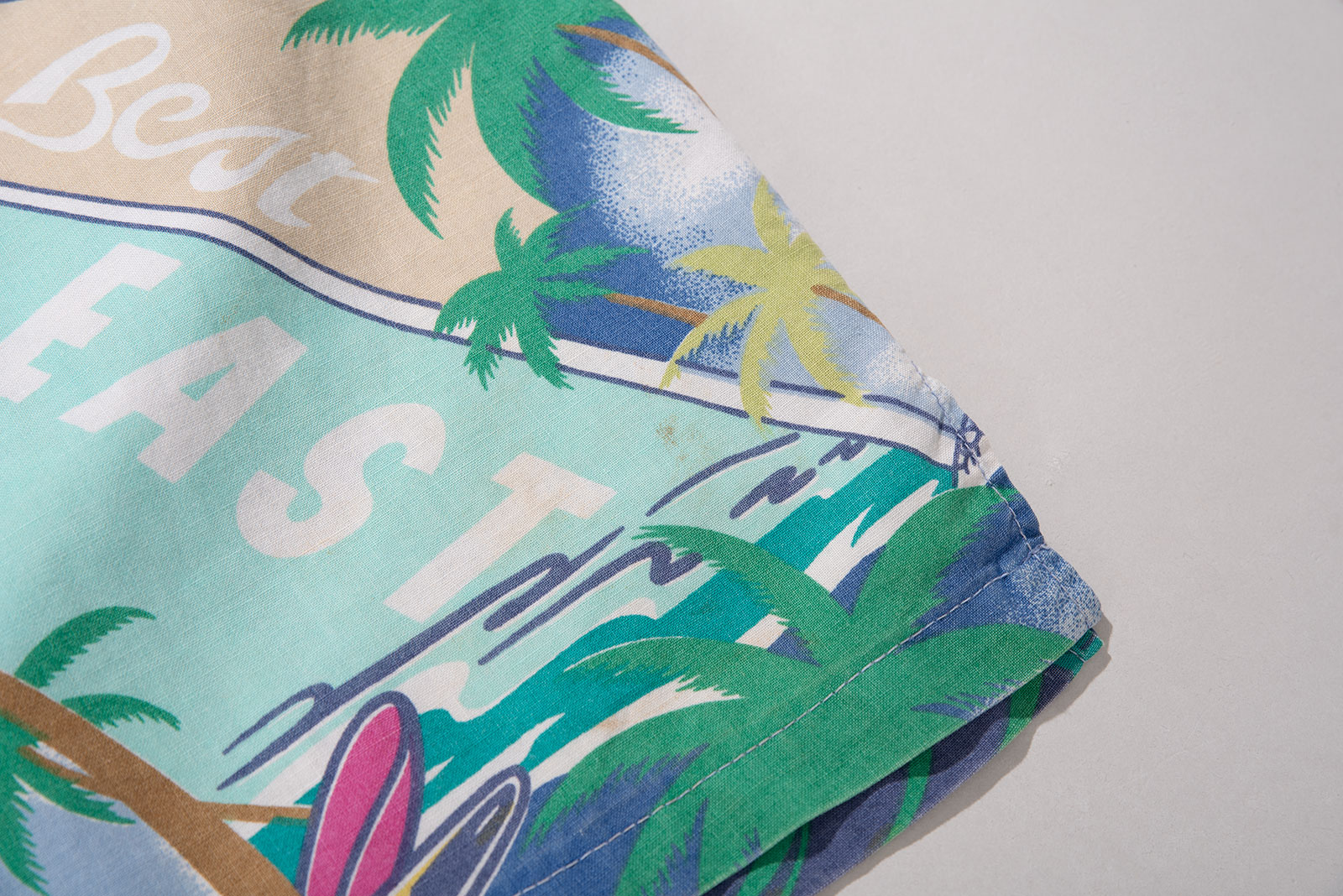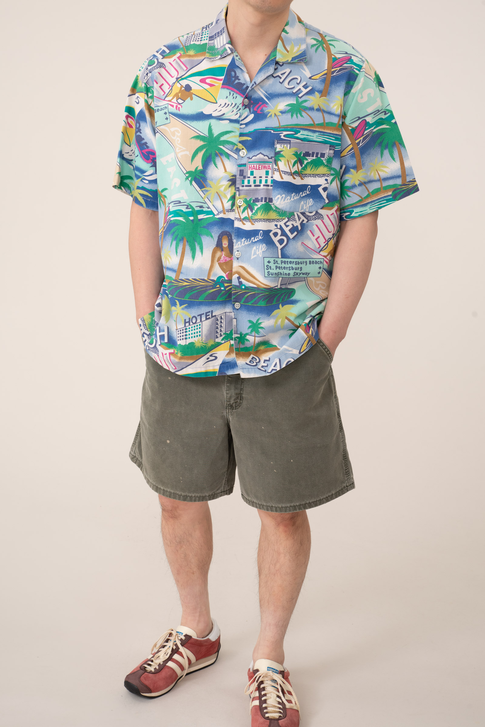 - 터키에서 생산 된 빈티지 하와이안 셔츠입니다. 재미있는 패턴에 개구진 색감과 텁텁한 코튼 원단이 잘 어울립니다. 자잘한 오염이 있어요.