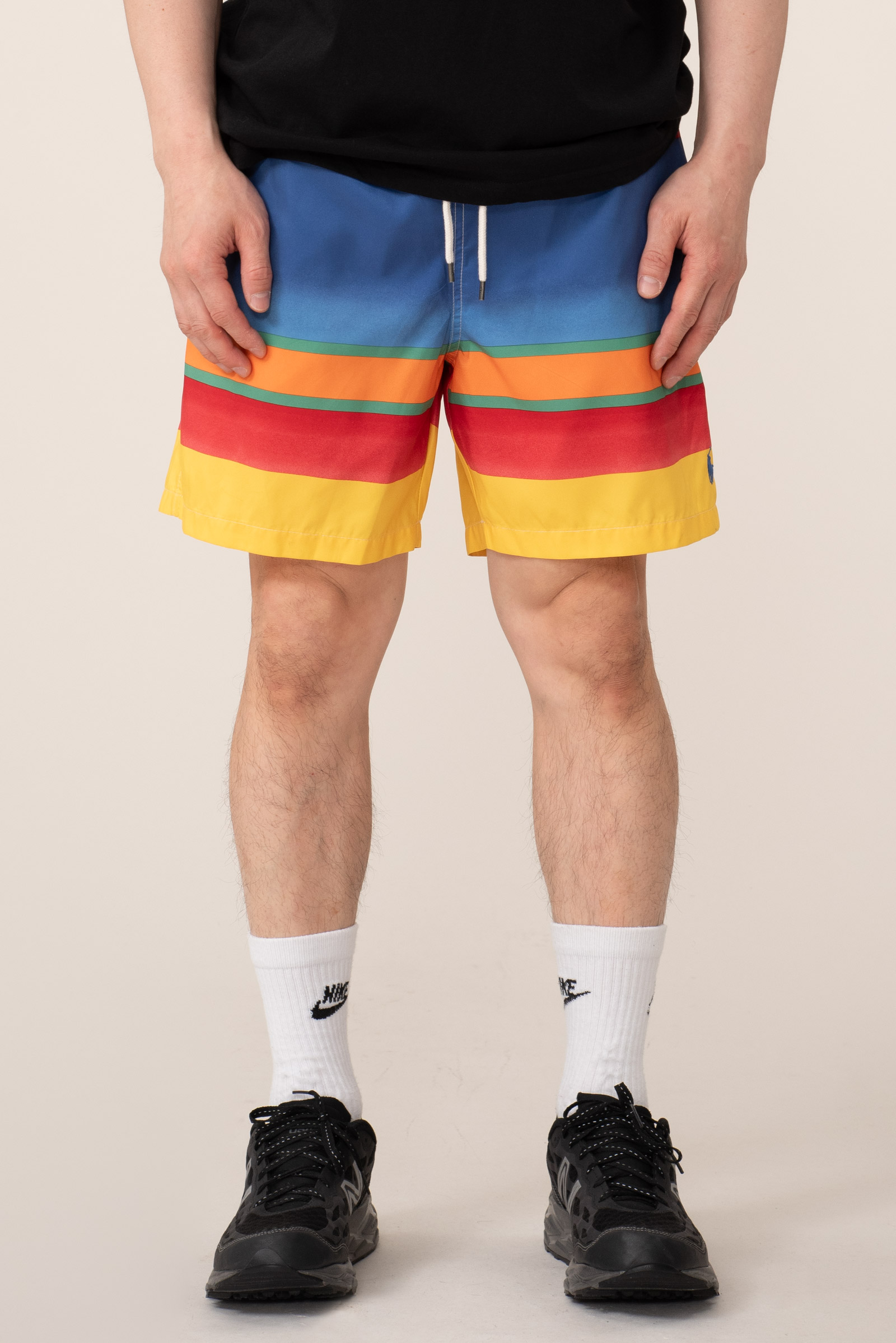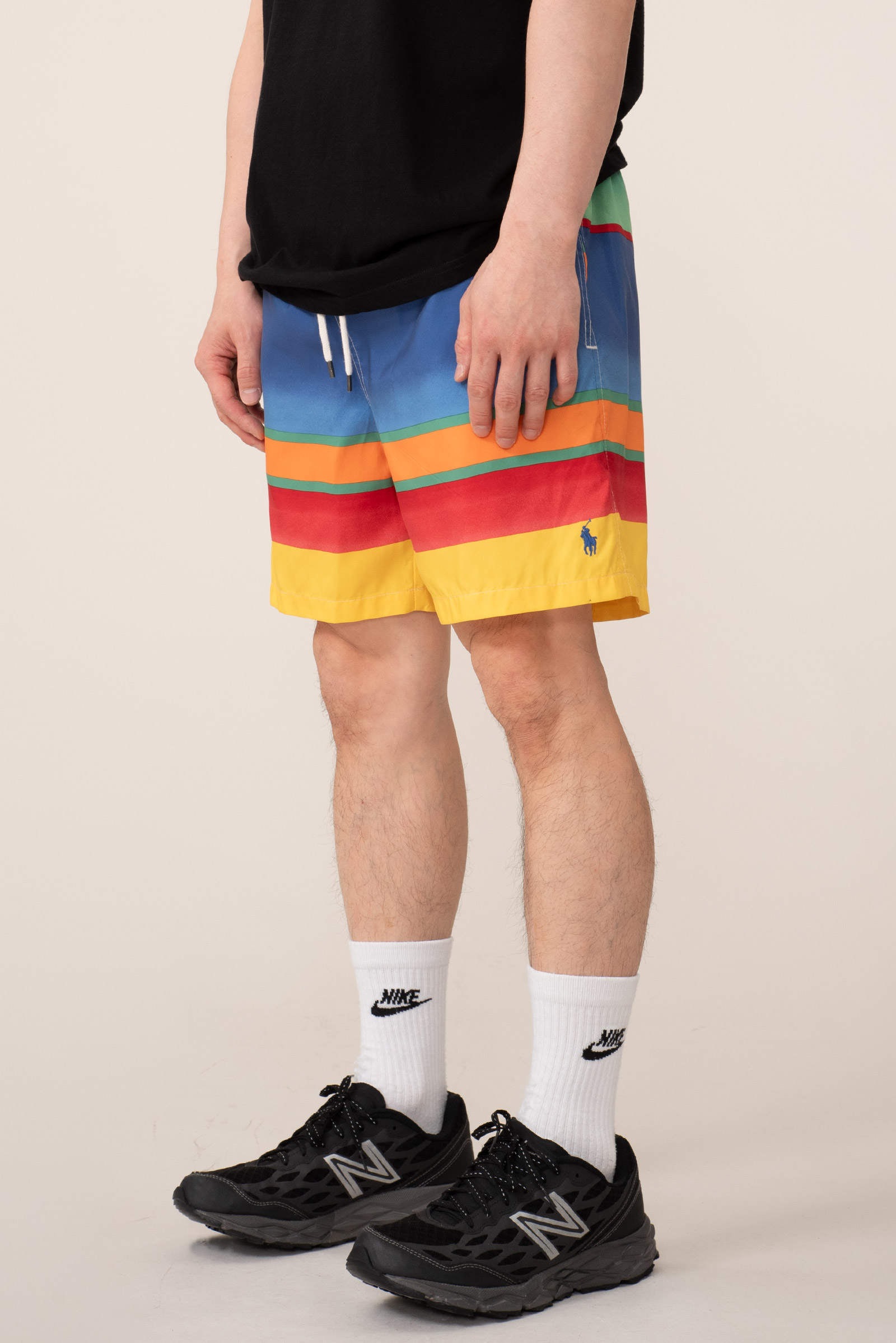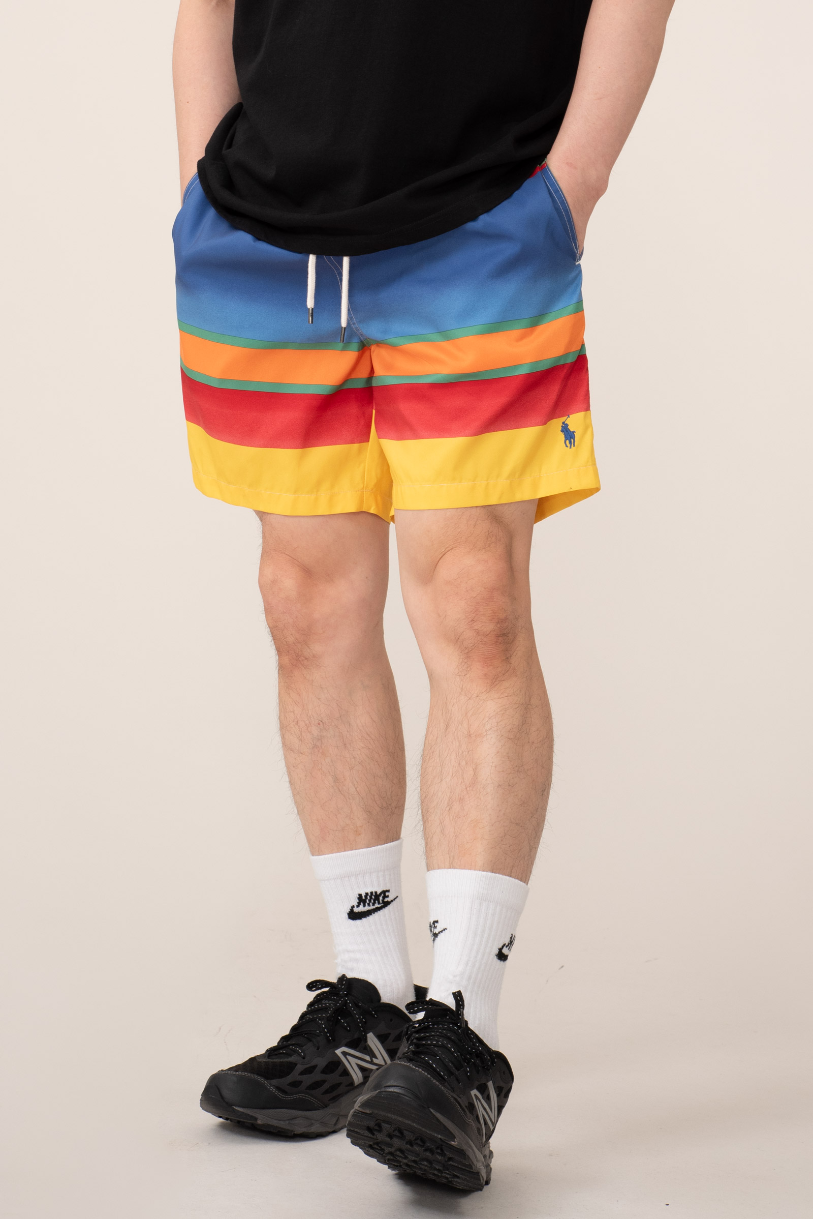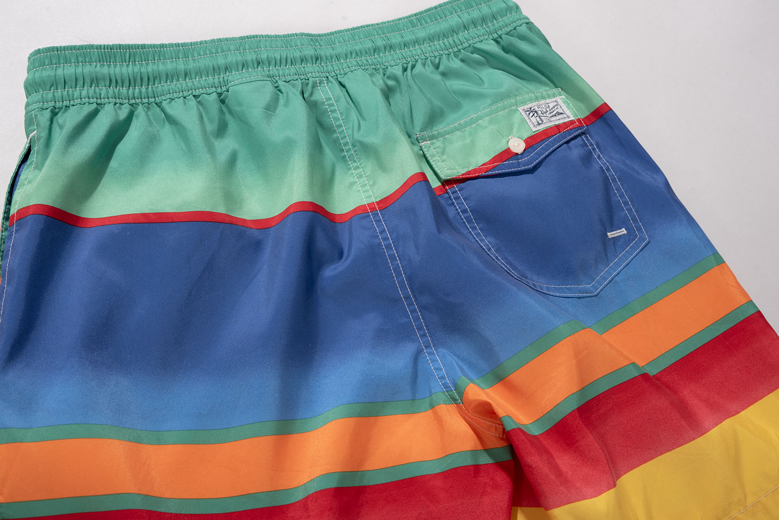 - 현행 폴로 랄프로렌의 패턴 스윔 팬츠입니다. 택 제거 된 새상품으로 입고 되었어요. 가볍게 세탁 후 출품합니다. 표기 M, 국내 30-32 정도의 사이즈 감입니다. 밑단에 작은 오염이 하나 있습니다. 티가 나요.