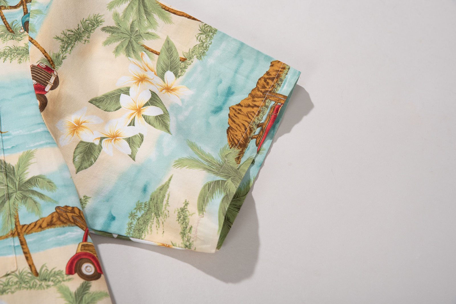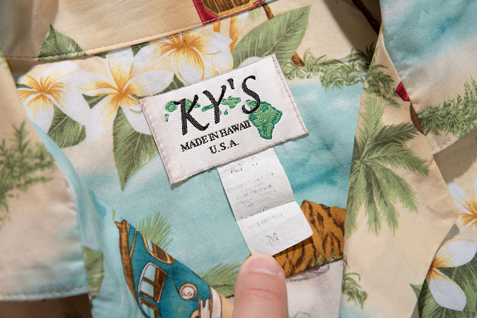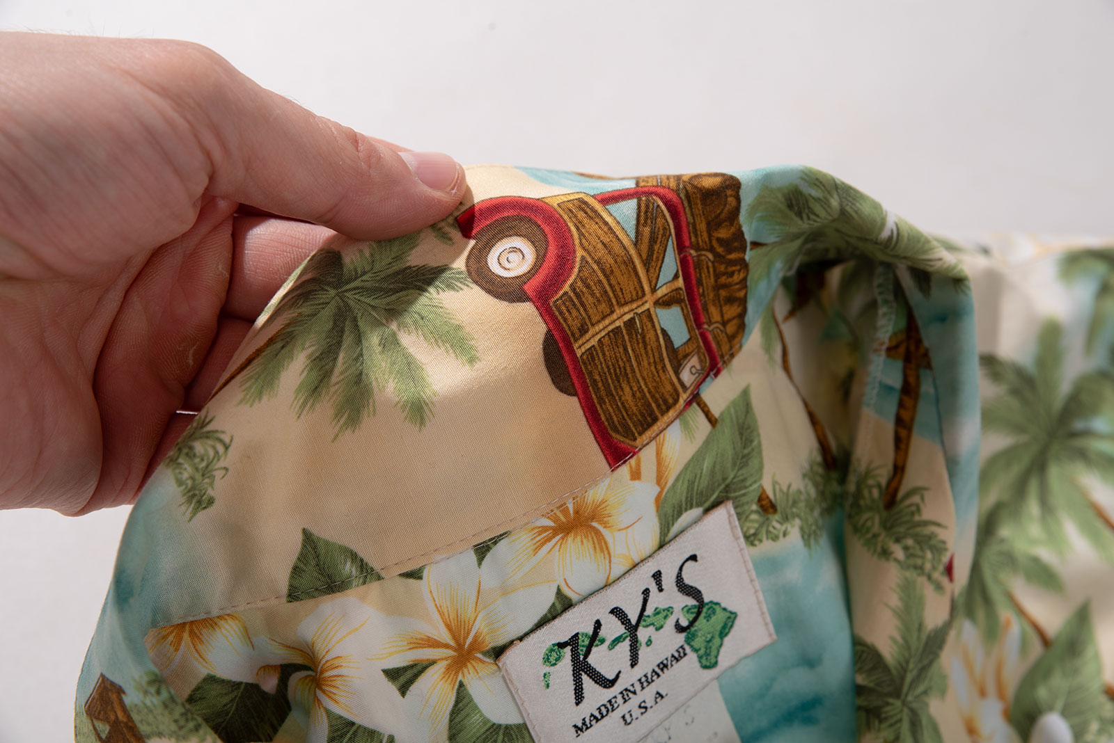 - 오리지널 하와이안 셔츠 브랜드 KY' S 의 하와이안 셔츠입니다. 목 부분 황변이 도드라지는데요. 바탕 자체가 좀 누런 톤이라...전체적으로 좀 누런(?) 느낌입니다. ㅎㅎ 컨디션은 고만고만합니다.