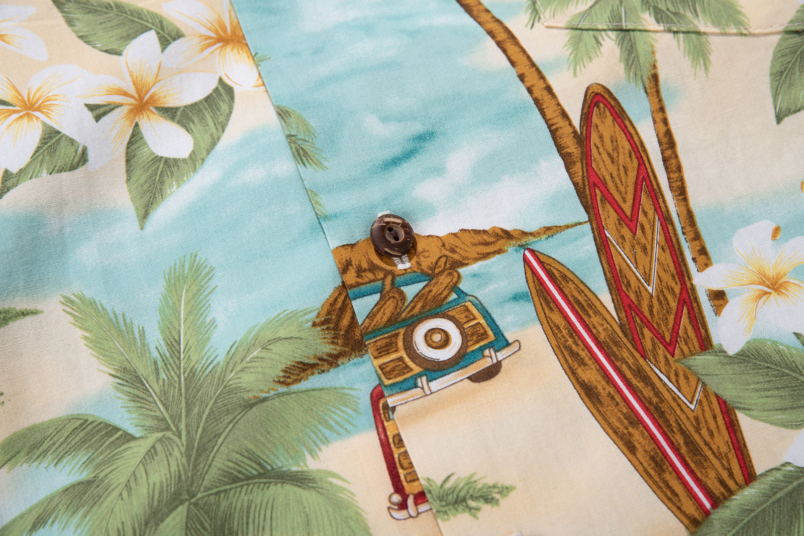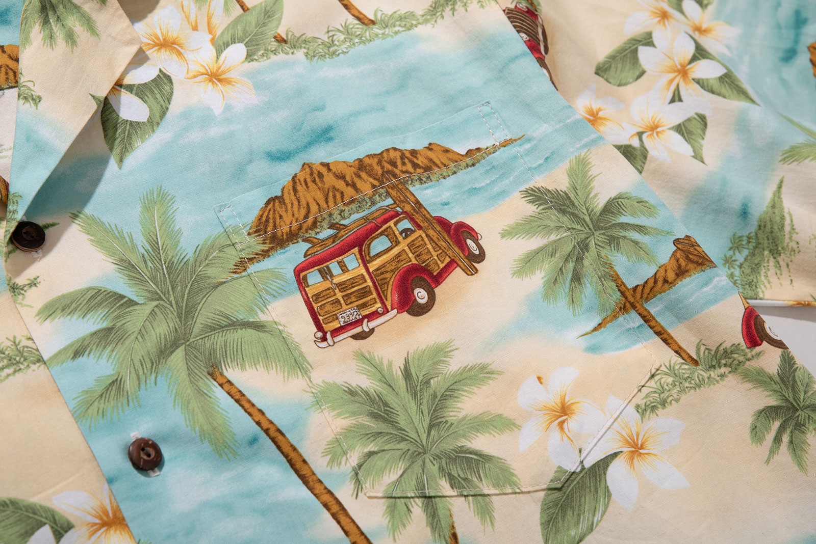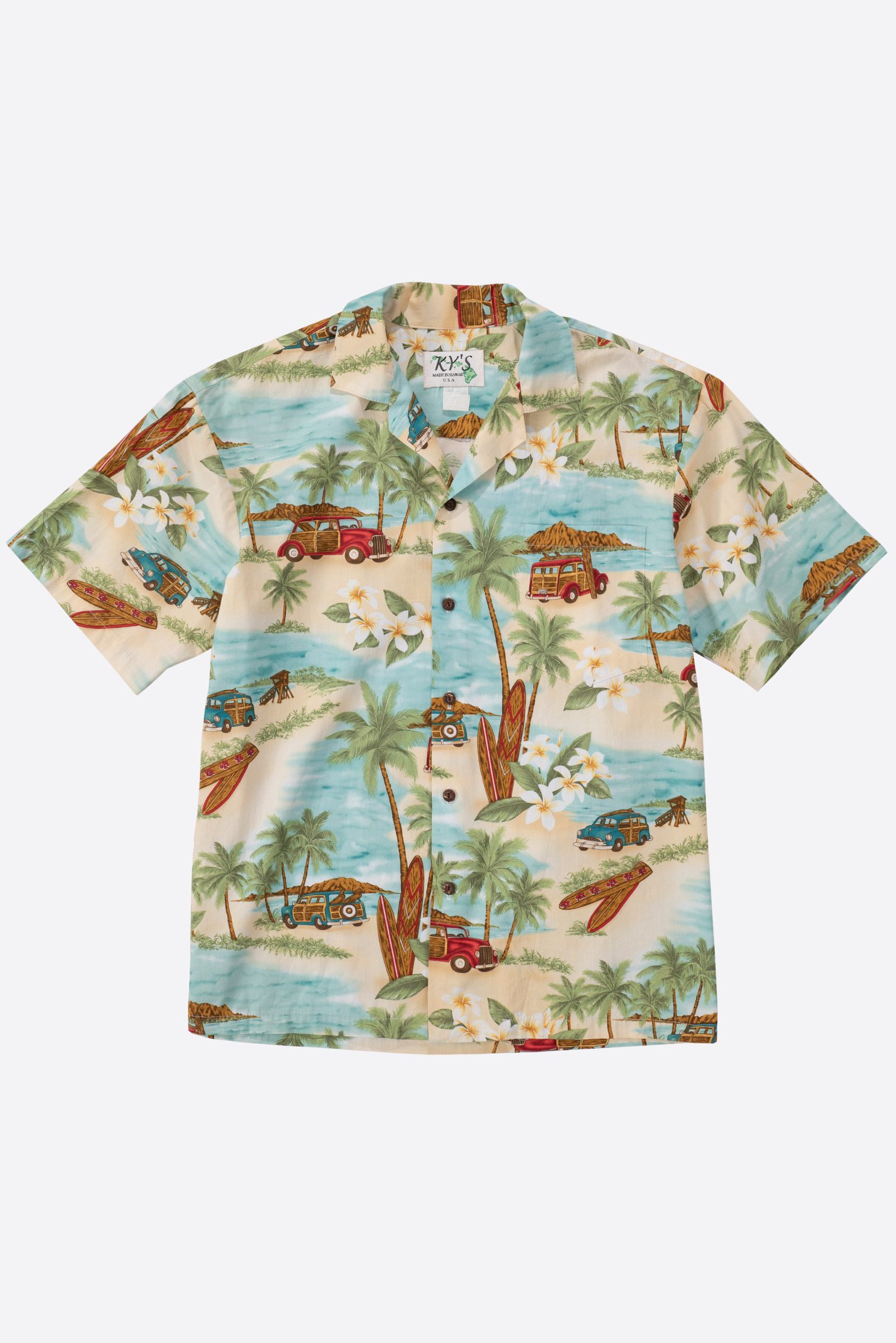 - 오리지널 하와이안 셔츠 브랜드 KY' S 의 하와이안 셔츠입니다. 목 부분 황변이 도드라지는데요. 바탕 자체가 좀 누런 톤이라...전체적으로 좀 누런(?) 느낌입니다. ㅎㅎ 컨디션은 고만고만합니다.