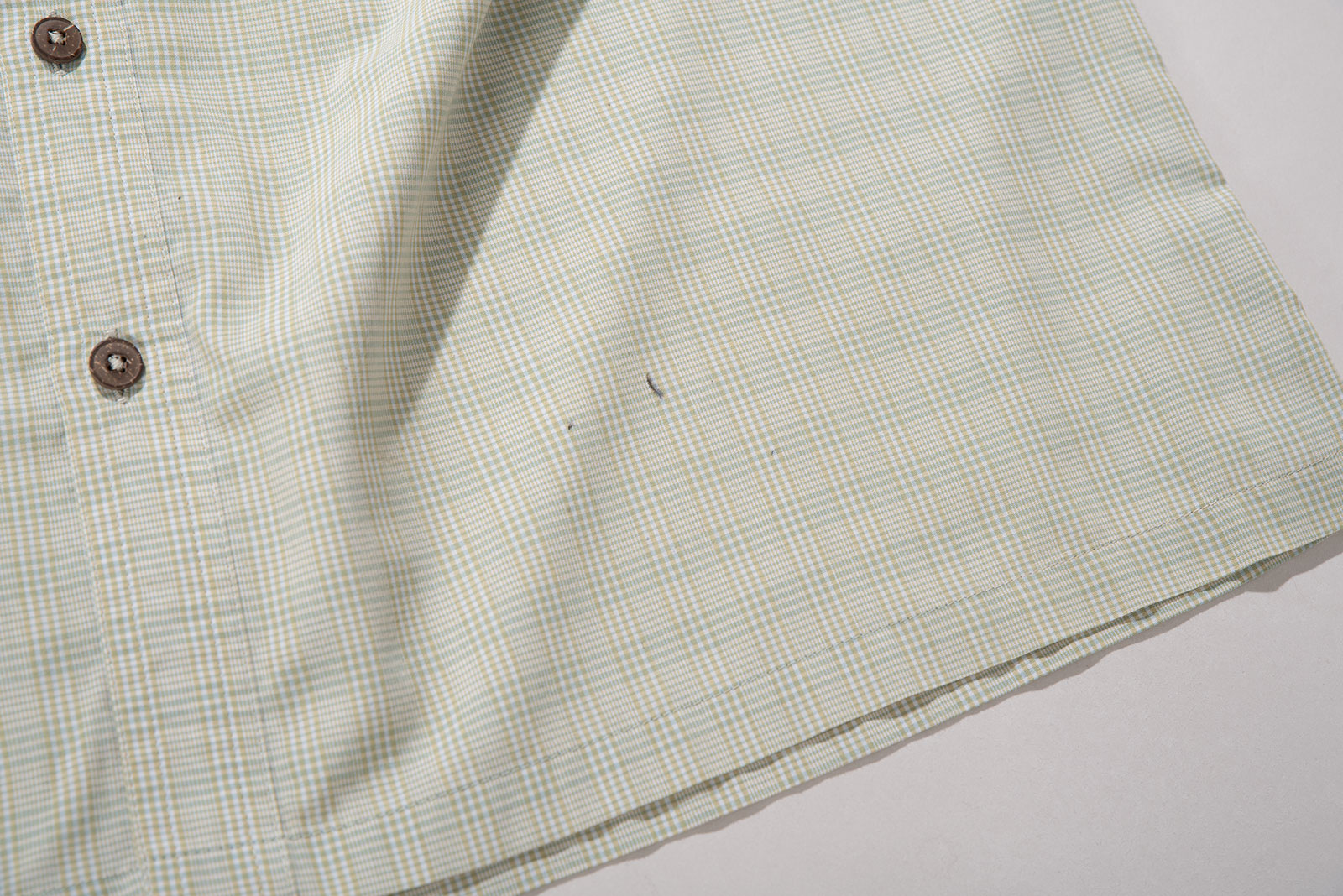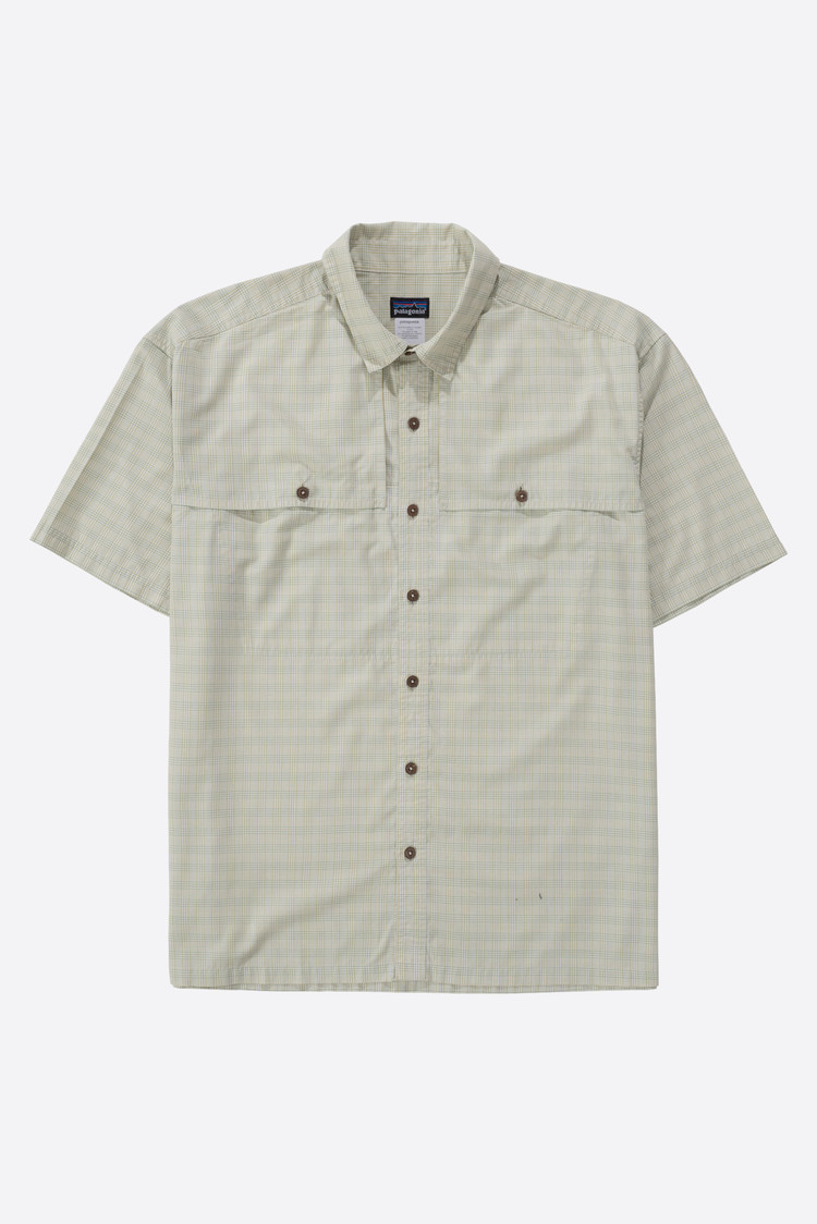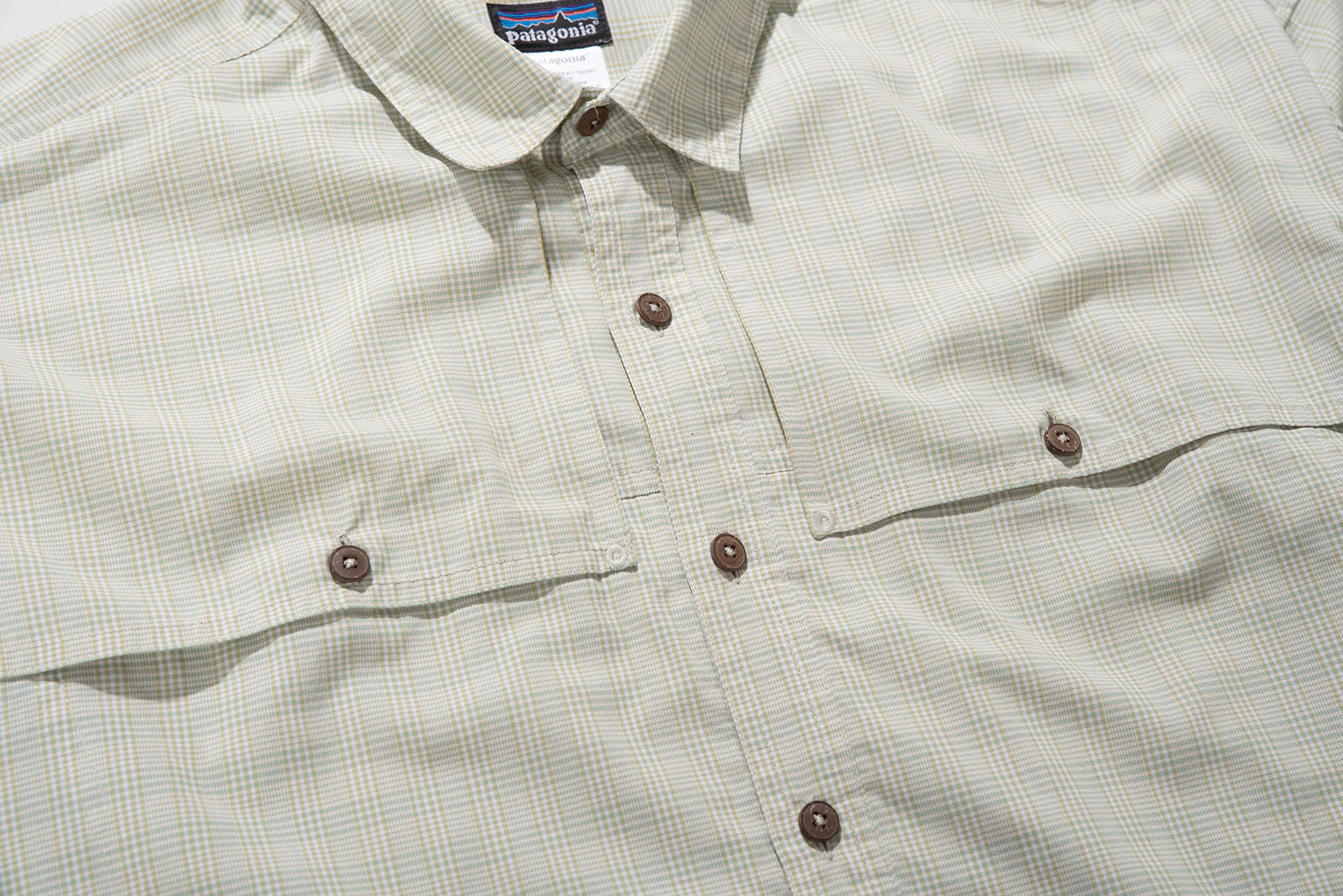 - 2007 년도에 제작 된 파타고니아 체크 셔츠입니다. 정면 가슴 포켓이 어깨에서 내려오는 덮개에 묻힌 듯 디자인 되어 있는 탐험가 타입의 셔츠입니다. 전반적으로 무난한 컨디션입니다만 밑단에 티나는 오염이 있어요. 감안하고 구매부탁드립니다.