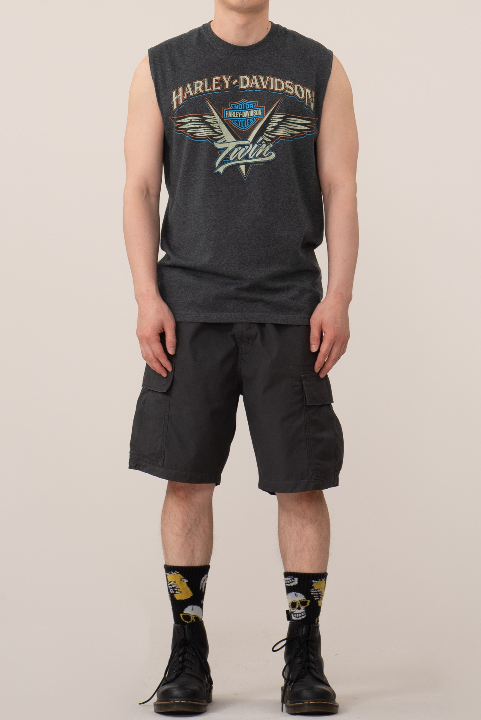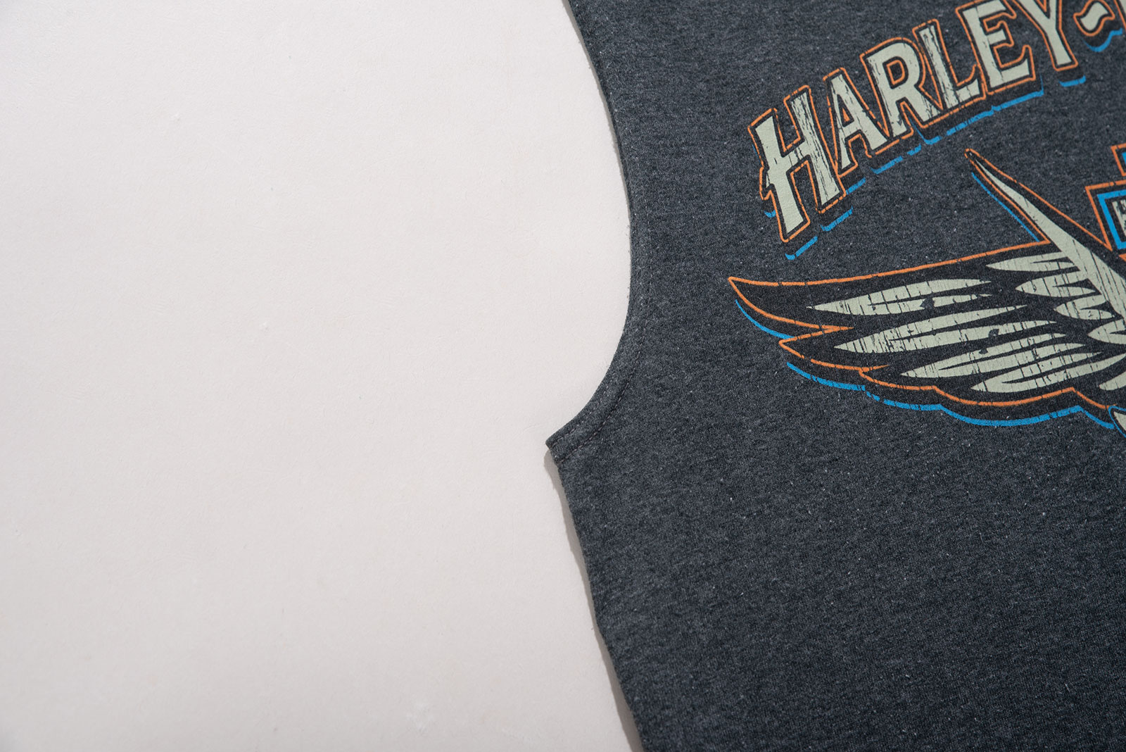 - 할리데이비슨의 민소매 티셔츠입니다. 폴리 함유로 겉감 필링이 잘 생기는 원단이에요. 필링은 발송 전 최대한 제거하도록 하겠습니다.