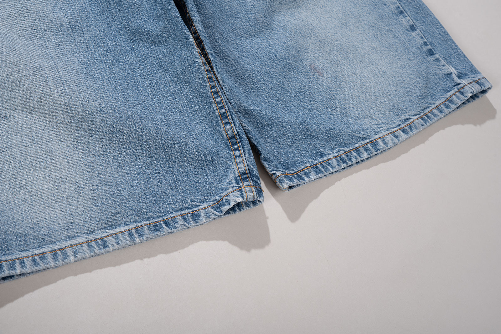 - 2000 년대 제작 된 569 쇼츠입니다. 얇은 원단에 전반적으로 사용감이 있는 제품입니다. 기존에 소개하던 505, 550 쇼츠보단 기장감과 통이 조금 더 있는 편이에요.