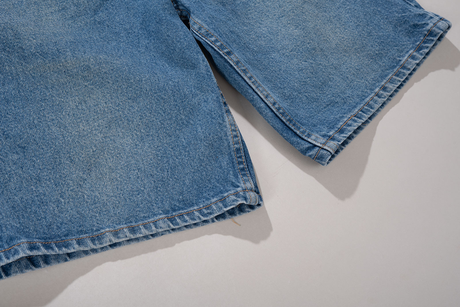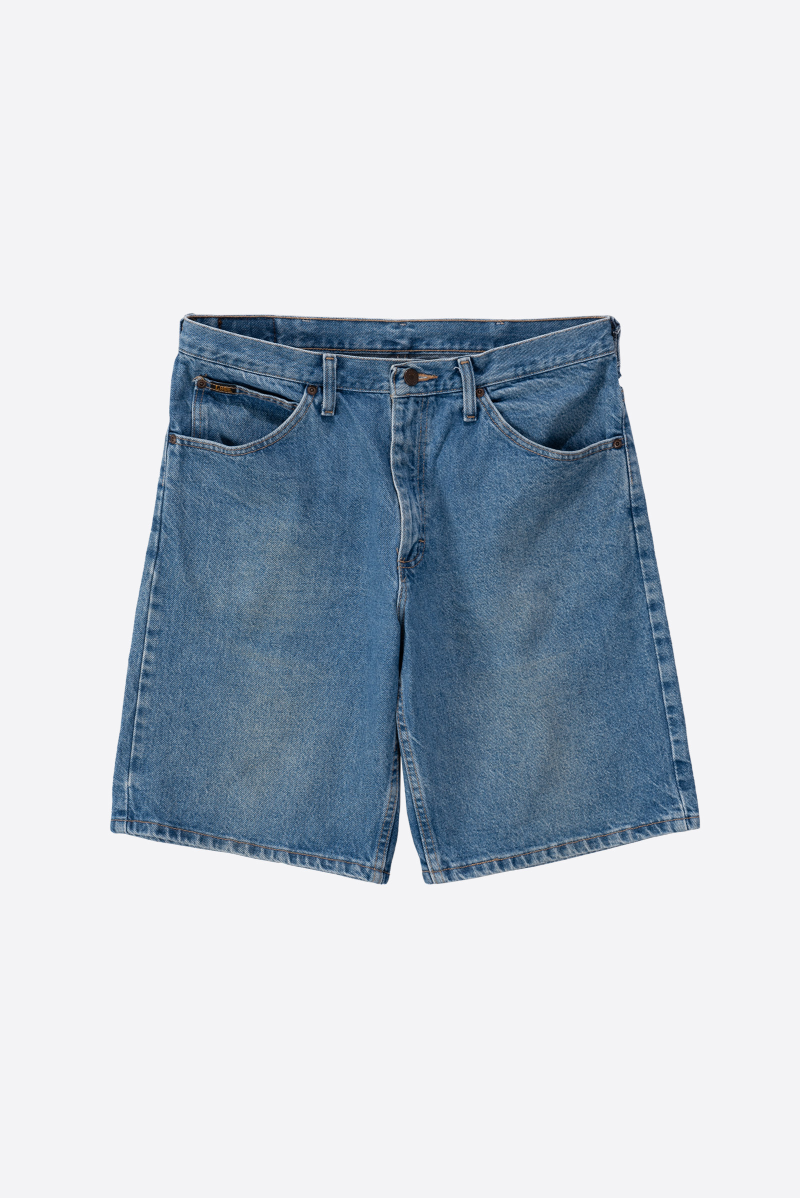 - 2000 년대 중반 쯤 제작 된 리의 오리지널 버뮤다 쇼츠입니다. 전면에 황염이 은은하게 자리를 잡아 멋스러운 인상입니다. 도톰한 원단에 데님의 질감을 제대로 즐길 수 있는 팬츠에요.