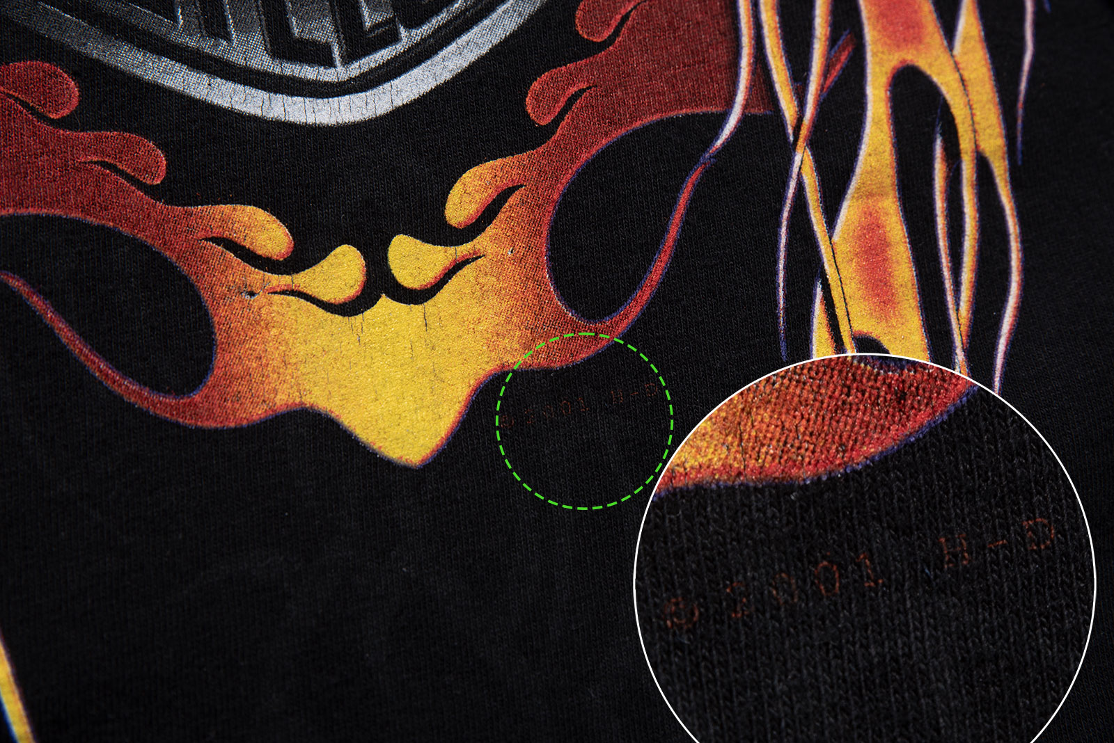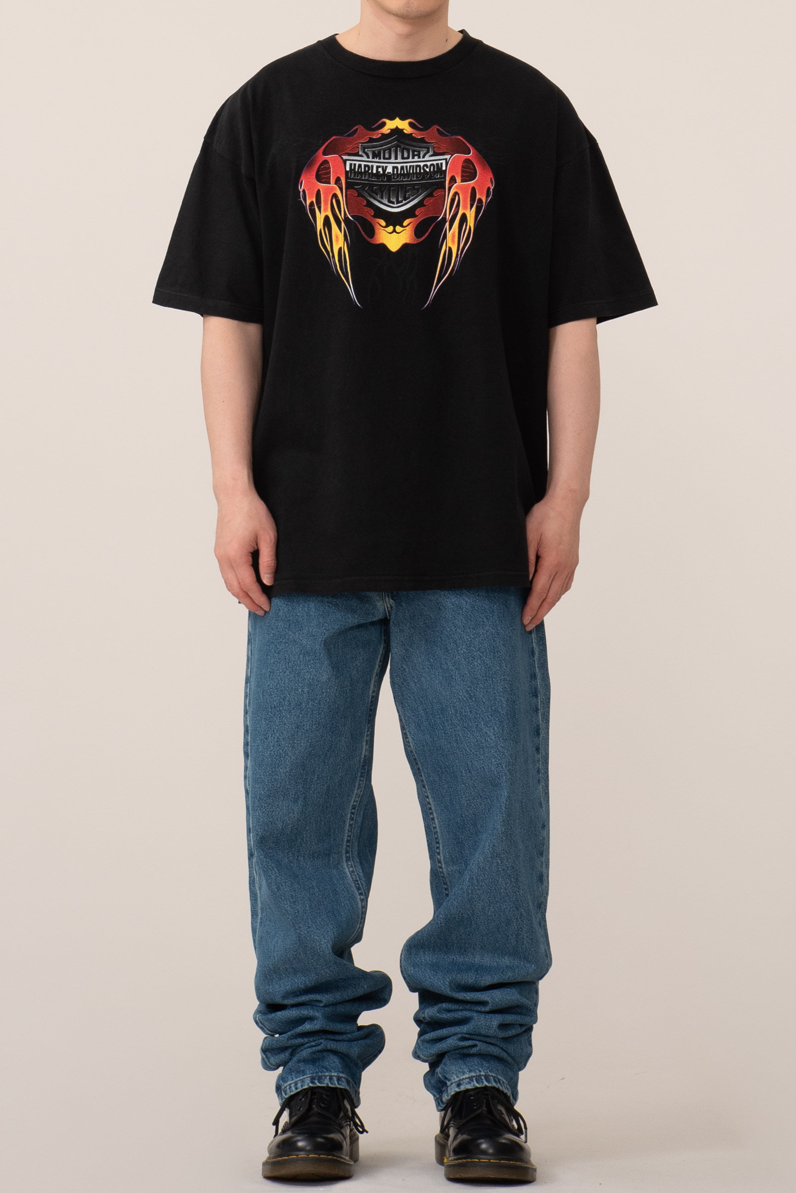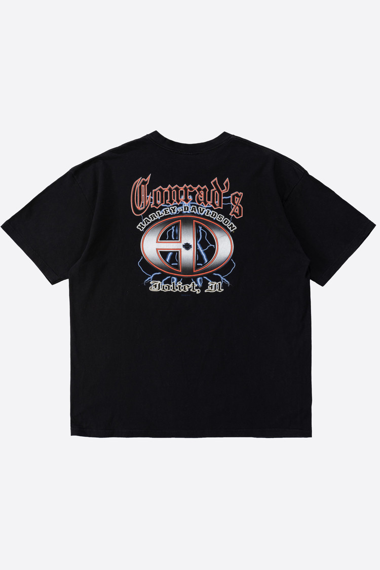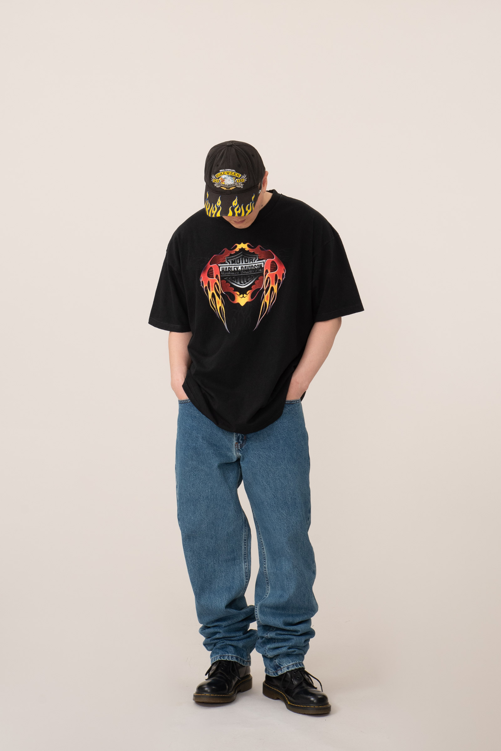- 2001 년에 제작 된 할리 데이비슨의 반팔 티셔츠입니다. 2XL 사이즈로, 정 사이즈 착용 시 120 정도의 사이즈 감입니다만, 그러기엔 총장이 길지 않아요. 105-110 정도가 적당할 것 같고, 오버 사이징하실 분에게 추천드립니다.