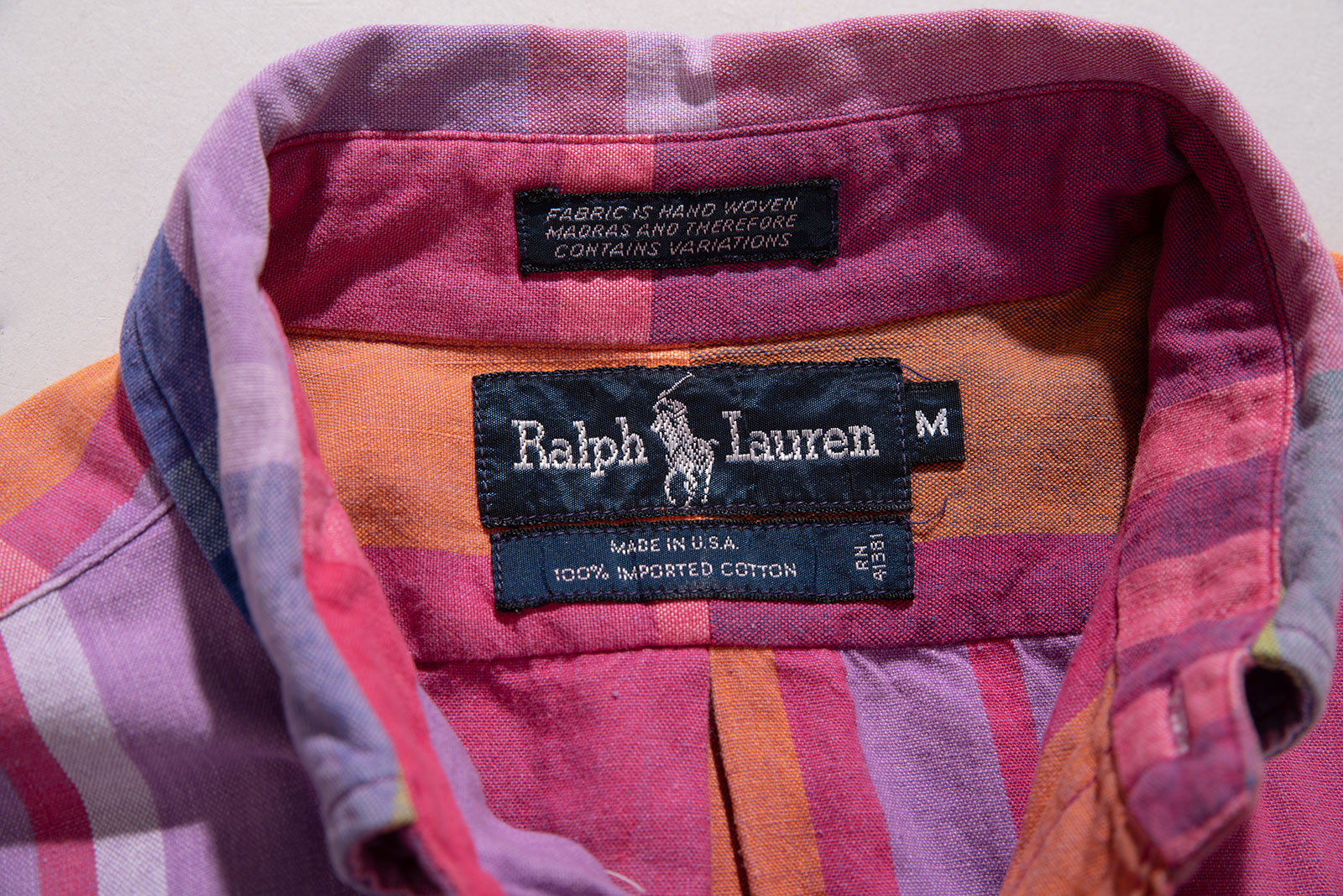 [100] Polo Ralph Lauren Madras Check Shirt 90s Made in U.S.A No. 6365