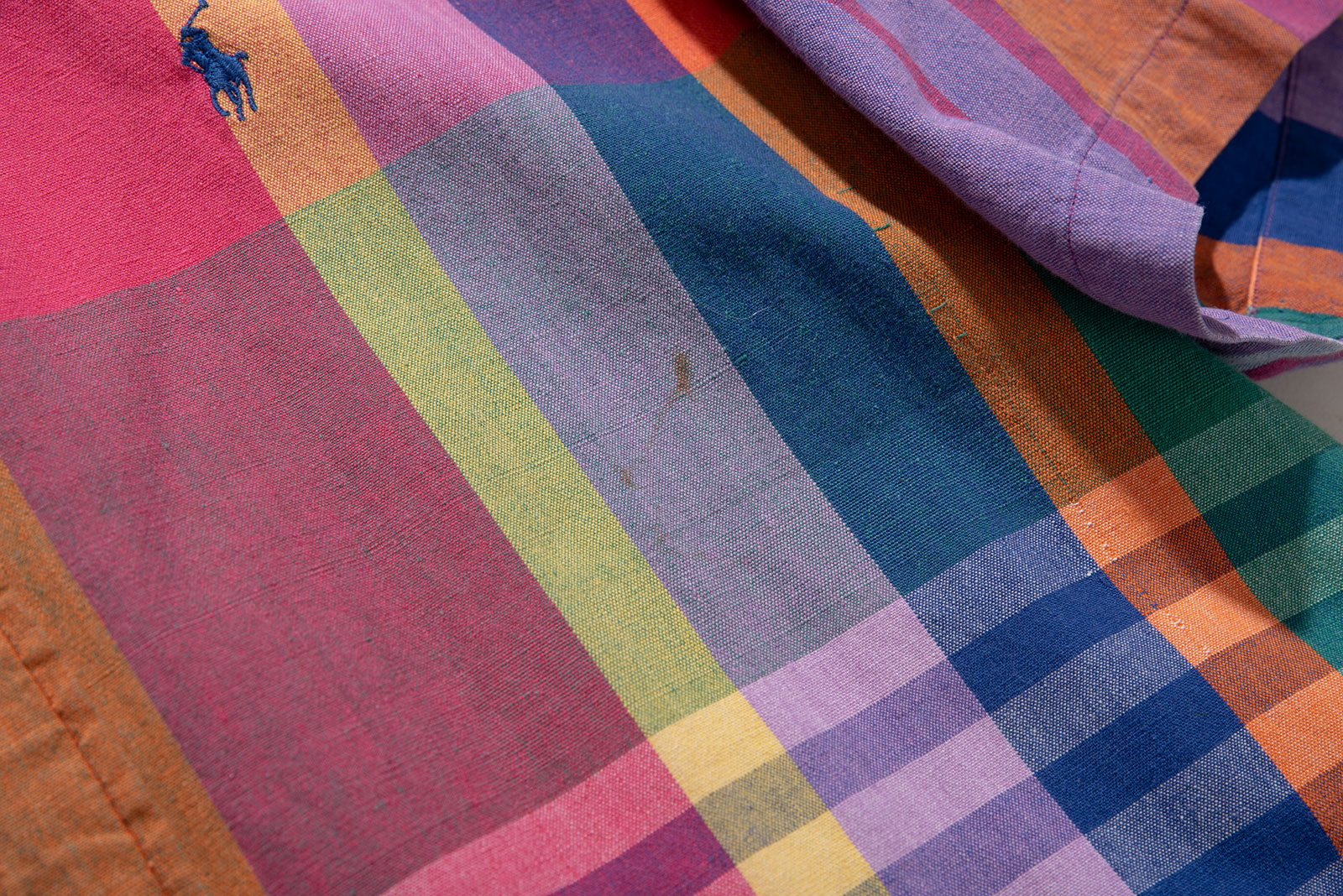 - 미국에서 제작 된 오리지널 폴로 랄프로렌 마드라스 체크 셔츠입니다. 핏이나 감성이 아주...5지죠. 자수 로고 밑으로 오염이 티나게 하나 있고 뒷면 밑단으로 촬영되지 않은 같은 오염이 있습니다. 그 주변으로 올트임도 조금씩 있어요. 100 추천쓰..