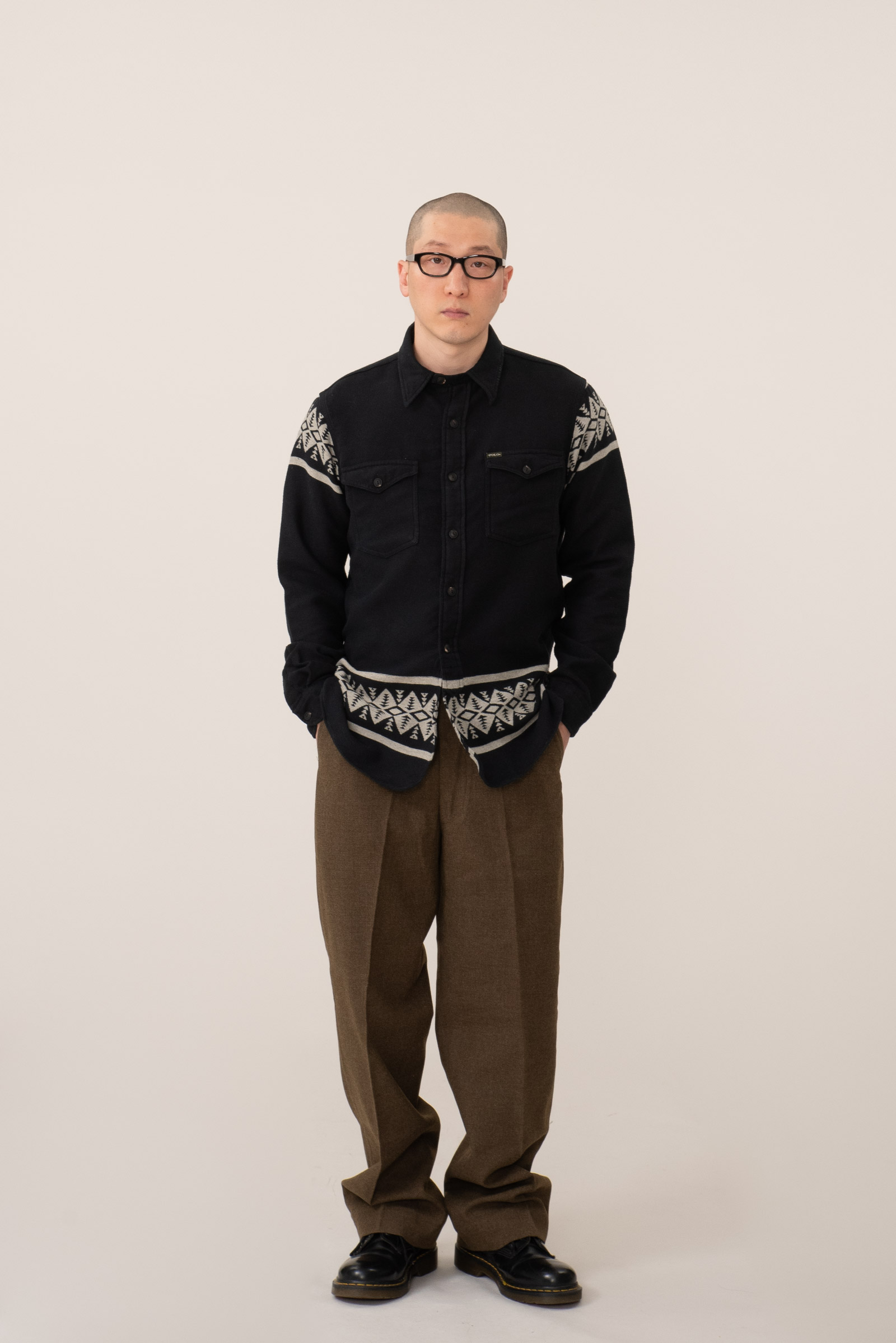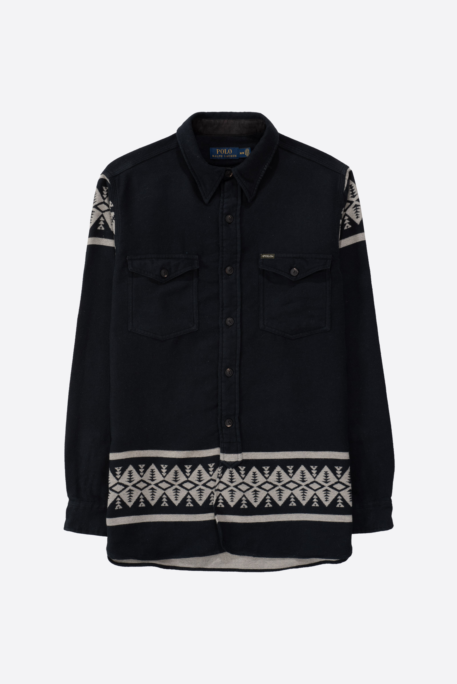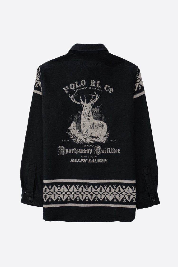 - 신형 폴로 랄프로렌의 스포츠맨 셔츠입니다. 울처럼 가공 된 면 원단이 도톰하니 따숩게 생겼습니다. 전반적으로 사용감이 있고 그렇습니다. 뒷 편엔 작게 물이 빠진 부분이 있습니다.
