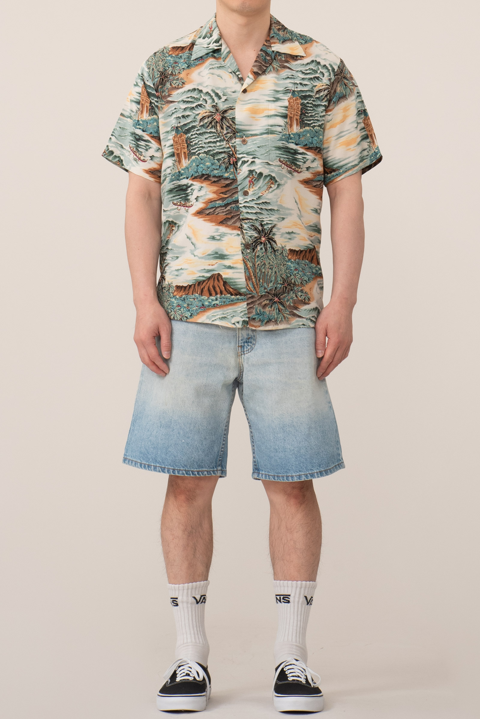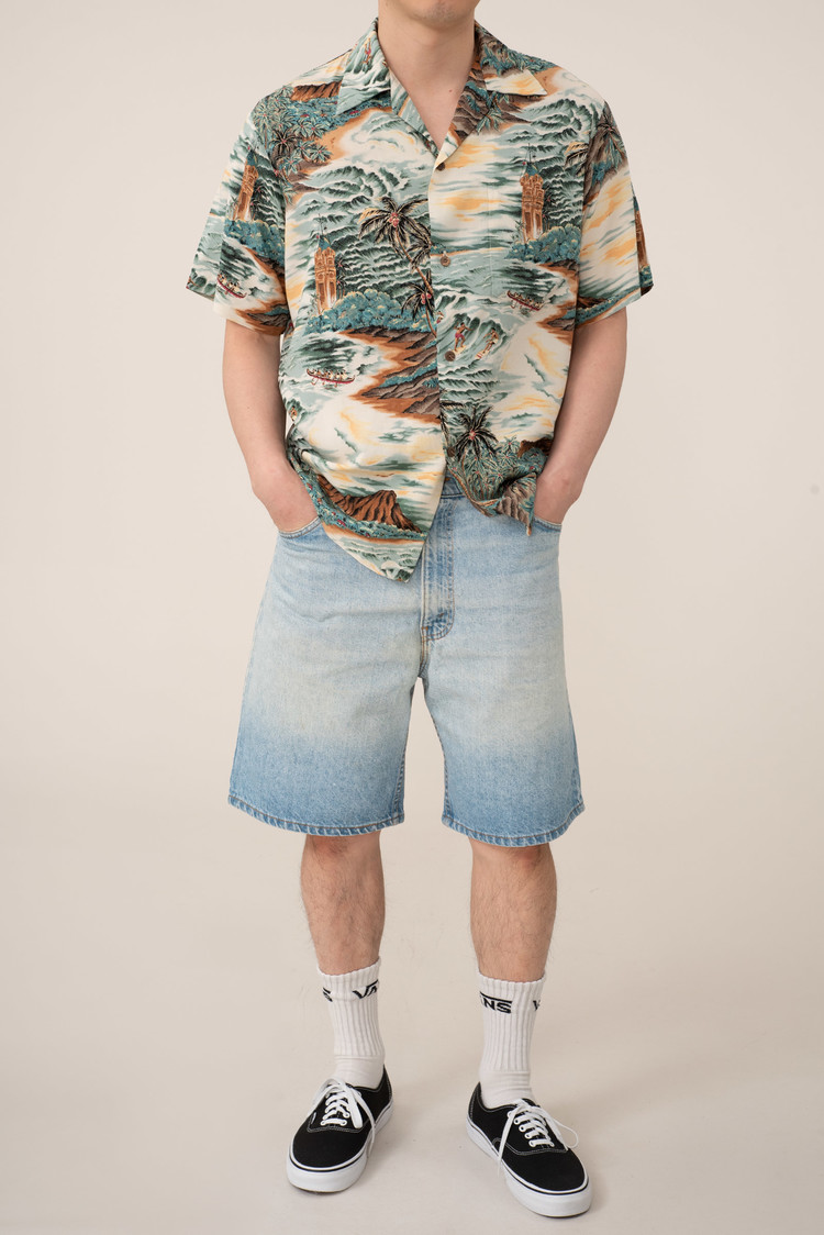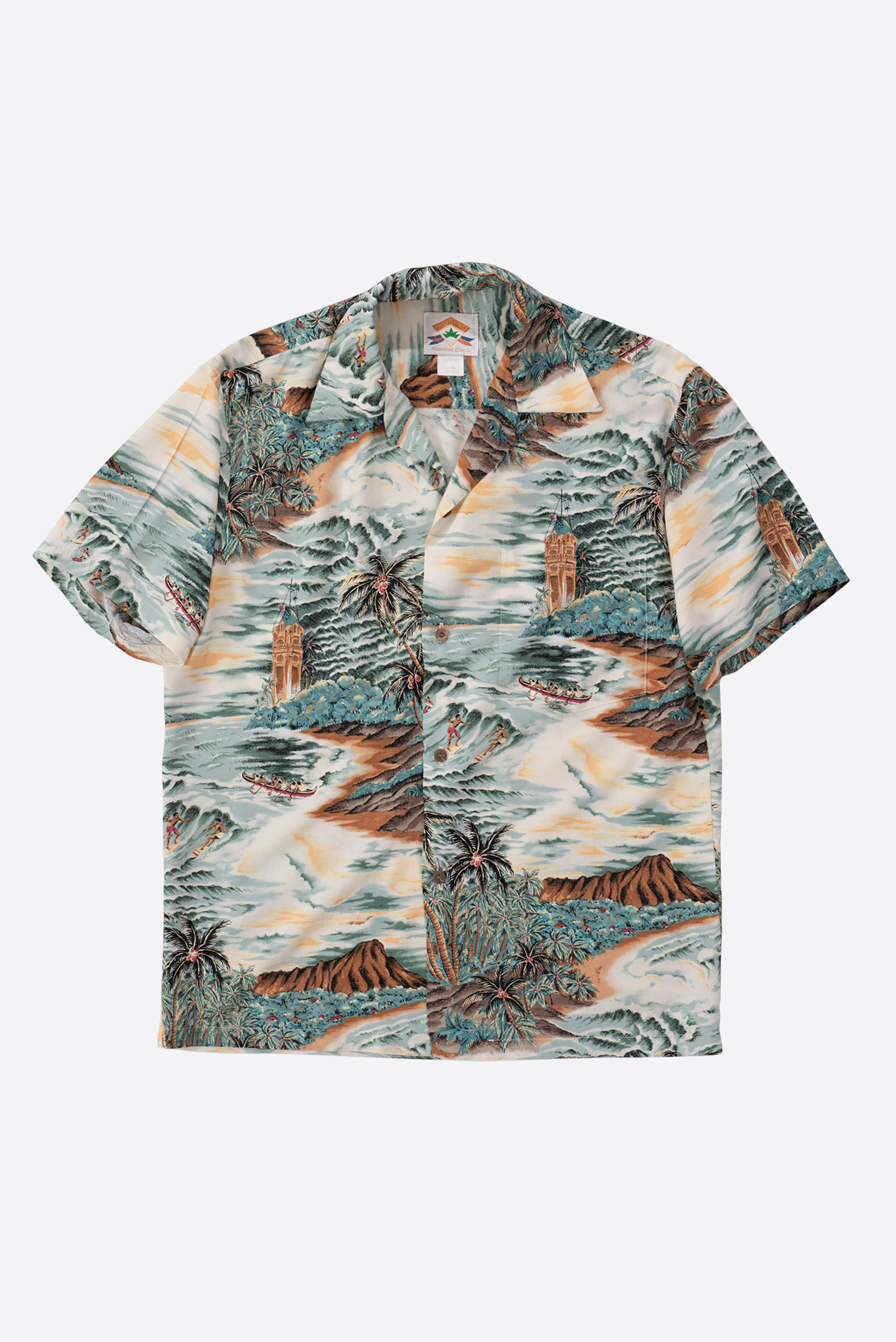 - 하와이 로컬 브랜드인 파인애플 주스의 90 년대 하와이안 셔츠입니다. 때가 타거나 하진 않았는데요. 셔츠 바탕색이 약간 누리끼리해서 때가 탄 것 같은 그런 느낌입니다(ㅎㅎ). 원단 시원하니 좋습니다. 100 추천쓰..