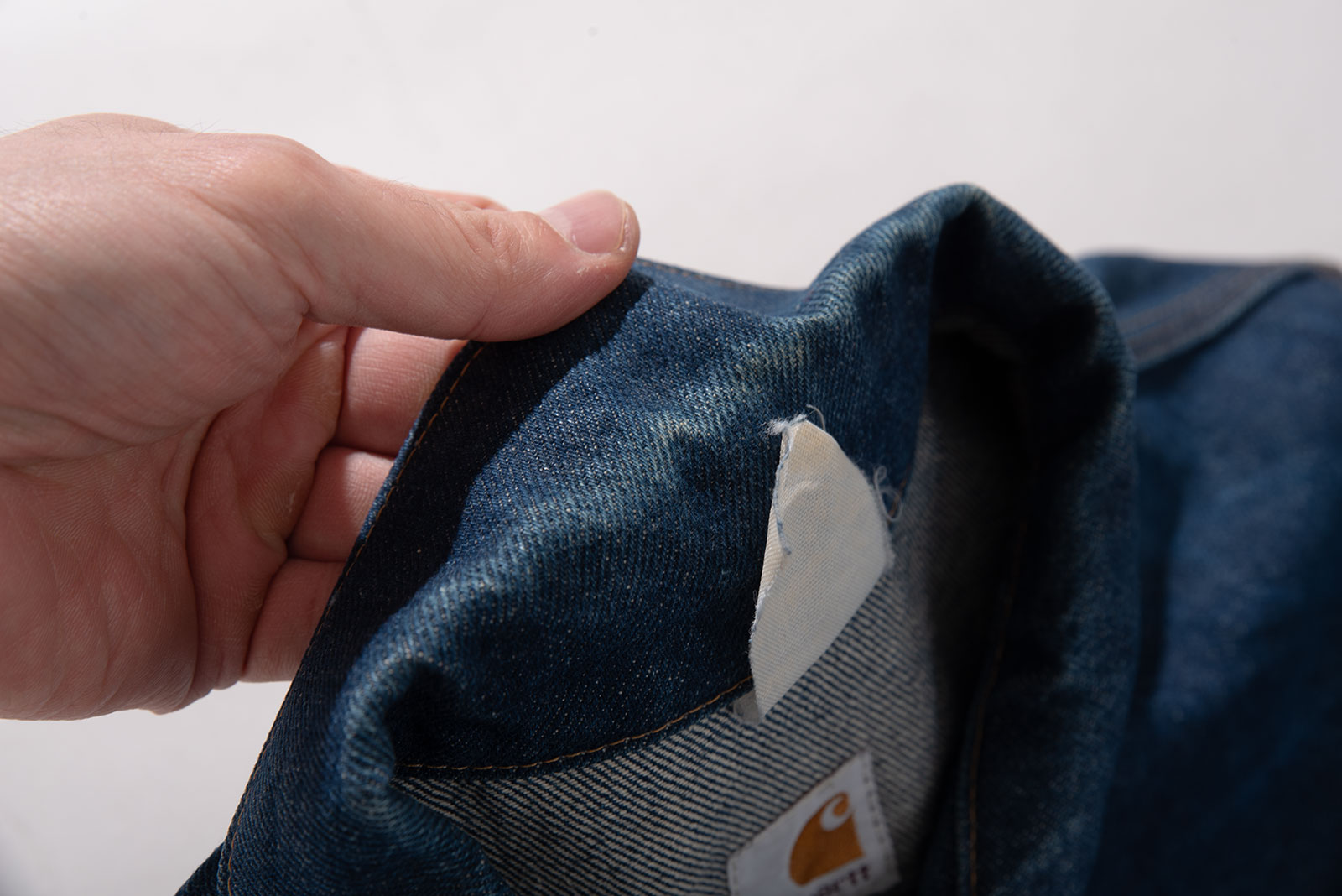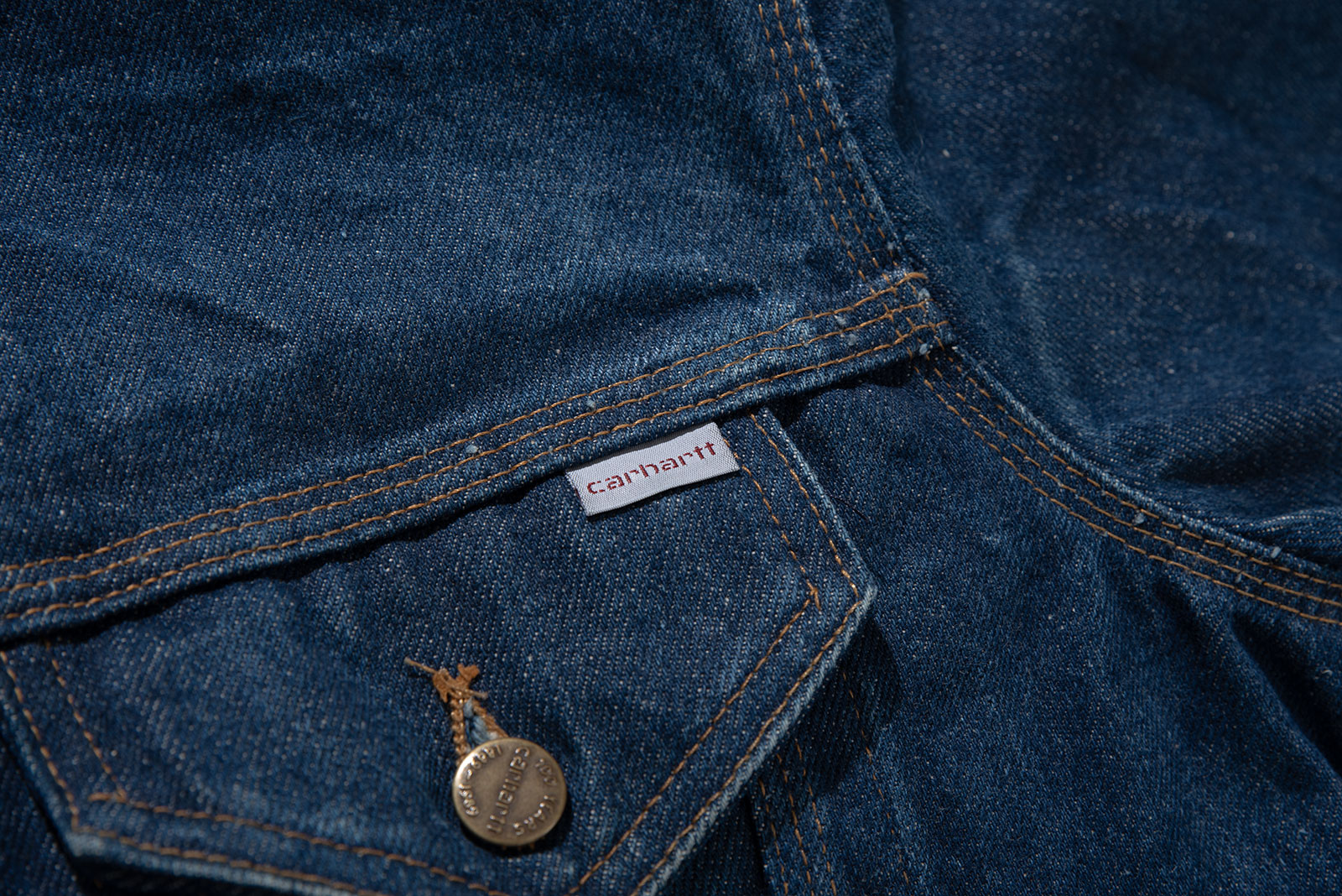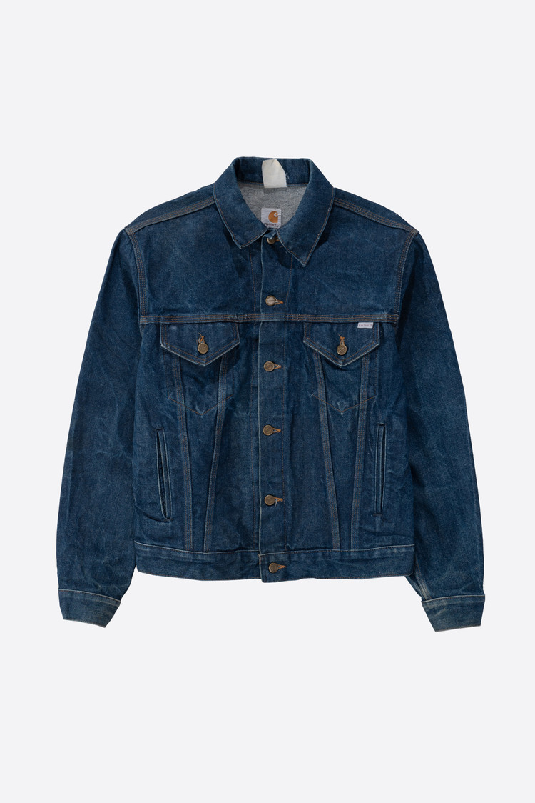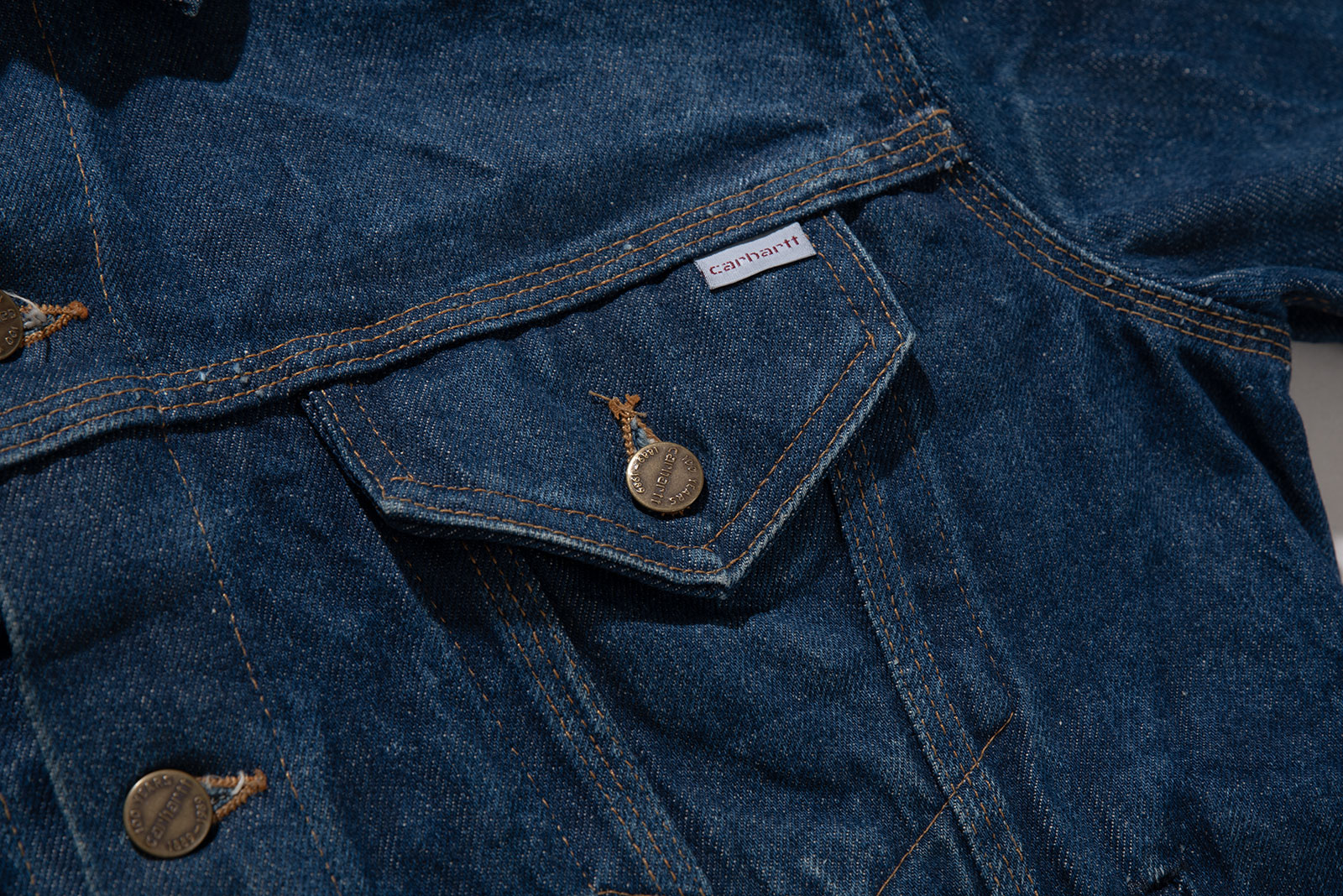 - 89 년 제작 된 칼하트 빈티지 트러커입니다. 표기 42 사이즈로, 국내 100 정도의 사이즈 감이에요. 두툼하고 빳빳한 원단이라 페이딩 만들어 길들여가며 입으면 아주 재미있을 것 같습니다. 전반적으로 사용감이 있으며 물이 이제 슬슬 날리려고 스텝 밟고 있습니다.