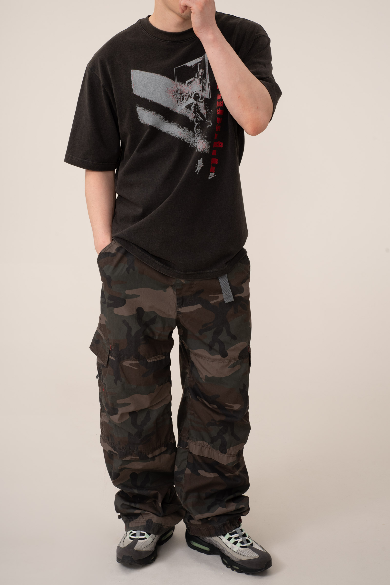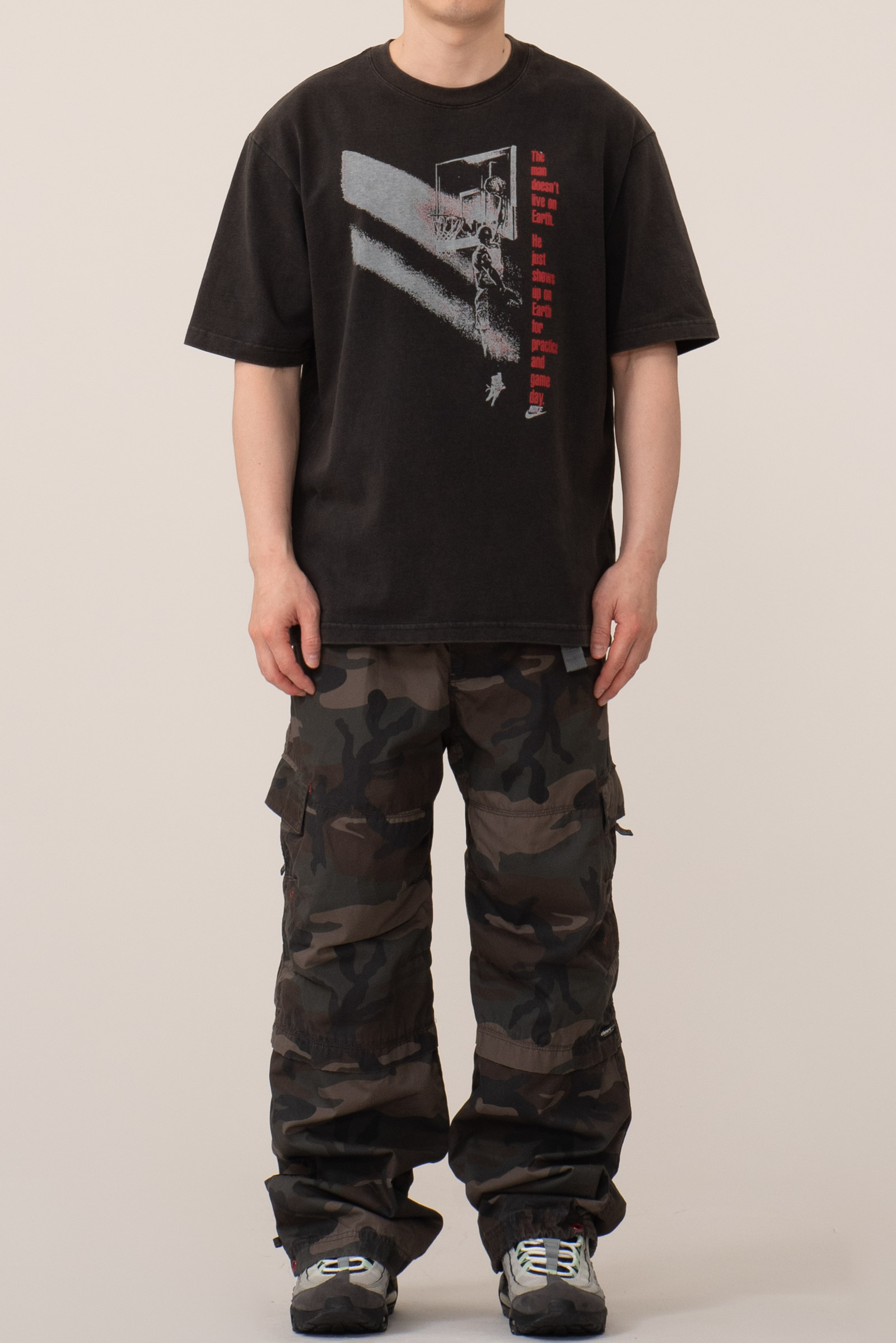 - 현행 조던 티셔츠입니다. 전체적으로 물이 빠졌습니다. 사용감이 느껴지고 티가 나는 컨디션이니 참고하셔요.