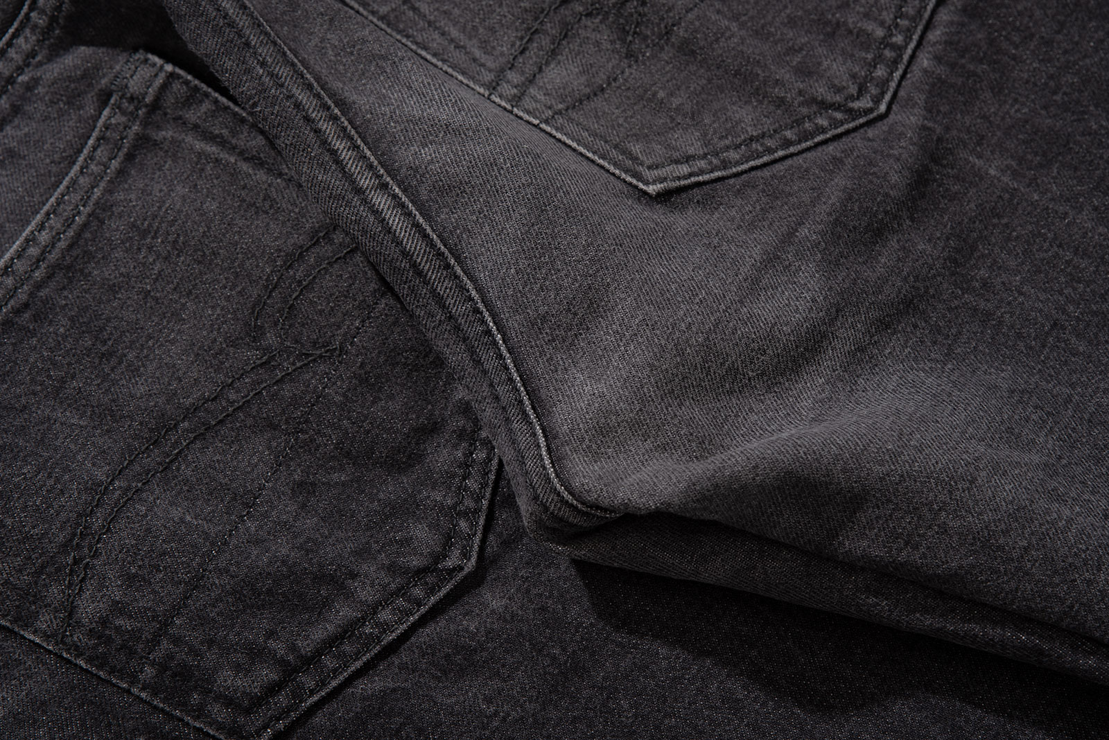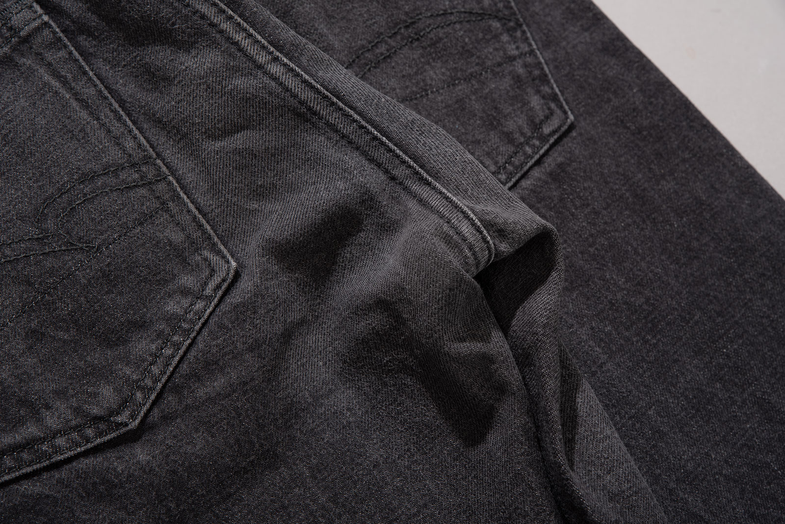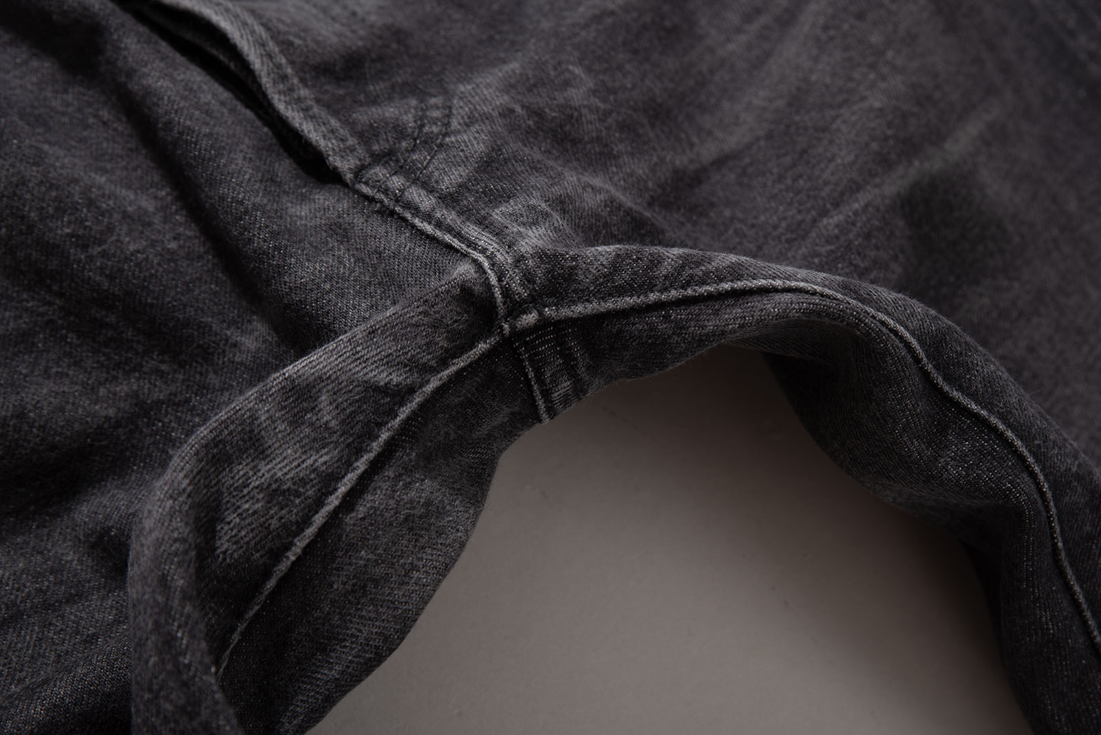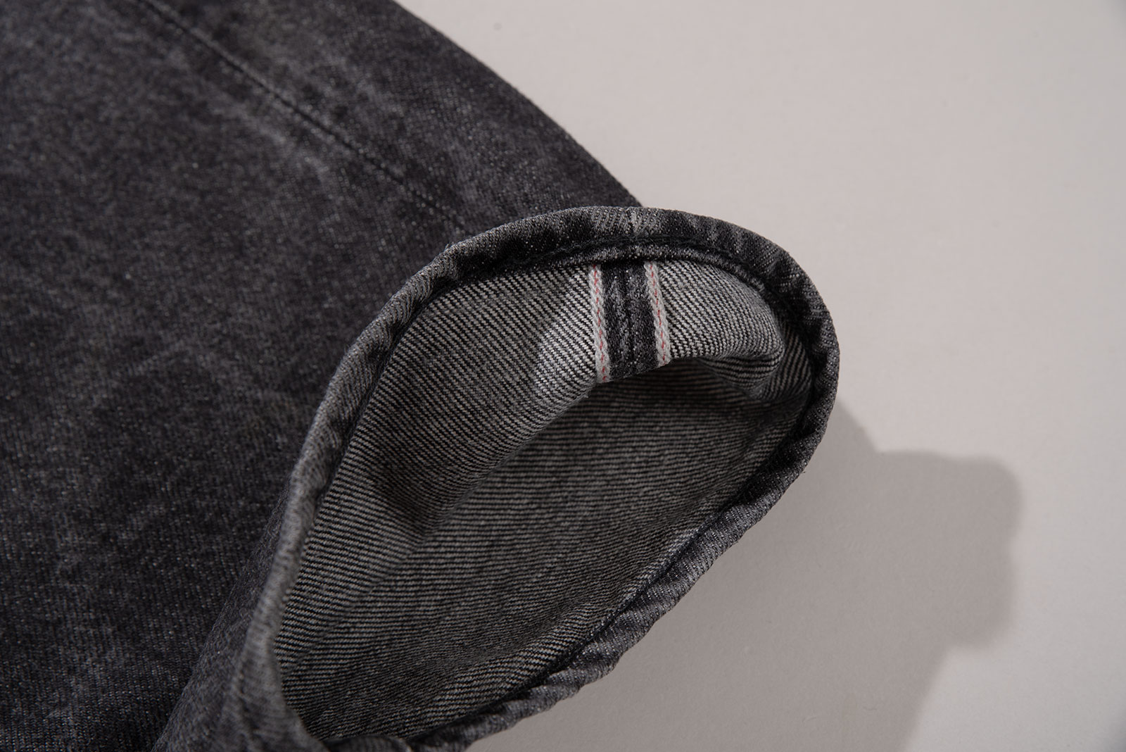 - 스튜디오 다치산의 GL-001 모델입니다. 아이비 테이퍼드 핏으로, 깔끔하게 떨어지는 밑단이 특징입니다. 수축이 되어서 27 인치 정도 된 것 같은데, 아무튼 워싱도 많이 진행되고 그렇습니다.