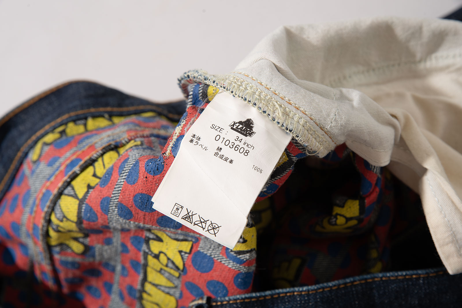 - 엑스- 라지의 페인팅 데님입니다. 안감까지 페인팅이 되어 있어 밑단을 접어 올리면 아주 화려해지는.. 그런 바지죠. 여름엔 안감의 페인팅으로 몸에 달라 붙어 아주..불쾌한(?) 착용감에 예민해지지 않을까 싶은..ㅋ 여름은 피해서 입어주셨음 하는.. 그런 바지입니다.