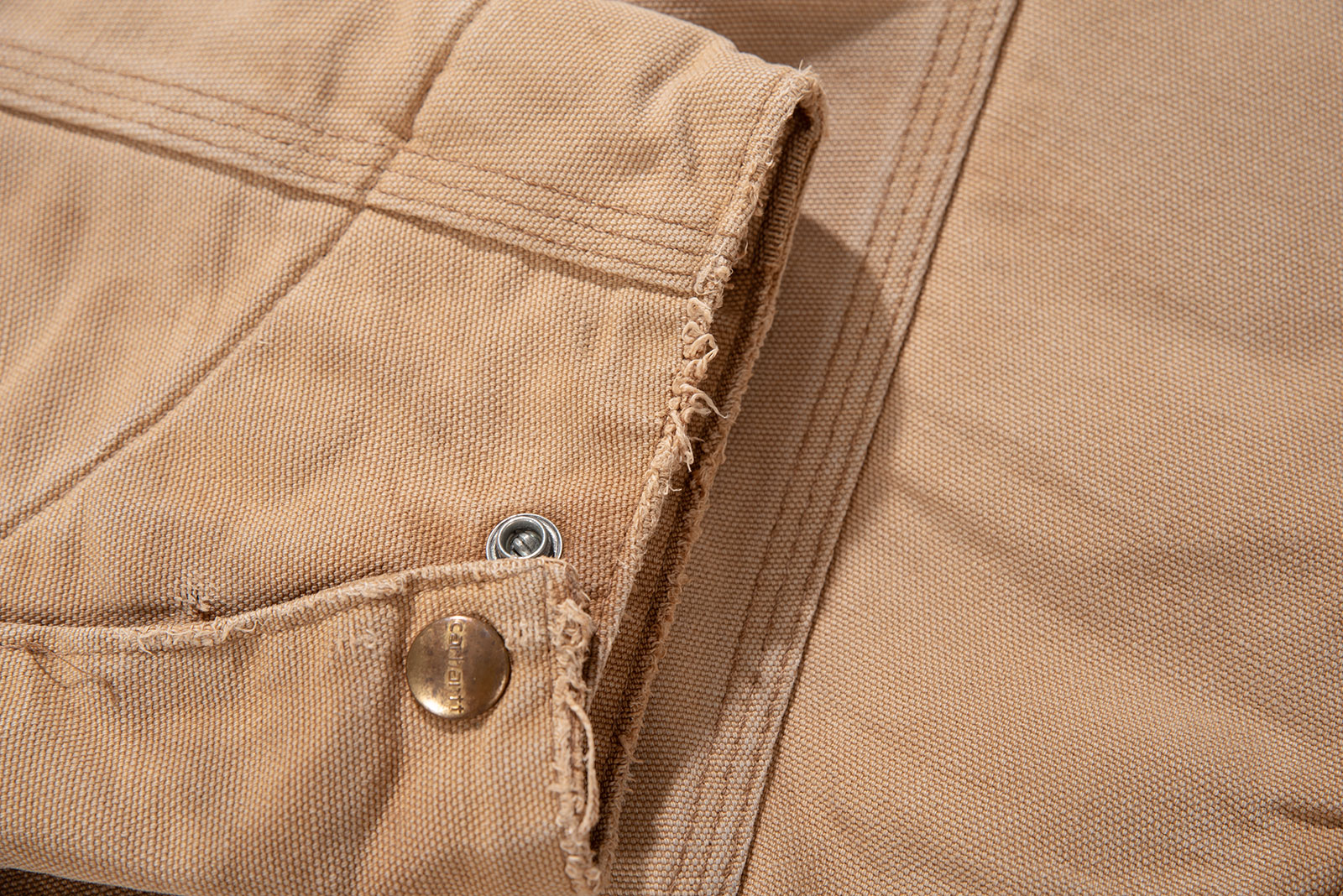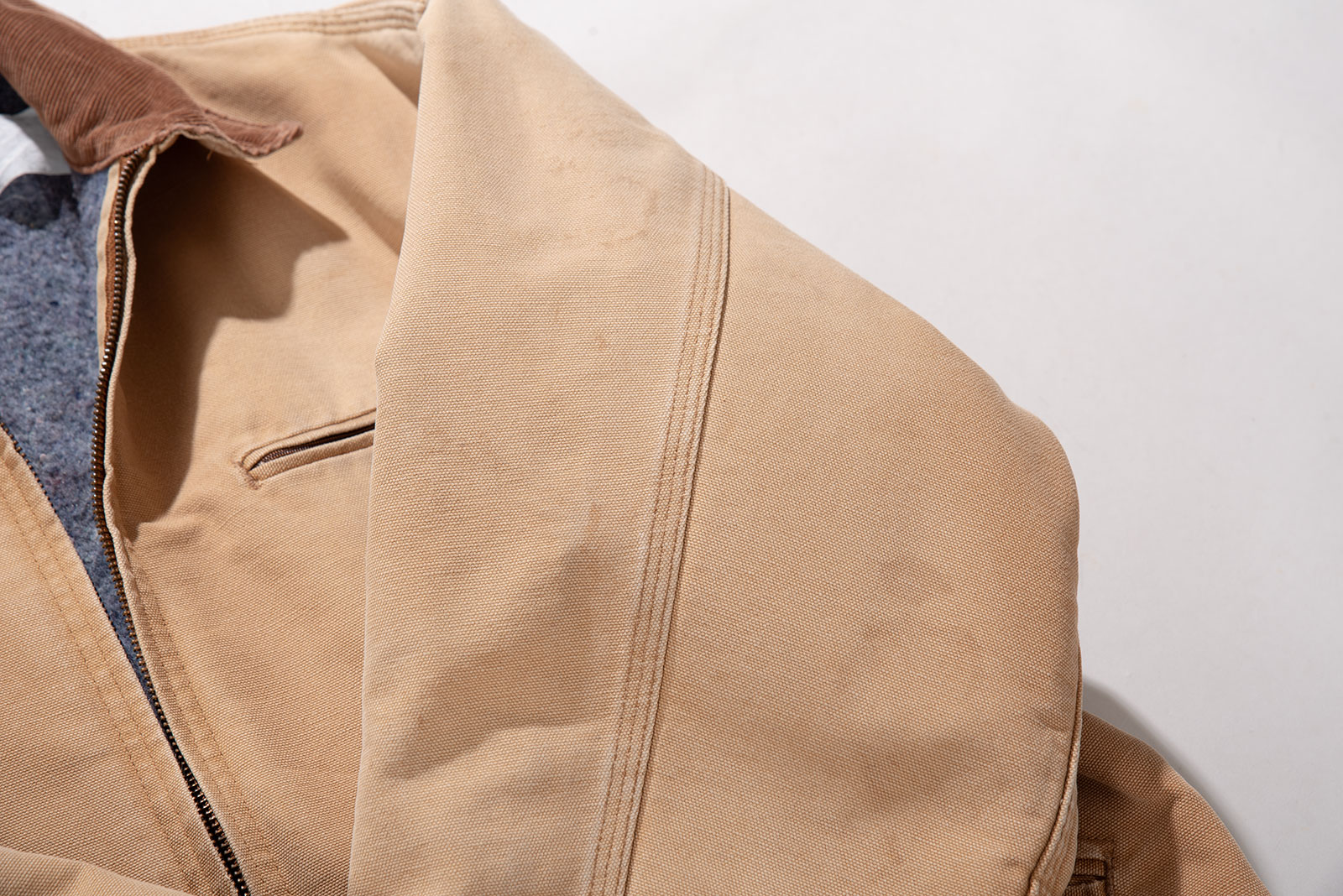 - 80 년대 제작 된 칼하트 6BLJ 디트로이트 재킷입니다. 팔까지 블랭킷이 덧대진 제품으로, 복부 주머니에 칼하트 탭으로 장식 된 것이 큰 특징인 제품이죠. 연식 대비하면 좋은 컨디션 유지하고 있습니다만, 그래도 오염이 있고 닳은 부분이 있습니다. 그렇기에 멋스러운 재킷이죠. 100-105 정도 입는 분이 착용하시면 좋을 사이즈 감이에요. 몸에 꼭 맞게 입으실 분은 105- 108? 정도 될 것 같은데, 실측 꼭 비교 후 구매부탁드립니다.