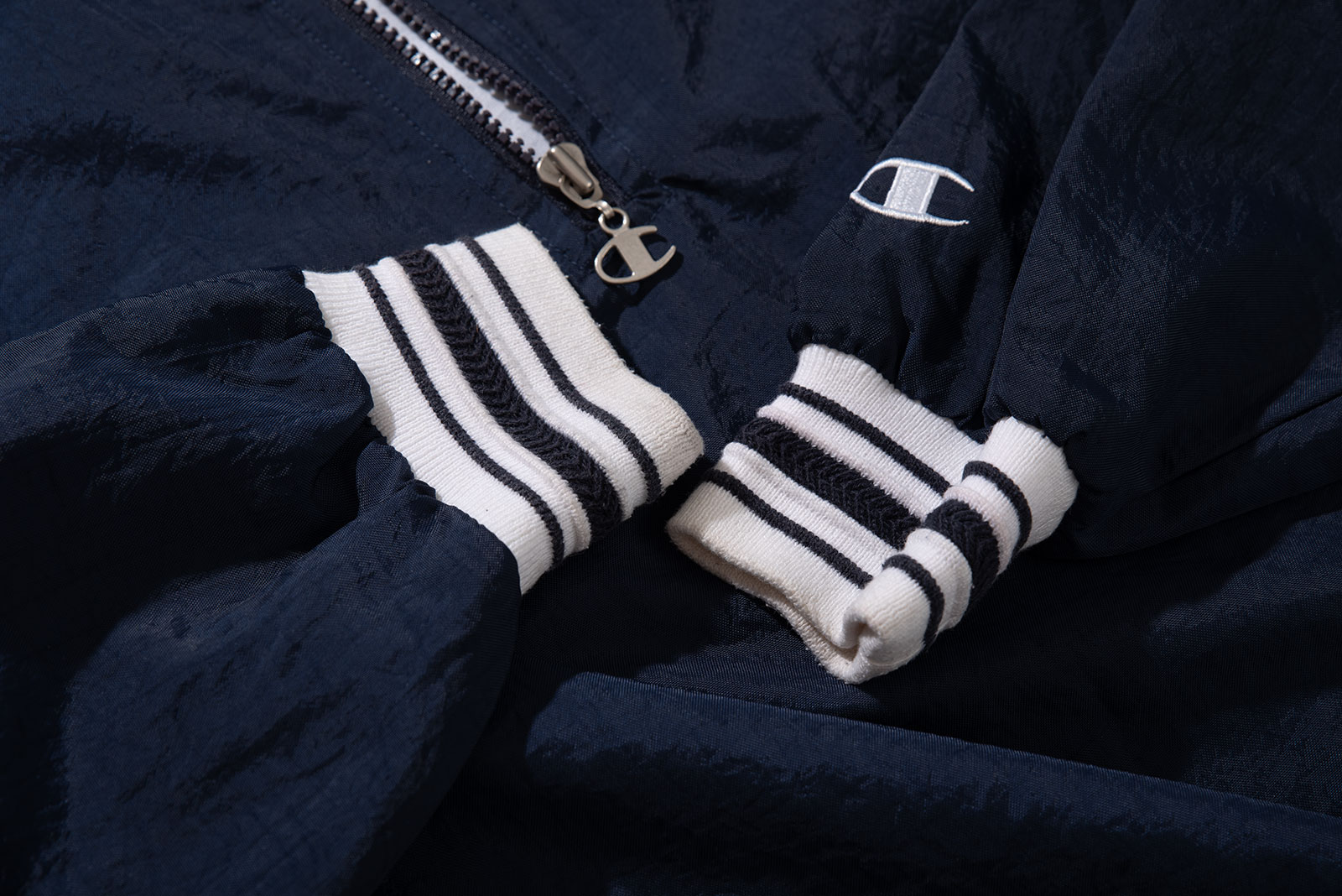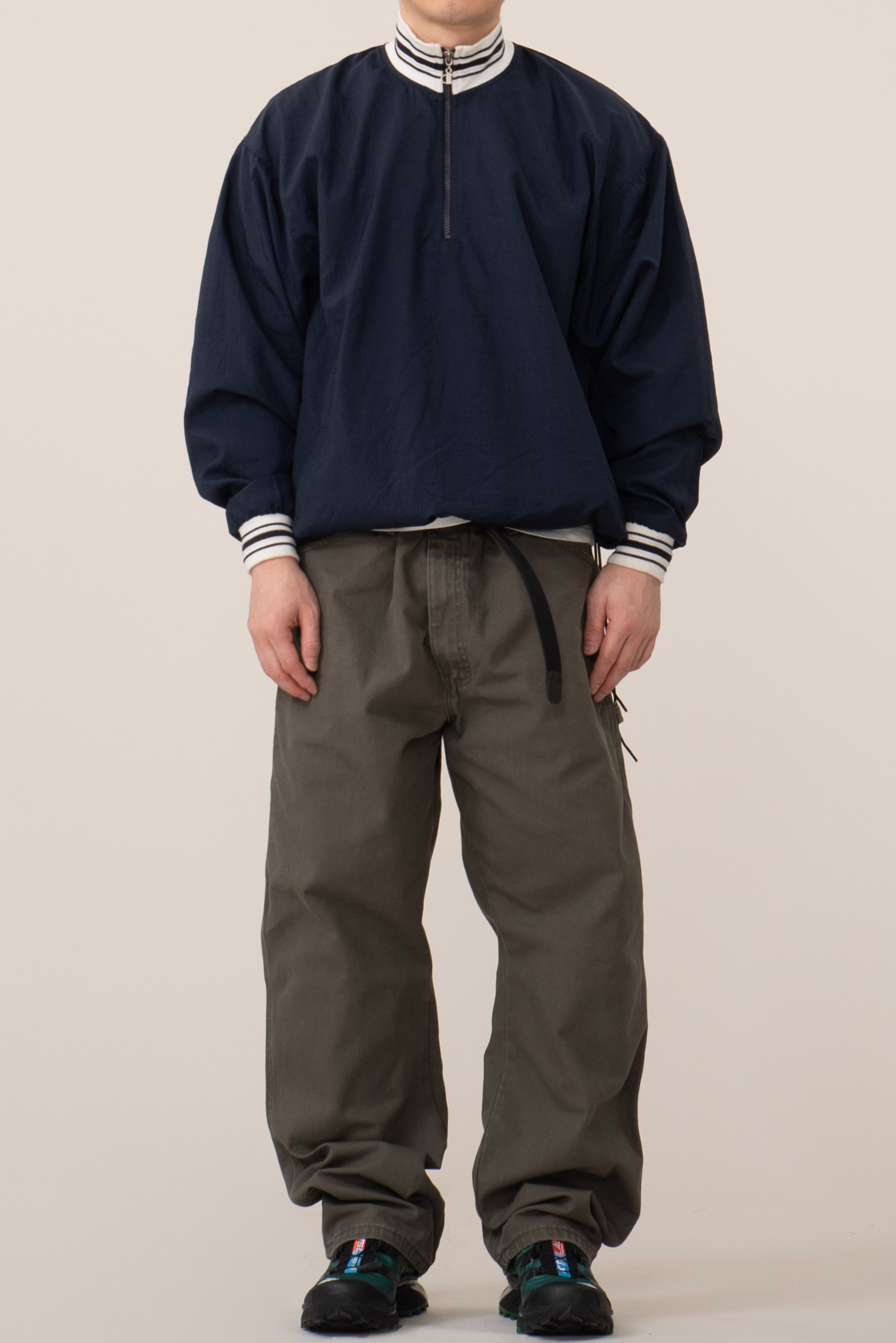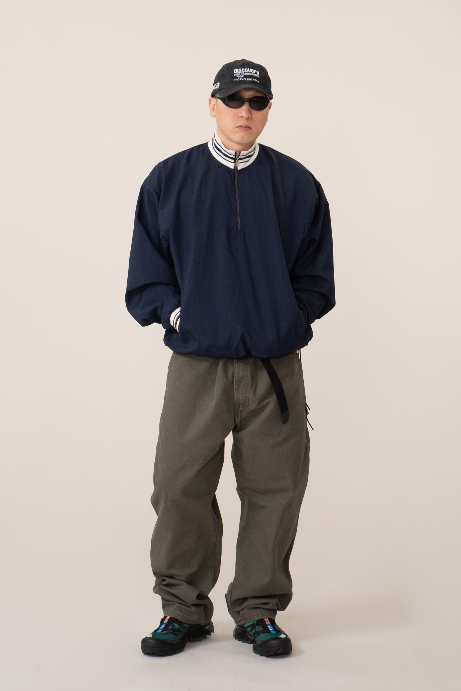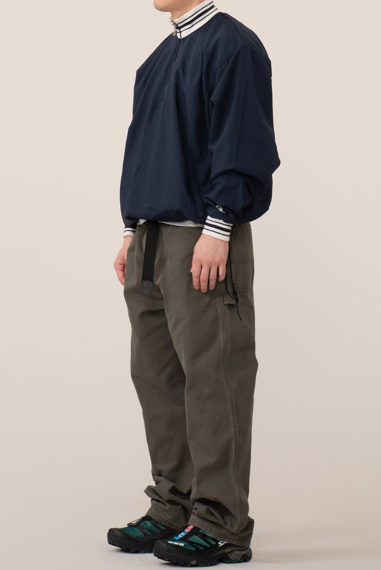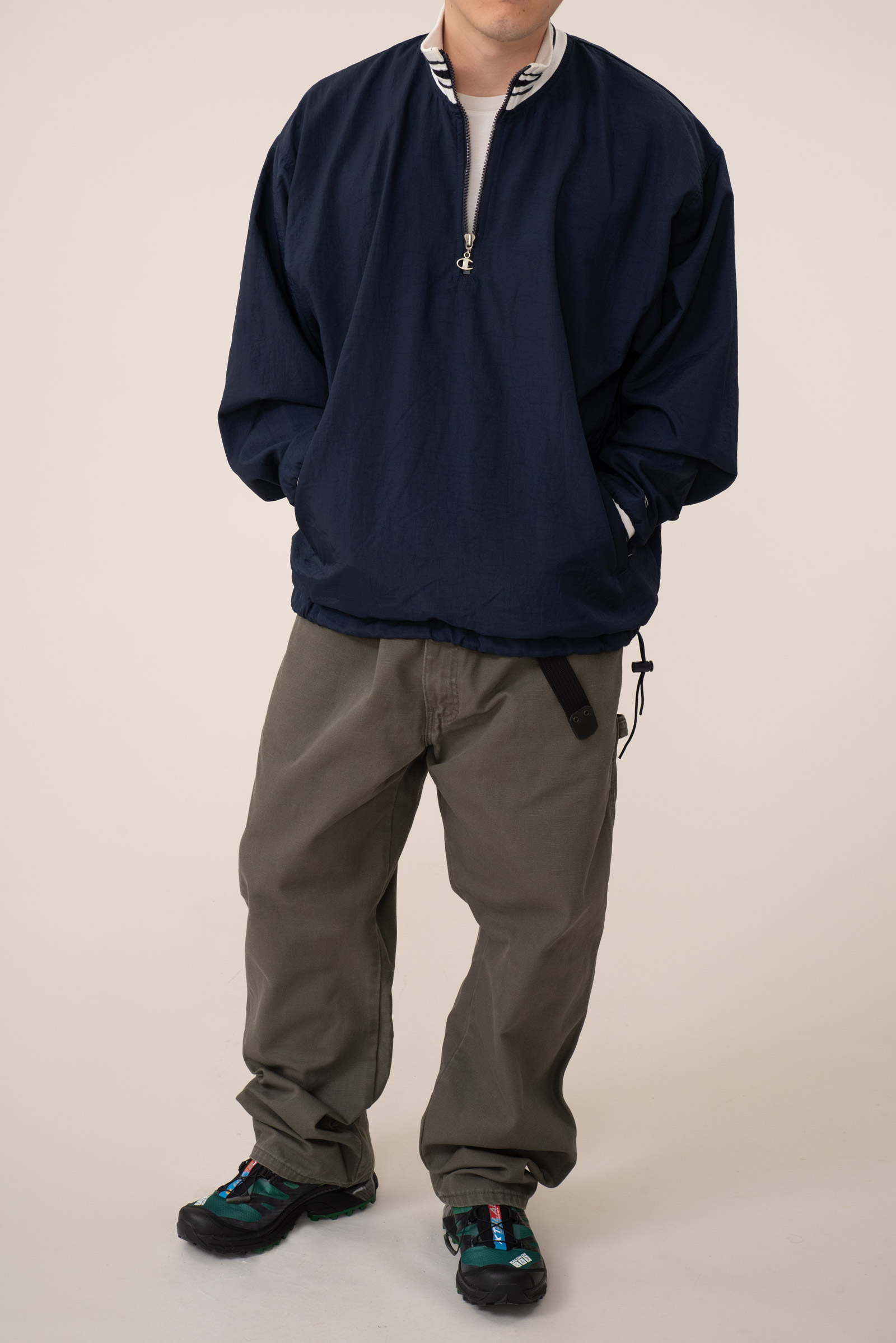 - 챔피온의 빈티지 하프 집업 나일론 웜업입니다. 꽤 유니크 한 디자인이죠. 지퍼가 좀 뻑뻑하긴 한데, 작동은 잘 됩니다. 전반적으로 사용감이 느껴지긴 합니다만 큰 대미지없이 좋은 컨디션 유지하고 있어요. 요런 아이들이 이젠 구경하기 참 어려워졌죠. 밑단을 스트링으로 여며 입어도 좋고, 걍 풀어서 아노락처럼 입어도 아주 멋진 제품입니다.
