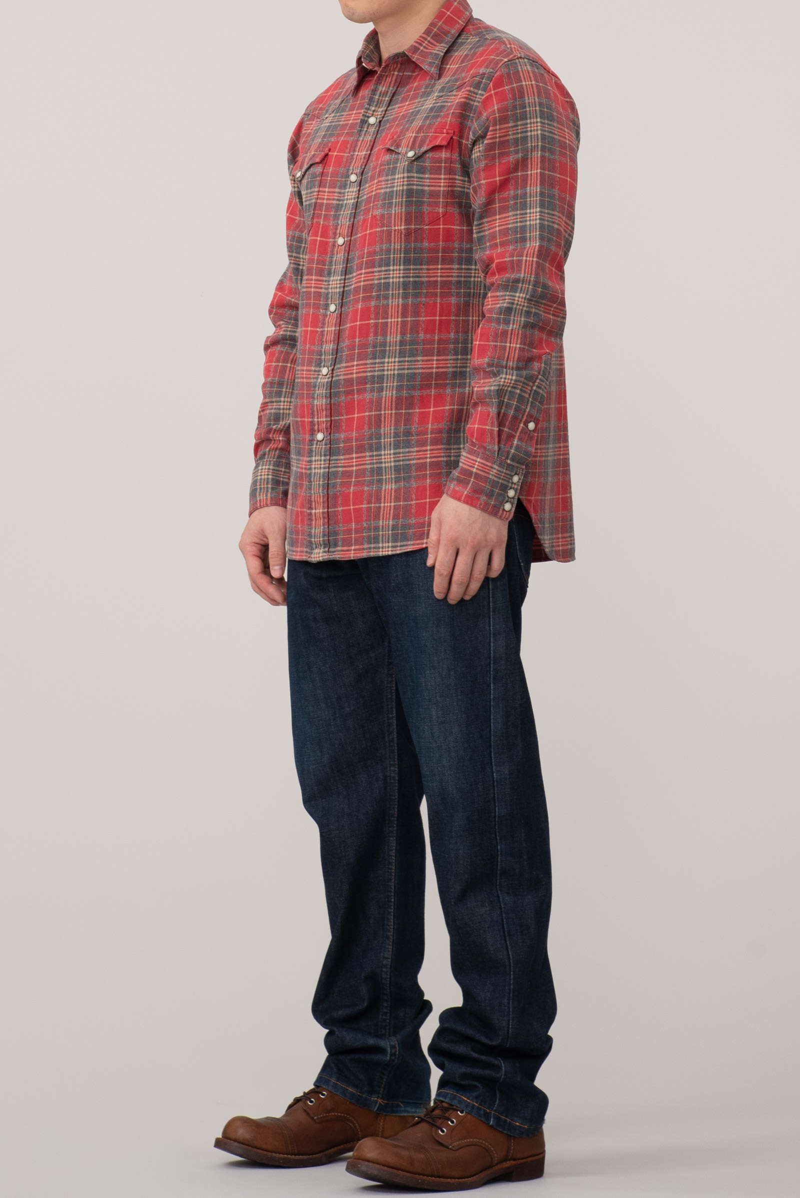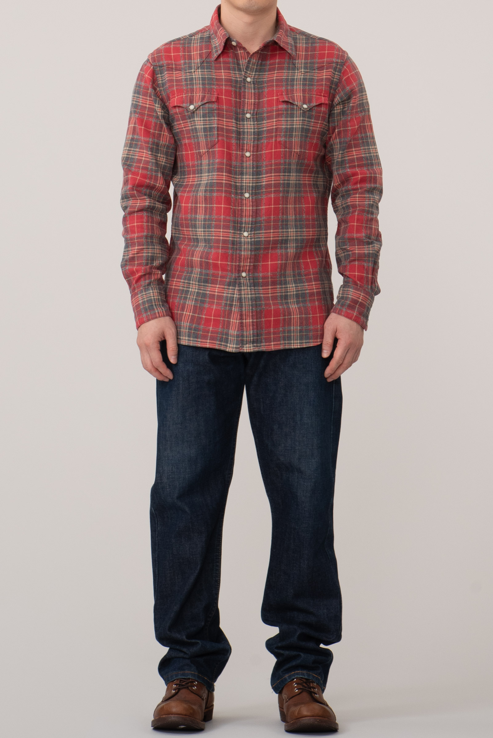 - 온화한 컬러링의 폴로 웨스턴 체크 셔츠입니다. 봄 가을에 참 잘 어울리는 디자인이고 색상이죠. 100 정도의 사이즈 감입니다. 컨디션 말끔하니 좋아요.