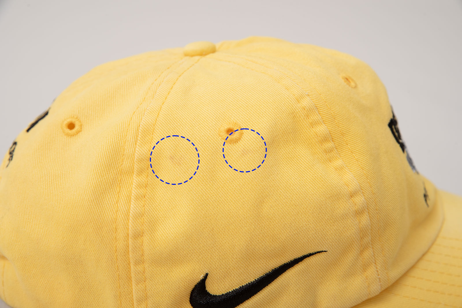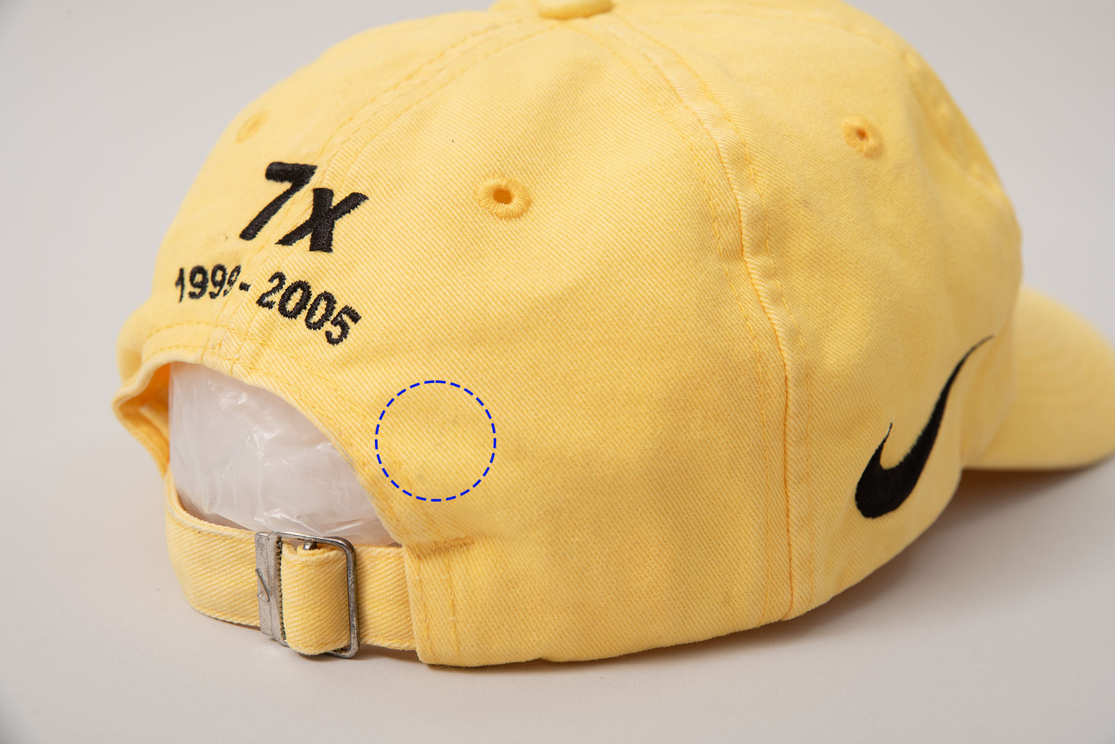 - 에미넴의 모자를 연상케 하는 햇병아리같은 귀여운 노란색의 나이키 디스커버리 채널 사이클링 팀 볼캡입니다. 검은색이 주를 이루는 제품이고, 생산 된 시기에 따라 자수의 위치가 조금씩 바뀌어 출시가 되었습니다. 소개하는 제품은 깨끗한 컨디션이나 어디서 기름 때를 묻혀 왔는지, 전체적으로 오염이 있어 전문 세탁을 한 상태입니다. 그럼에도 오염이 눈에 띄죠. 세탁으로 인핸 수축이 생겨 깊이감이 뚜껑에서 약간 더 내려오는 수준입니다. 폴로 볼캡하고 비슷한 착용감이라 해야하나...아무튼 그래요.