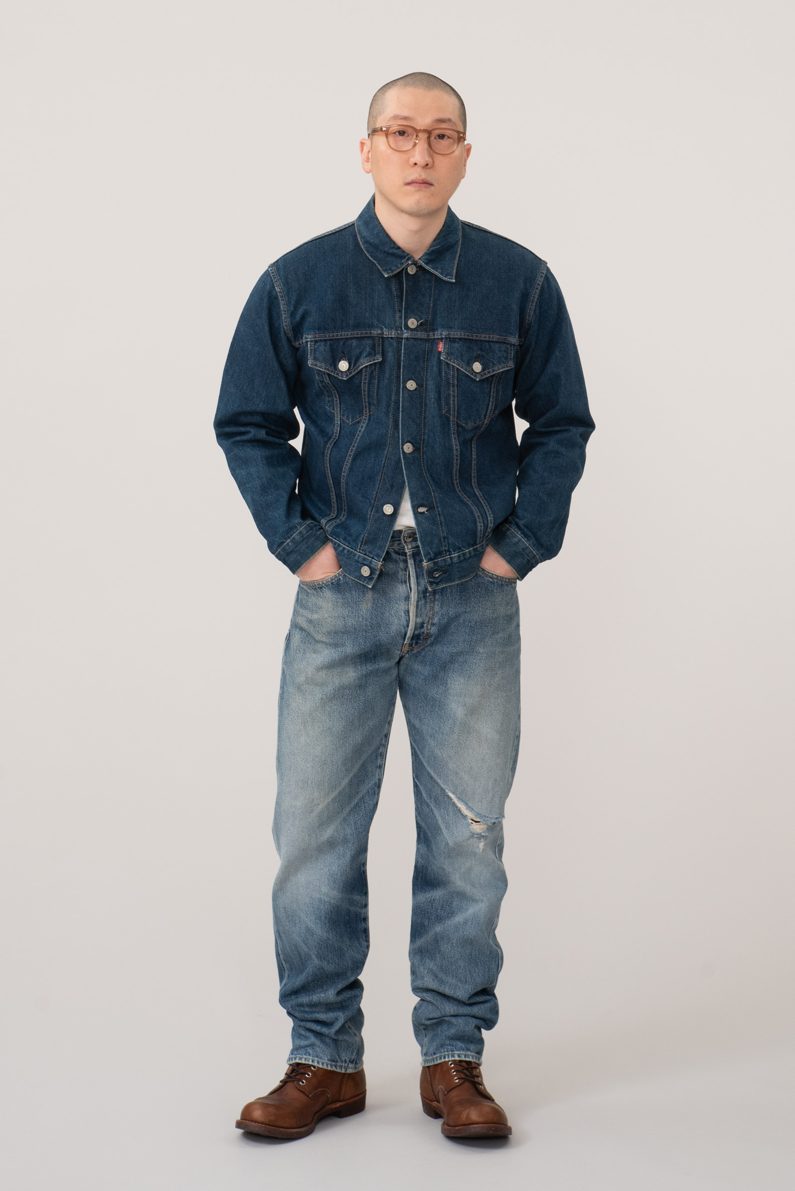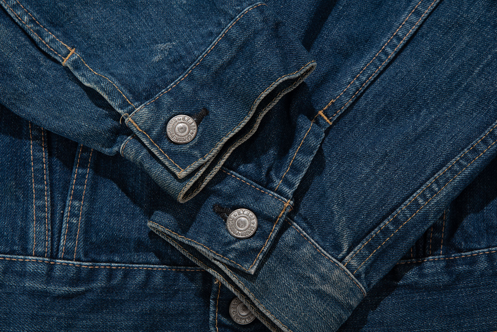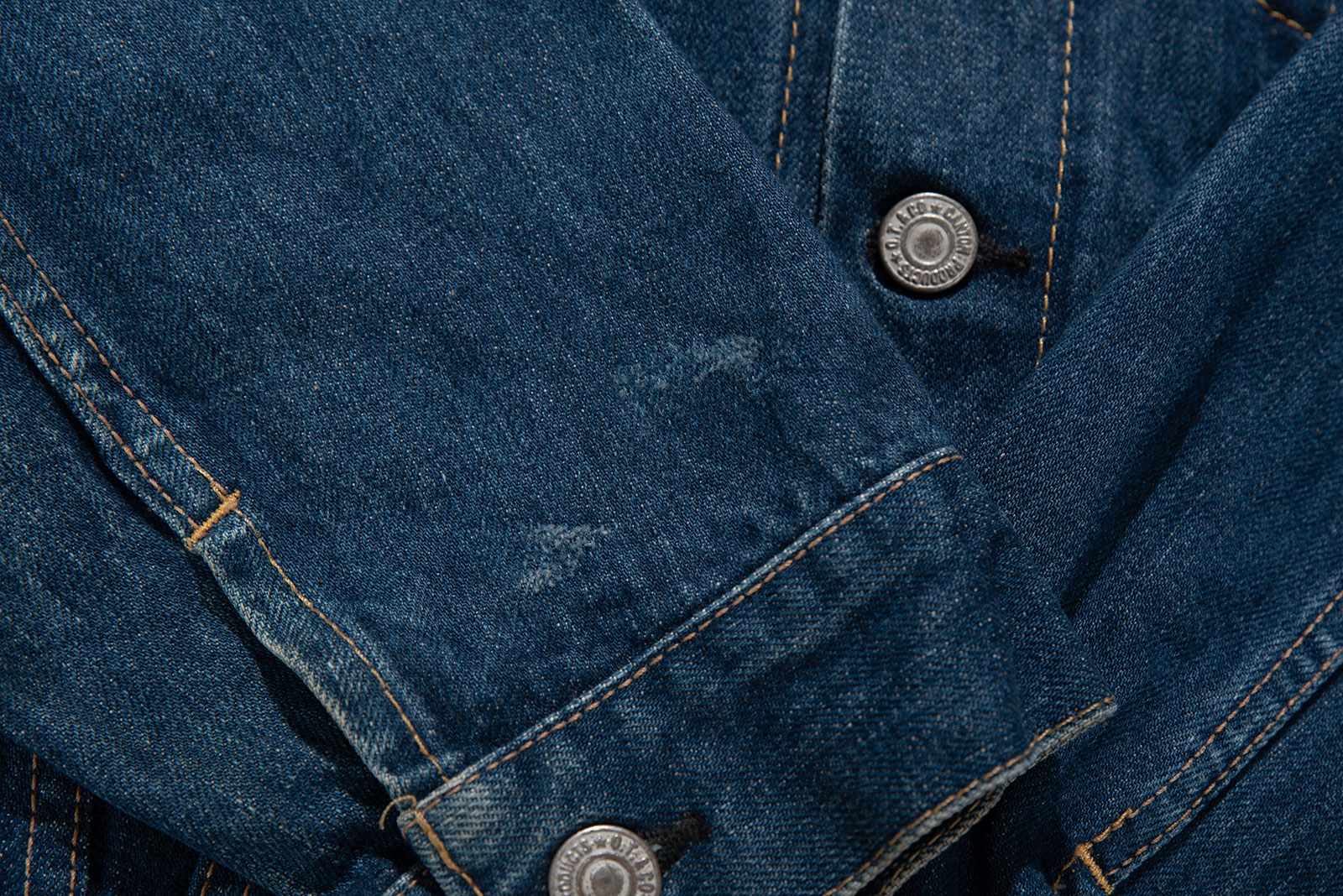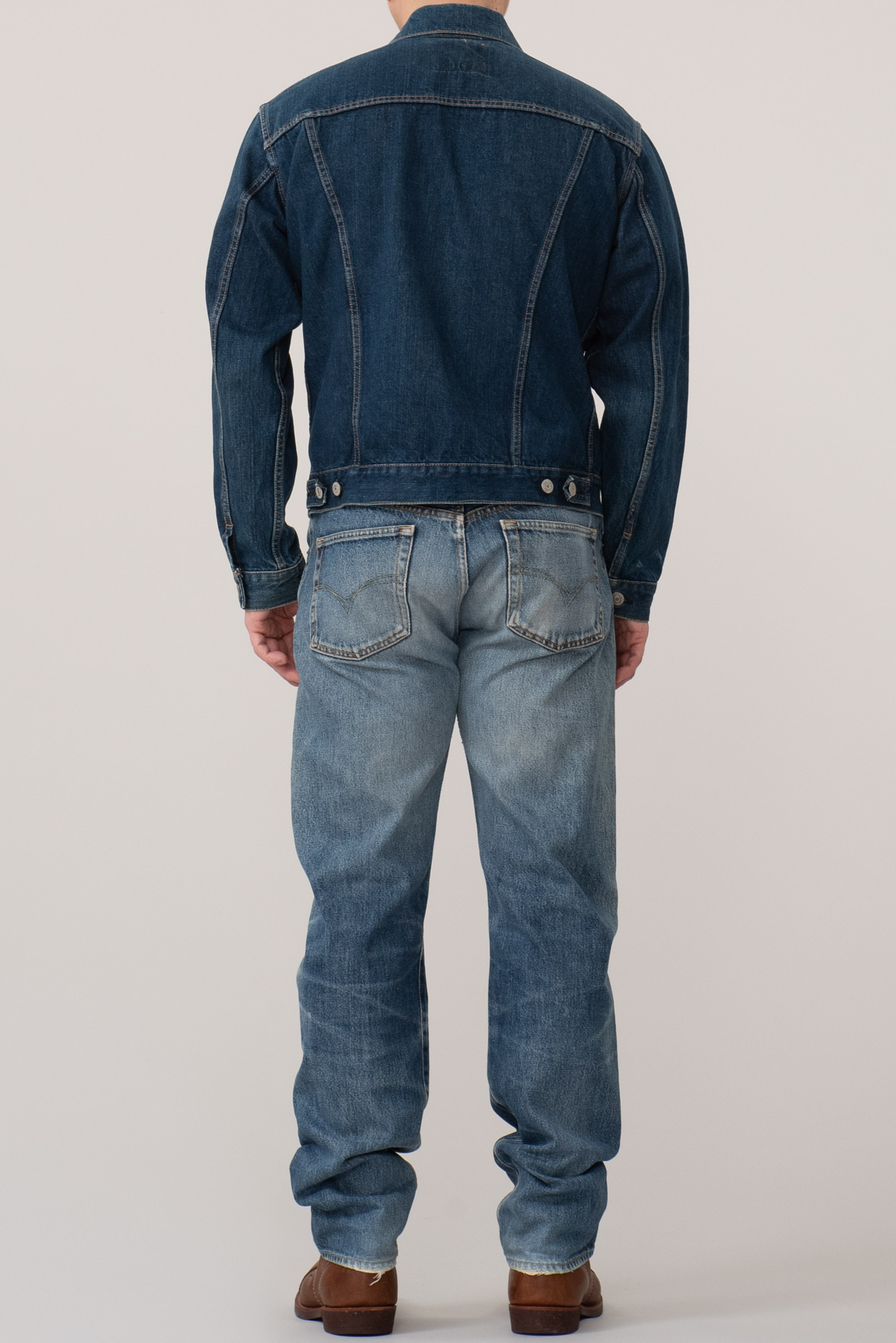 - 일본의 데님 역사의 시작이라 할 수 있는 캔톤의 90 년대에 제작 된 셀비지 3rd type 트러커입니다. 현행 글로벌 LVC에서는 찾아 볼 수 없는 단단하고 부드러운 풍미와 박력있는 어깨와 가슴 쉐입이 일품인 제품이지요. 분위기도 좋지만, 서구의 완력을 경외했던 60 년대부터의 긴 역사를 가진 재킷으로, 미국발 세계화의 신자유주의가 전세계로 뻗어나가던 90 년대 일본이 데님의 선진화를 일궈 낸 역설적인 사조의 흐름을 볼 수 있는 재미있는 히스토리를 담고 있기도 한 제품입니다. 전반적으로 사용감이 있긴 합니다만 즐기기엔 문제없는 수준입니다. 100 입는 분이라면 잘 맞겠어요.
