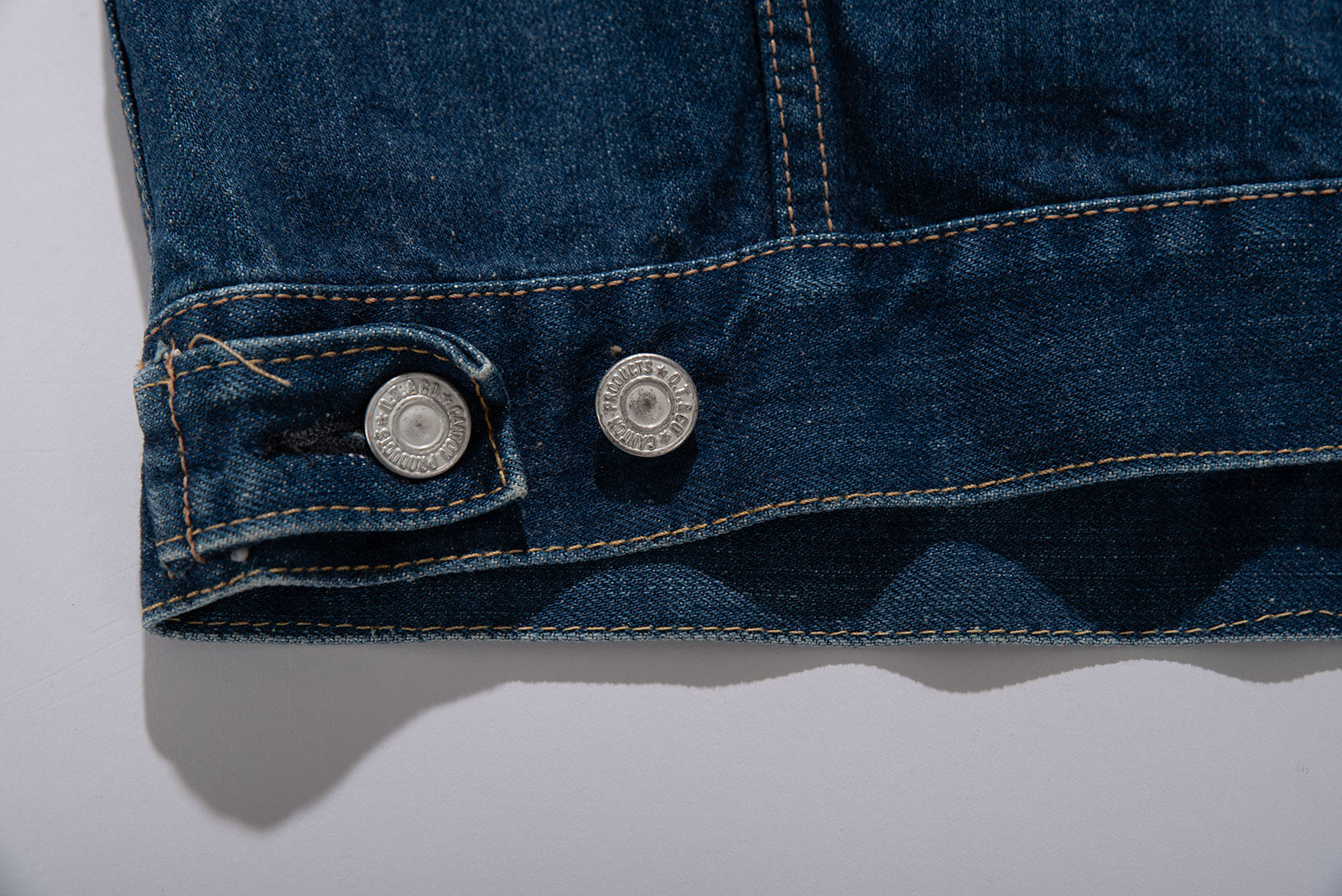 - 미국의 완력에 불평등조약을 맺으며 개국한 일본은 제 2차 세계대전에서도 미국에 의해 패망을 앞당기게 되면서 서구의 모든 것을 두려워하는 동시에 동경하기에 이르렀습니다. 외경하는 문화적 현상이 극에 달했던 60 년대의 일본에는 미국산 만큼 네임벨류가 확실한 것도 없었습니다. 그런 배경 아래 일본으로 Levi's 와 Lee의 유통을 도맡던 오오이시 무역과 마루오 피복이 미국 섬유 브랜드인 캔톤 텍스타일 밀즈社의 데님과 타론社 지퍼, 스코빌社 리벳을 수입하여 일본에서 봉제한 데님 브랜드가 지금 소개하는 캔톤입니다. 이후 마루오피복은 콘 밀 데님 원단을 바탕으로 빅존을 론칭하게 됩니다.