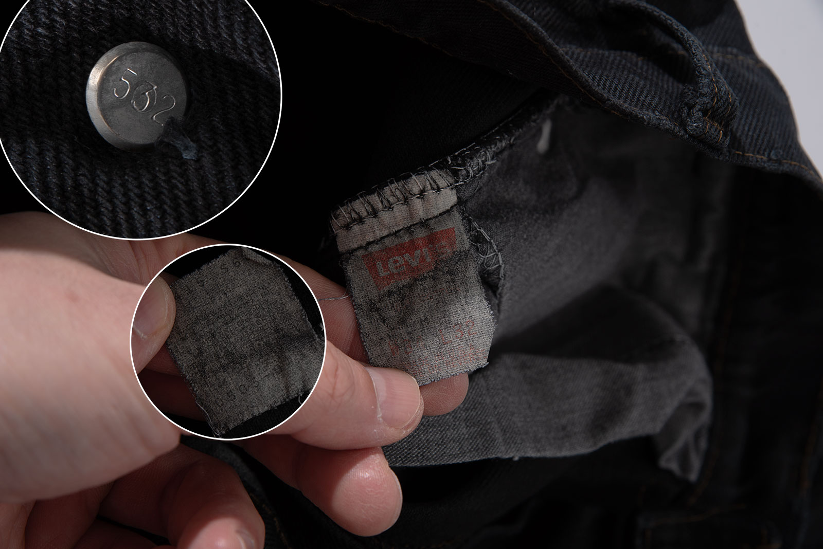 - 미국에서 생산 된 560 빈티지 팬츠입니다. 연청 컬러에 검은색으로 재염색을 시킨 제품입니다. 사용감이 아주 많이 느껴지는 제품이에요.
