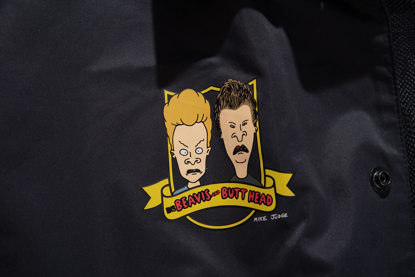 - 90 년대 미국 문화의 아이콘이라 할 수 있는 M tv의 병맛 애니메이션 비비스와 버트헤드 콜라보 아디다스 스케이트 보딩 코치 재킷입니다. 만화 자체가 워낙 병맛이라 나의 건방짐(?) 반항기를 거침없이 표현할 수 있는 그런 재킷이죠.