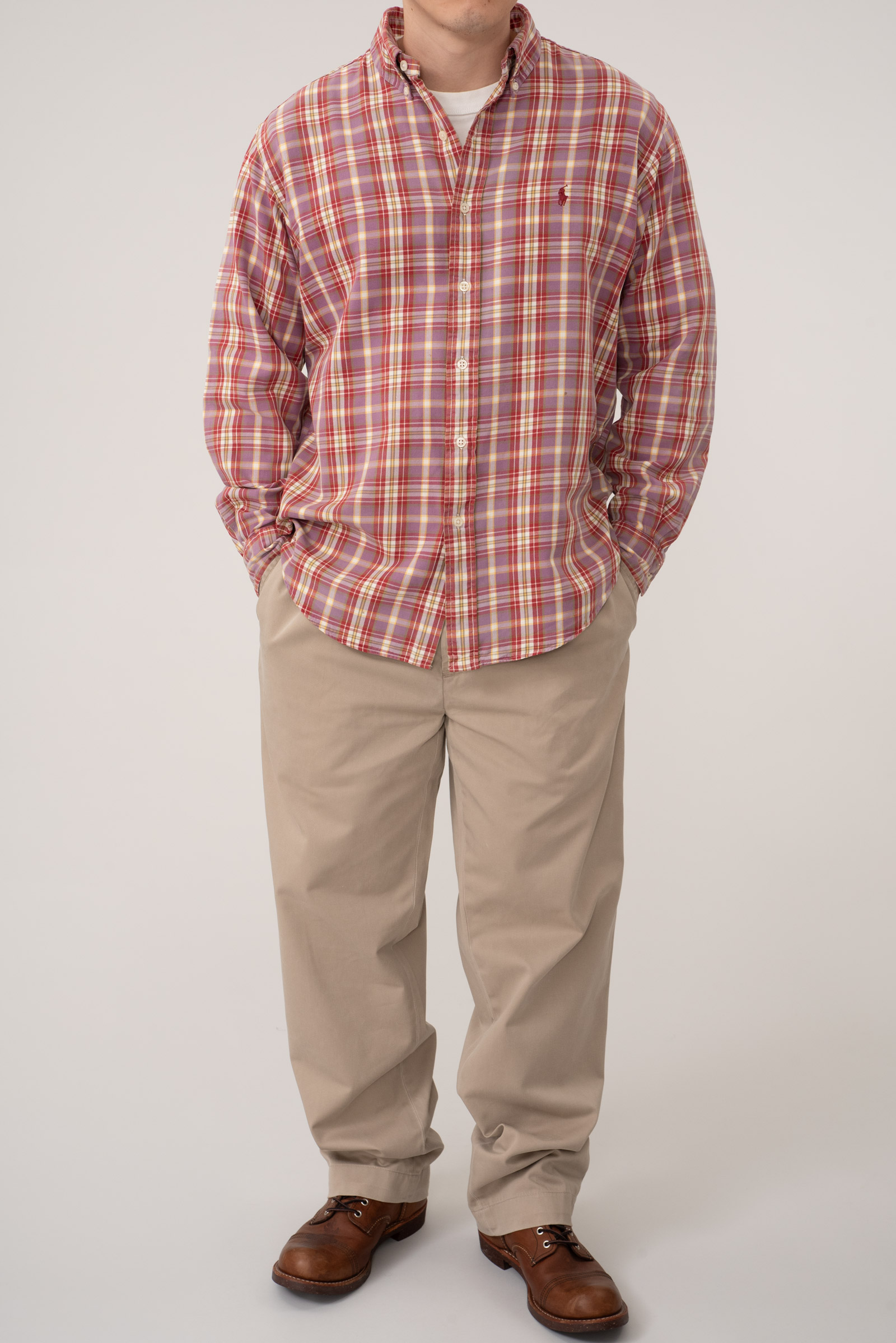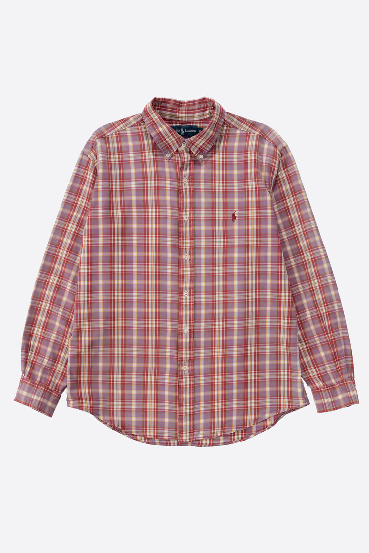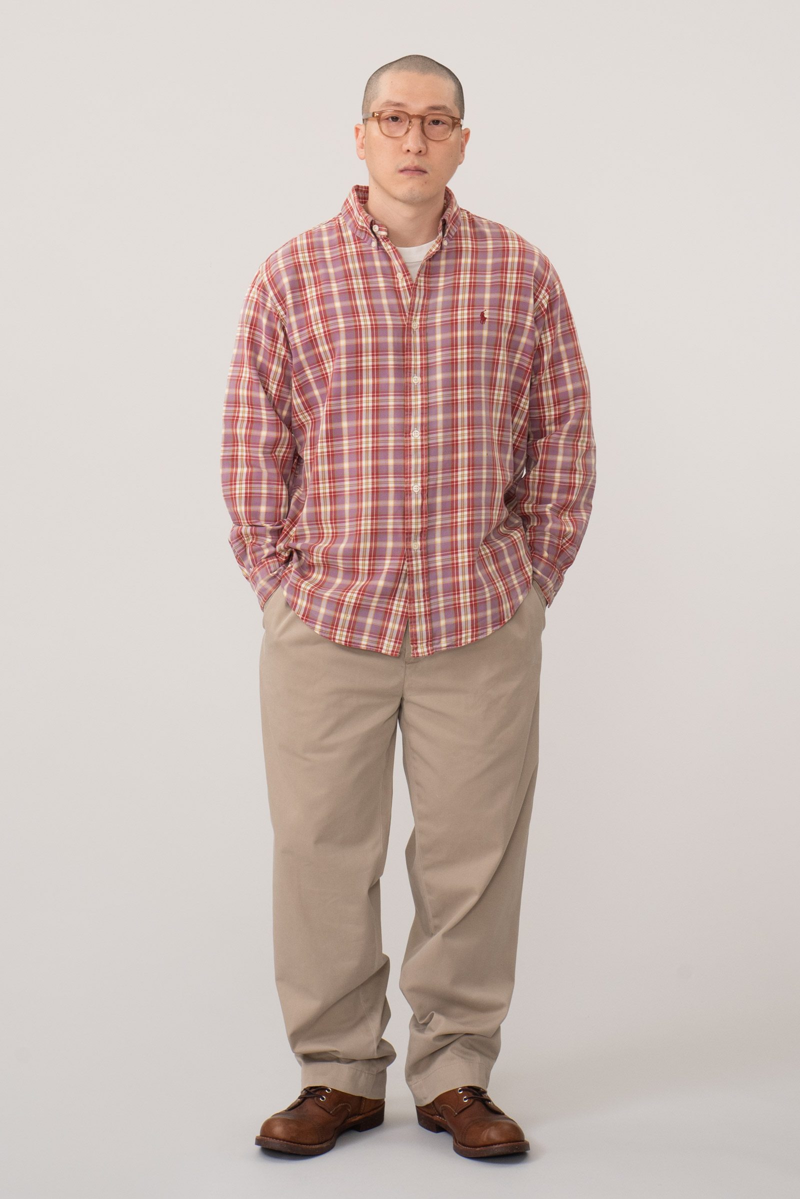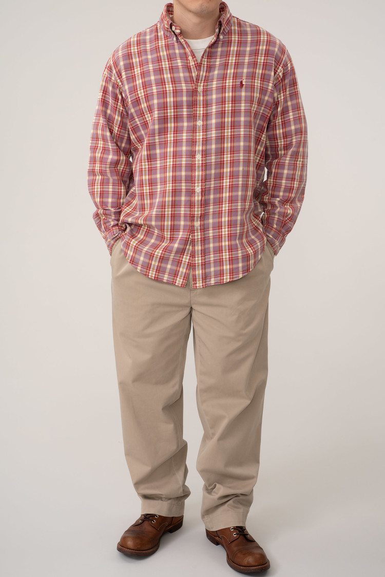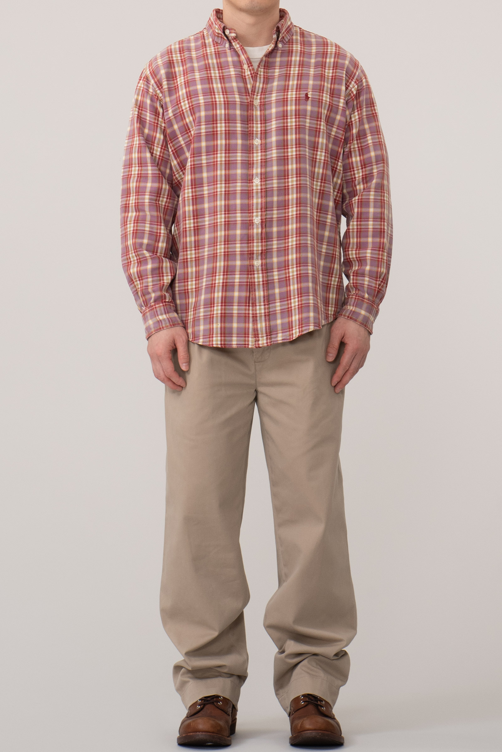 - 두산 시절의 폴로 랄프로렌 체크 셔츠입니다. 전체적으로 물빠짐이 있고 자잘한 오염이 눈에 띄게 있어요. 편하게 입으실 분에게 추천드립니다.