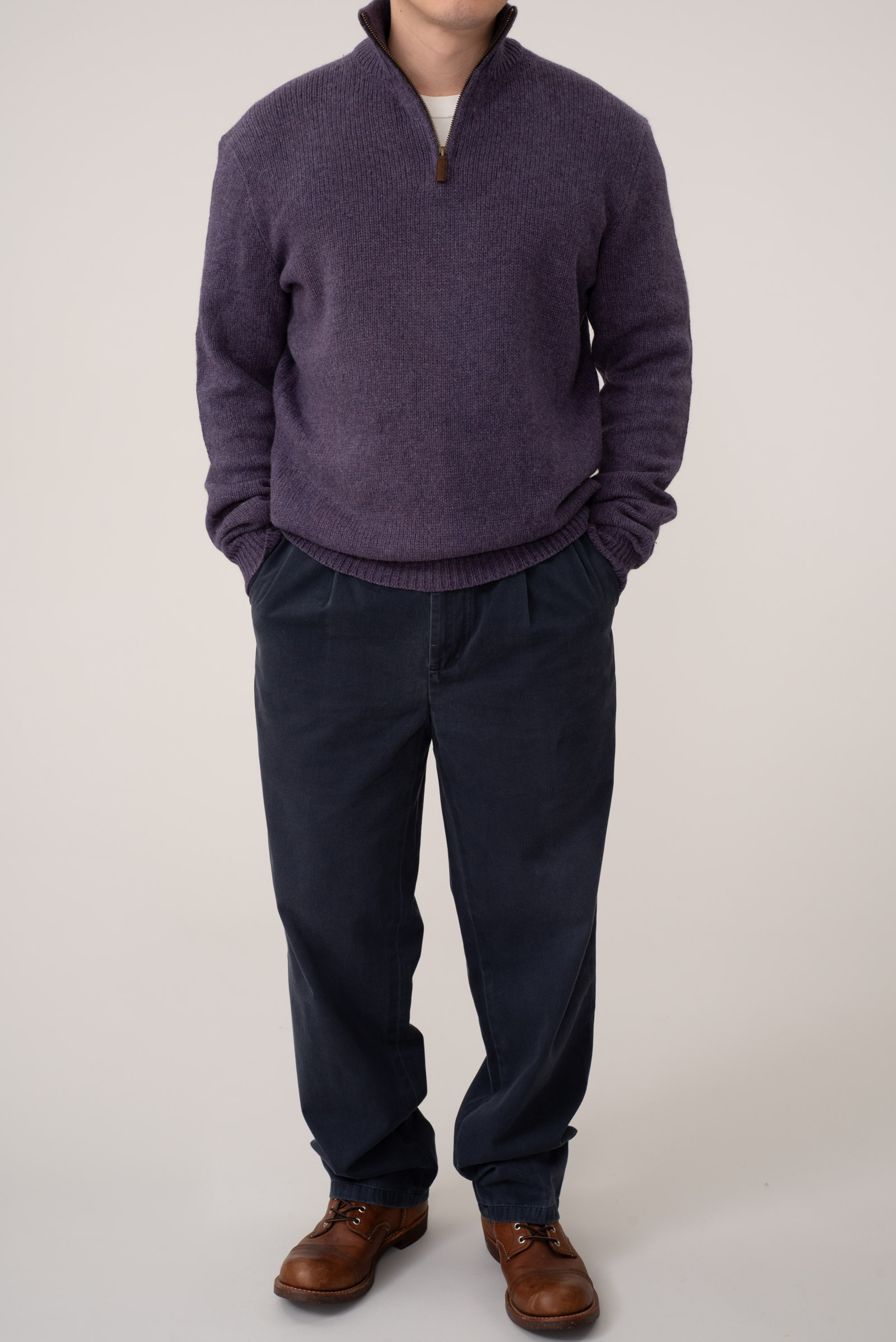 - 아재들의 최애 니트 디자인, 폴로의 하프 짚 니트입니다. 따스하고 세련 된 퍼플 컬러이며 케어라벨 컨디션으로 알 수 있듯, 깔끔한 컨디션 유지하고 있습니다. 정 사이즈로 입으실 분은 실측 꼭 비교 후 구매부탁드립니다.
