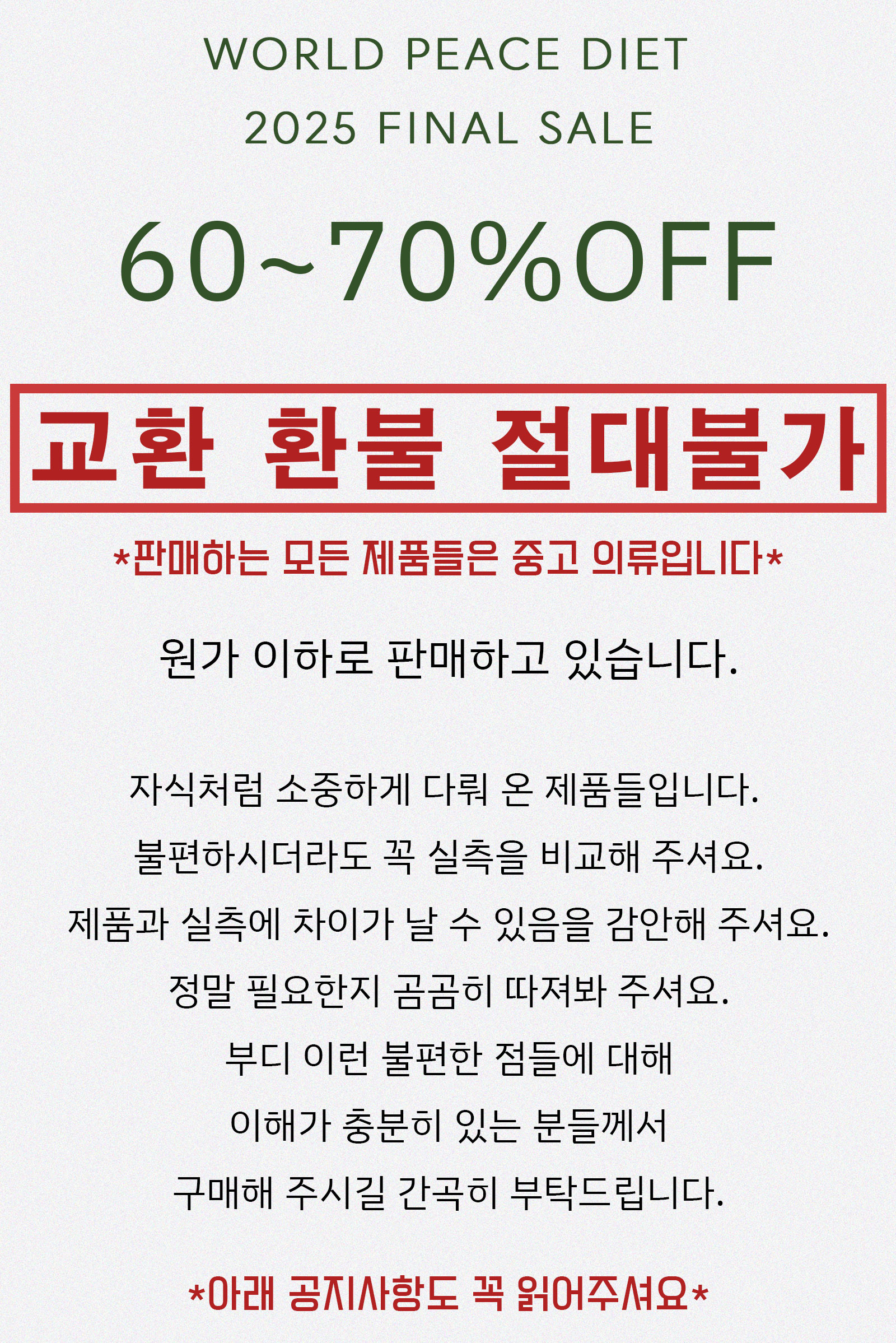 세일 기간 동안 교환 및 환불이 불가합니다