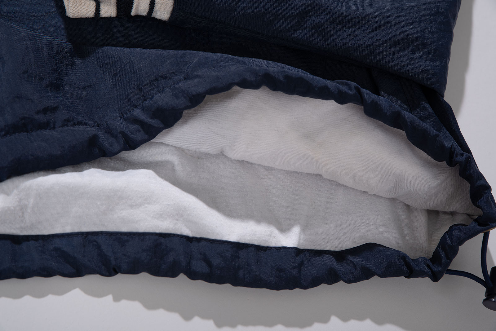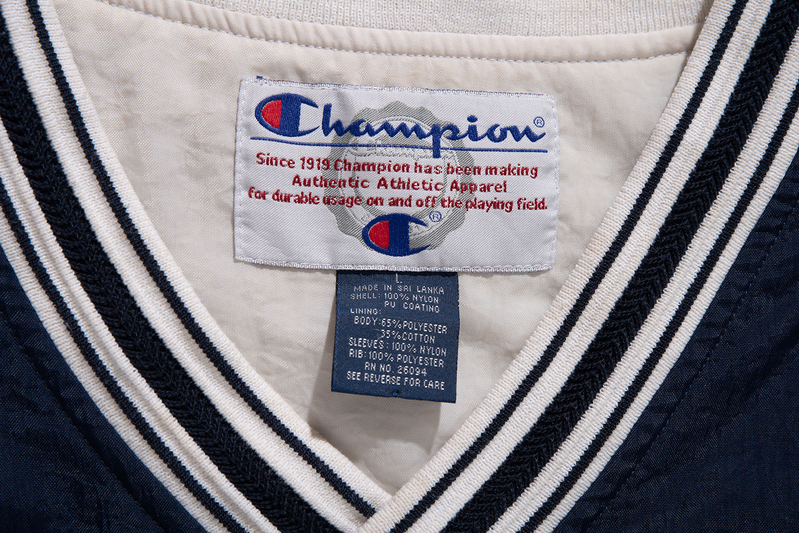 - 90 년대에 제작 된 챔피온의 빈티지 웜업입니다. 밑단 스트링이 있어 웨어러블하게 연출하기 좋은 제품이에요. 소매 시보리에 오염이 좀 있습니다. 이 외엔 무난한 컨디션이에요. 남색에 흰색 컬러 조합이라 무난하게 입기 좋겠네요. 정 사이즈로 치면 110-115 정도 되지 않을까 싶어요. 몸에 잘 맞게 입으실 분들은 실측 꼭 비교 후 구매부탁드립니다.