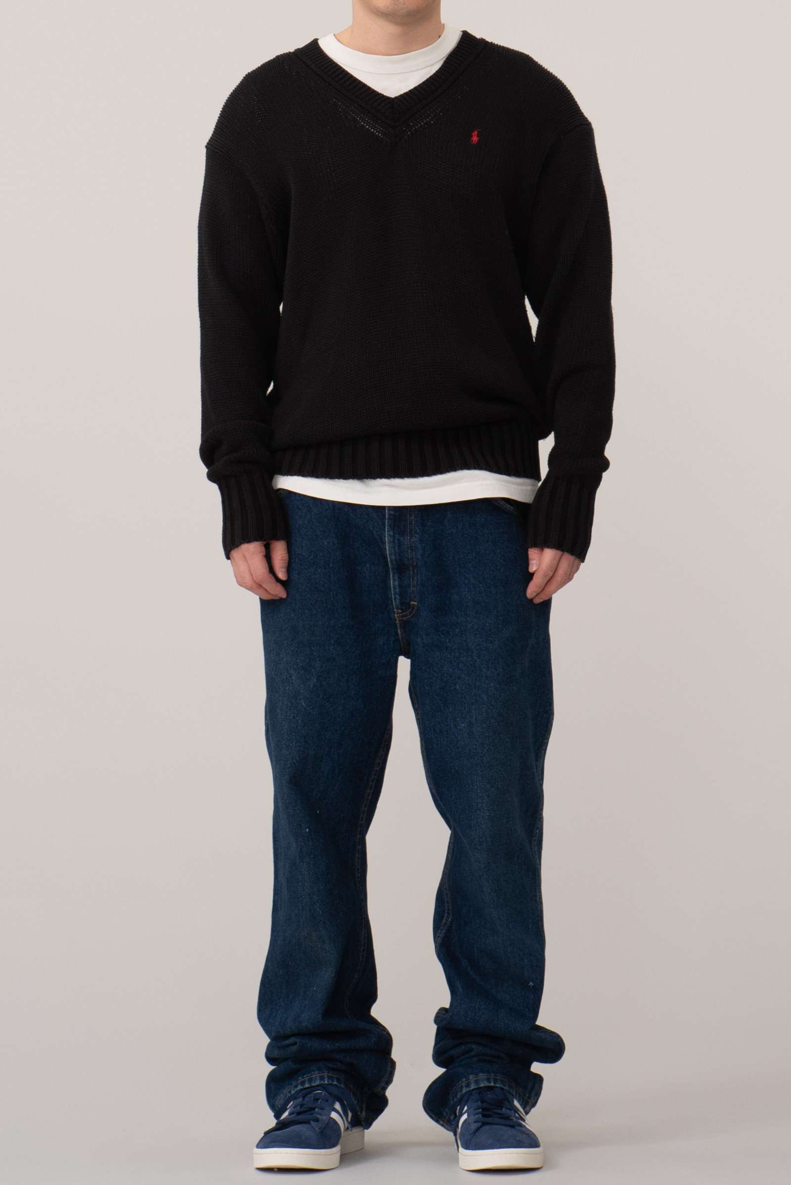 - 구형 폴로 랄프로렌의 브이넥 코튼 스웨터입니다. 전반적으로 사용감이 있어요. 컨디션은 무난한 편이에요. 코디를 좀 캐주얼하게 했습니다만 드레시하게 해도 꽤 근사할 것 같아요.