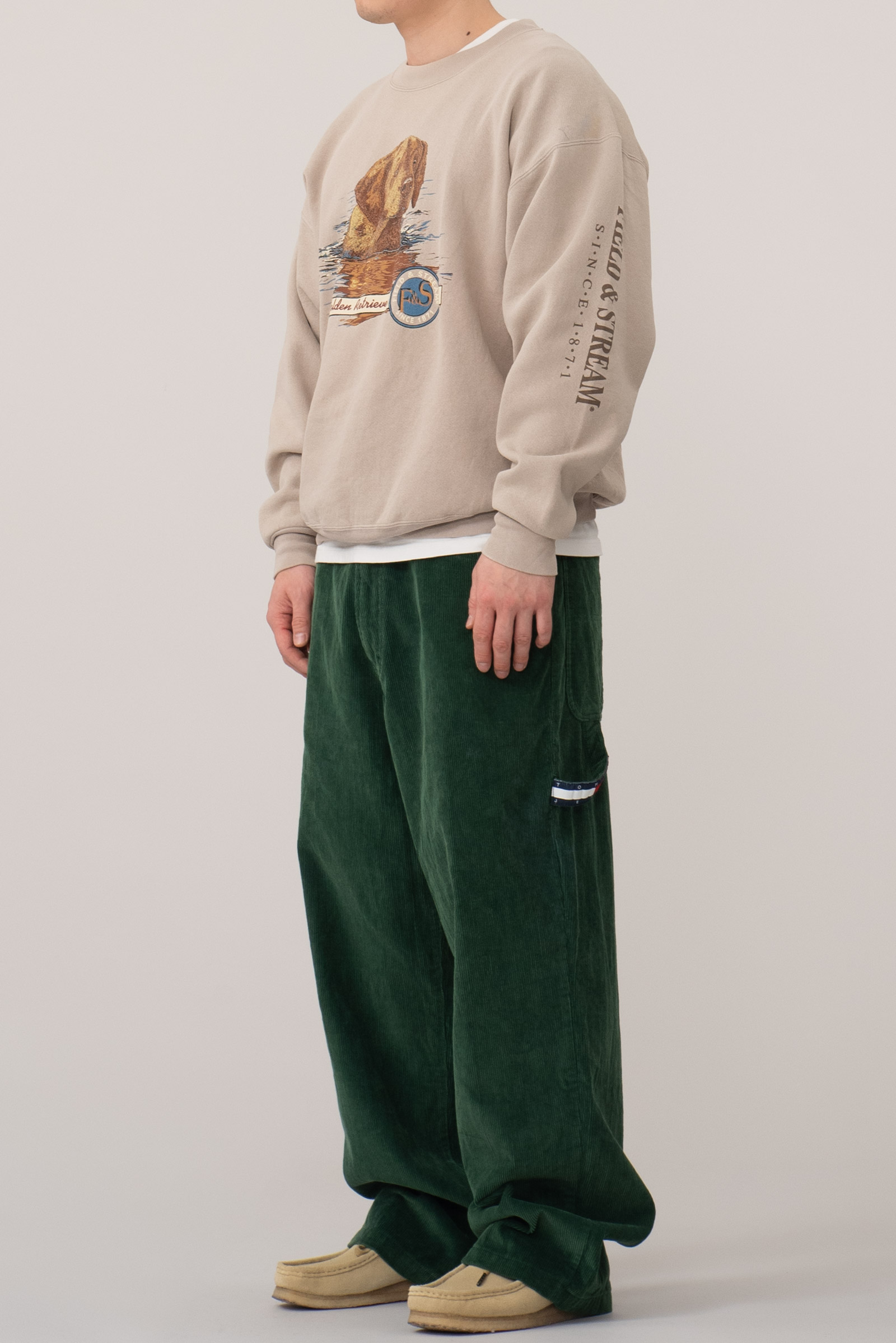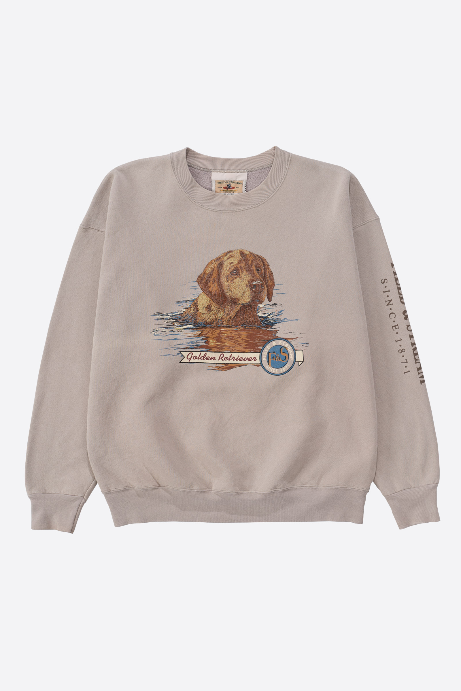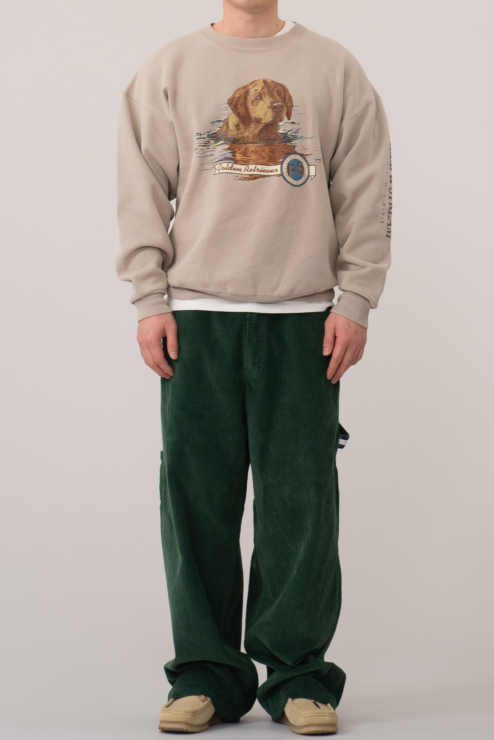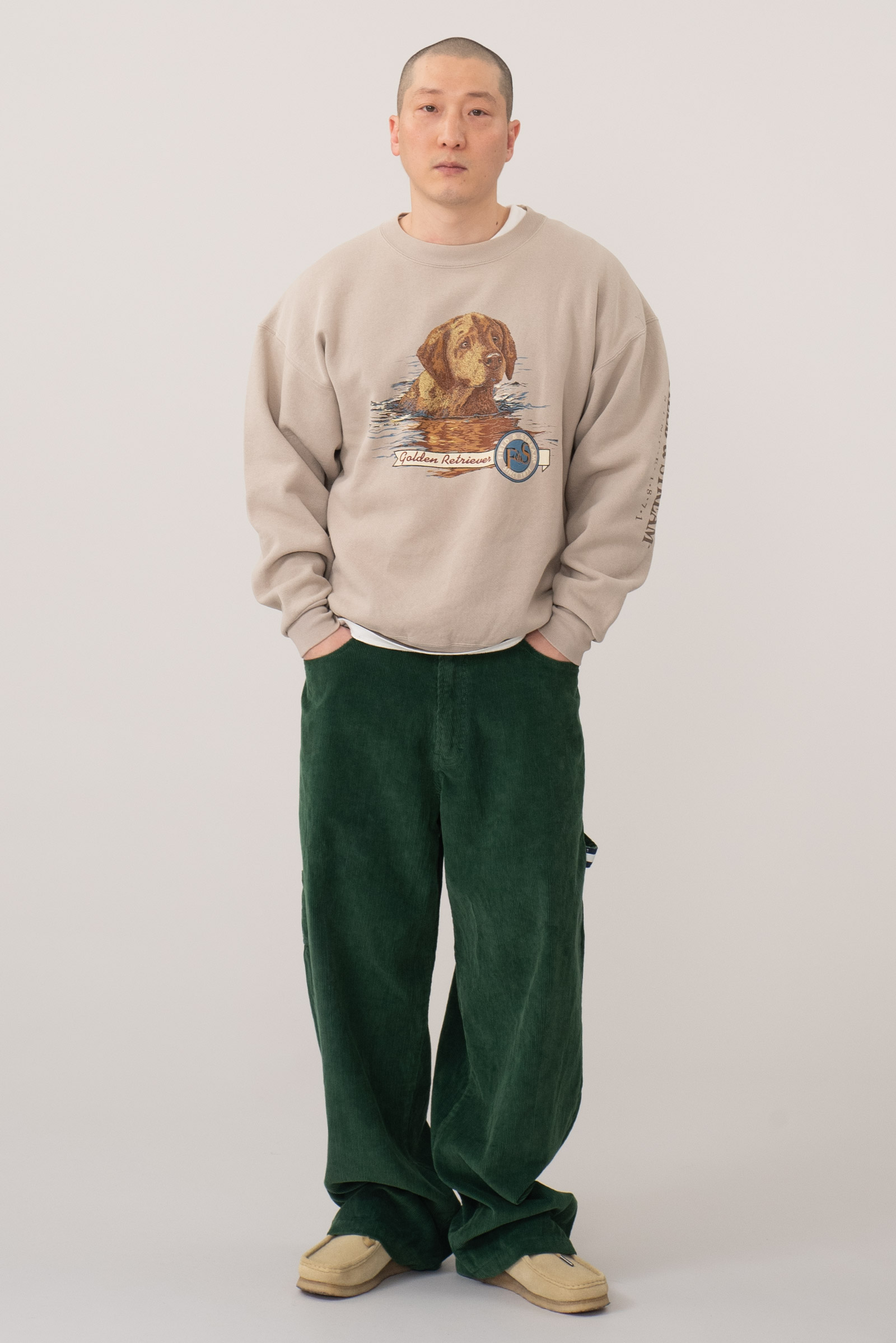- 미국의 캐주얼 의류 브랜드였던 Field & Stream 의 골든 리트리버 프린팅 맨투맨입니다. 90 년대 제작 된 제품으로 전체적으로 짧퉁하고 어벙한 실루엣이 특징입니다. 표기 XL 으로, 국내 105 여유있는 실루엣 추천드립니다. 전체적으로 늘어짐도 있고 자잘한 오염도 있고 그렇습니다.