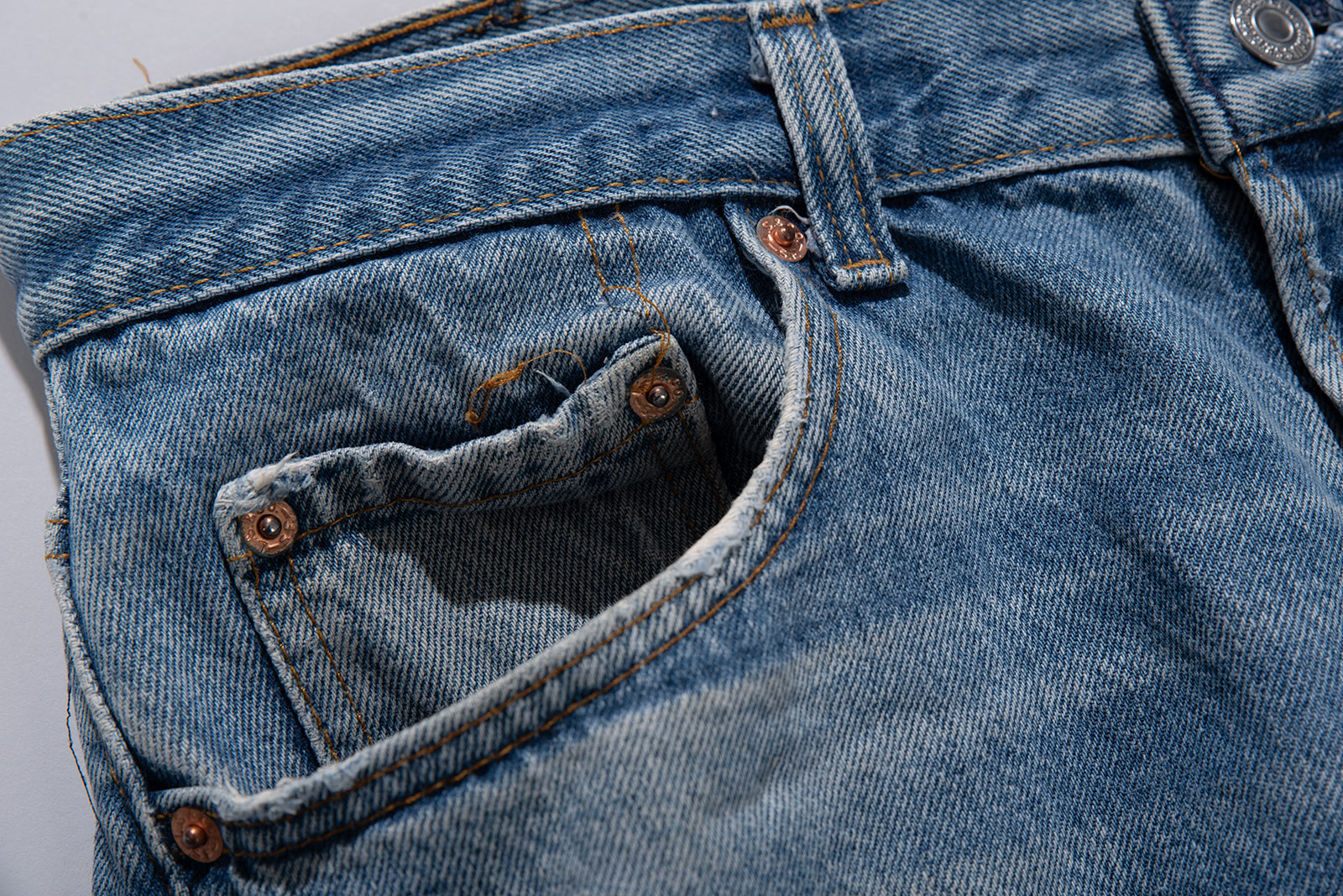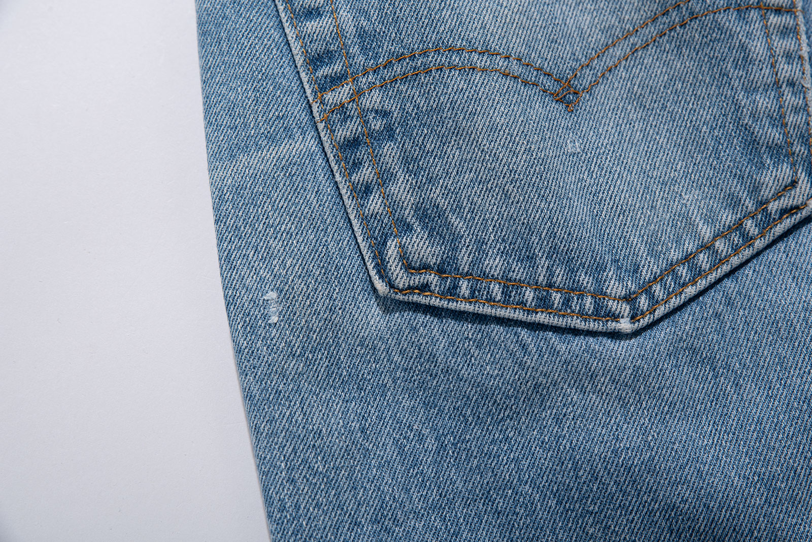 - 90 년대 생산 된 501 빈티지 팬츠입니다. 전반적인 물빠짐이나 캣워싱이 아주 멋스러운 제품이지요. 수축하는 과정에서 양 기장에 차이가 생겼습니다.