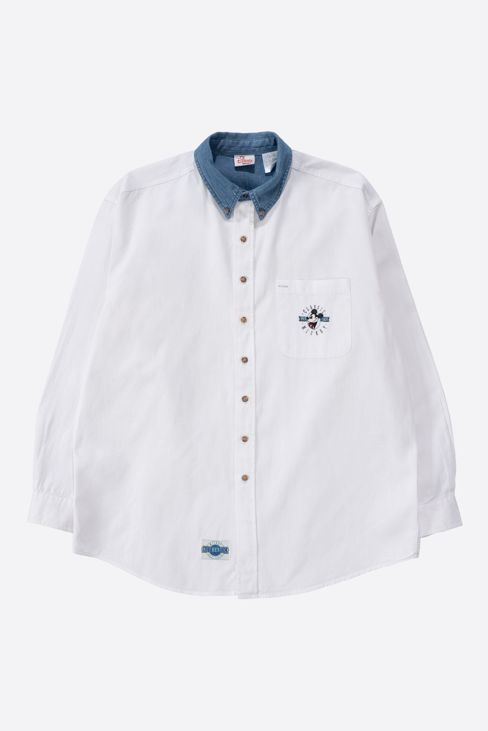 - 90 - 2000 년대 초반에 제작 된 디즈니 스토어의 미키마우스 옥스포드 셔츠입니다. 데님 깃으로 포인트 된 깔끔하고 깔쌈한 컬러웨이의 제품입니다. 확인되지 않은 자잘한 오염이 있을 수 있습니다만 전체적으로 컨디션이 매우 좋은 제품이에요. 실측 비교하시어 취향에 맞게 구매부탁드립니다.