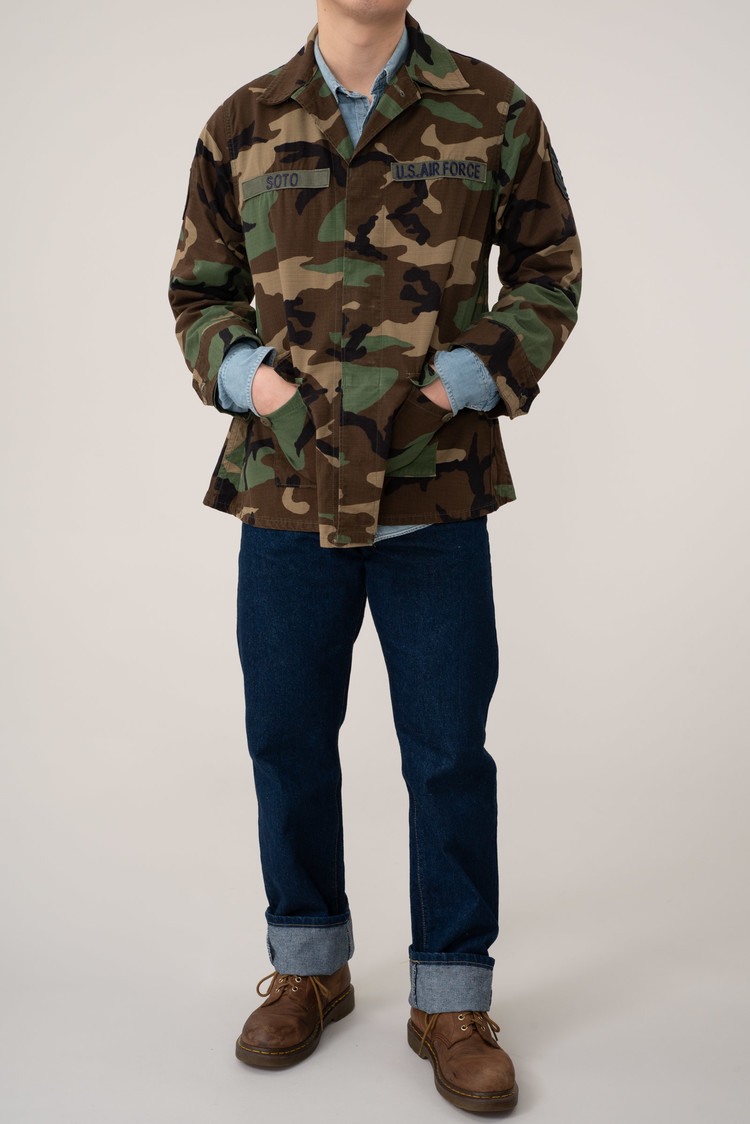 - 02 년에 제작 된 아메리칸 어페럴 사의 우드랜드 립스탑 컴뱃 재킷입니다. 100 정도 입는 분께 잘 맞을 사이즈 감이네요.