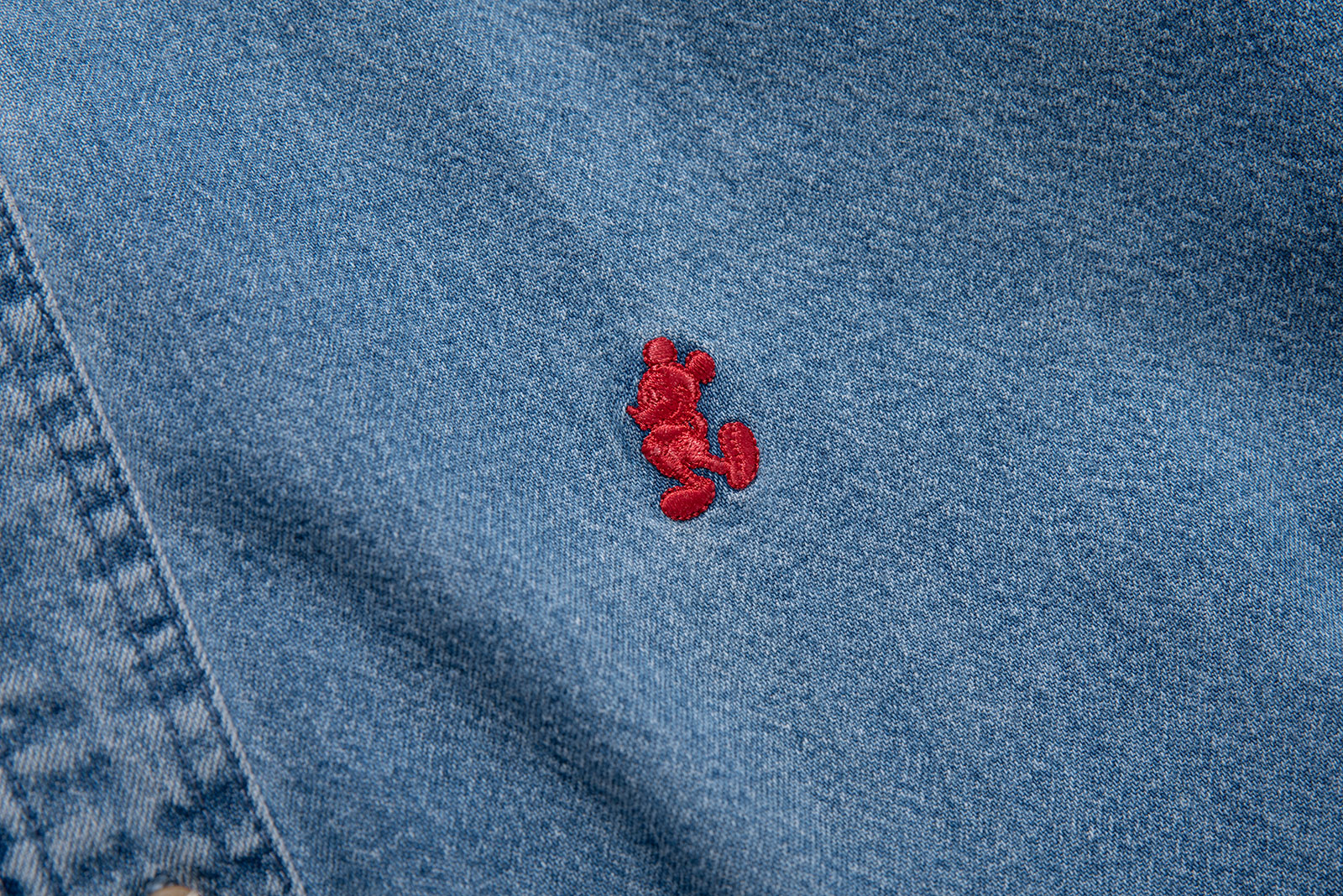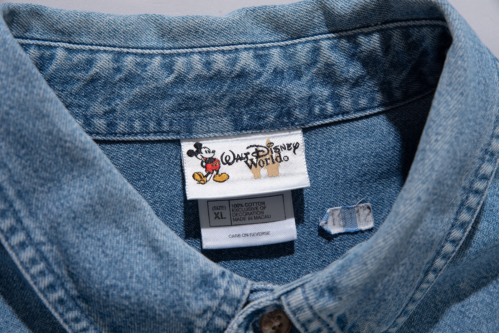 - 90 년대에 제작 된 디즈니 스토어 굿즈로 판매되었던 미키 마우스 데님 셔츠입니다. 두툼한 두께감에 빨간색 미키마우스 자수 로고가 폴로 90s Blake 핏 데님 셔츠를 연상케 하네요. ㅎㅎ 이런 부분이 참 재미있다고 느껴집니다. 자잘한 오염이 있고 소매 가장자리 등에 닳은 부분이 있습니다만 컨디션은 무난하니 괜찮은 편이에요. 여유있는 사이즈로 입고 되었습니다. 정 사이즈로 입으실 분은 실측 꼭 비교 후 구매부탁드려요.